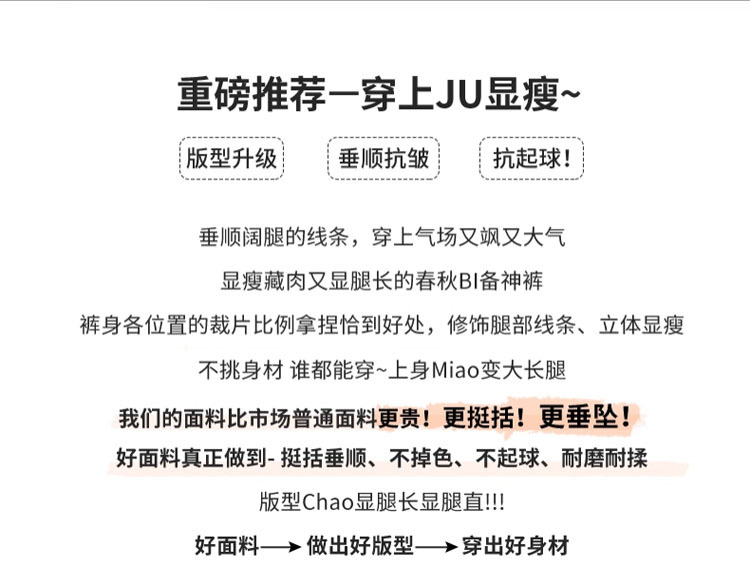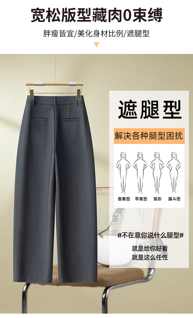百媚生 羊毛醋酸高级感垂感西装阔腿裤953