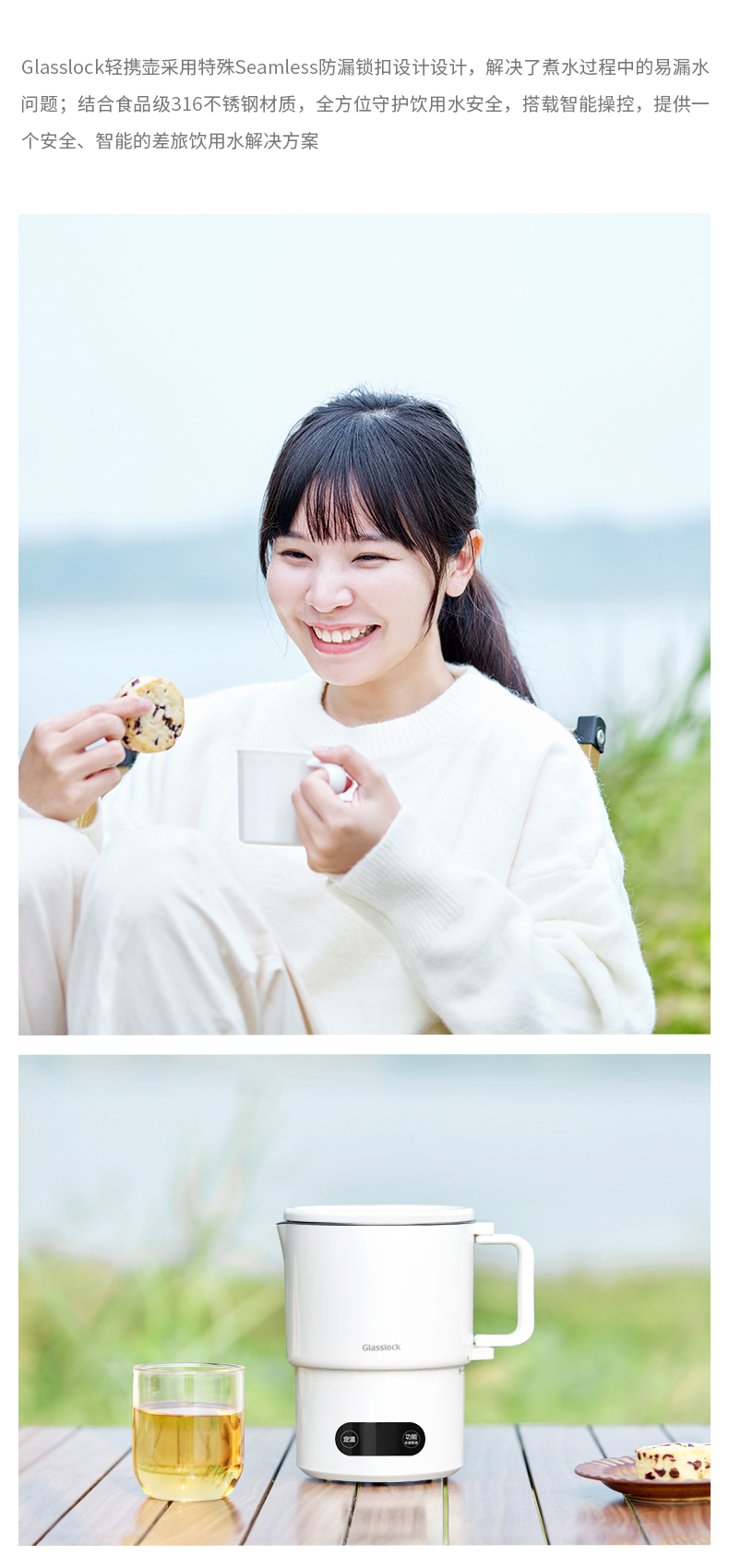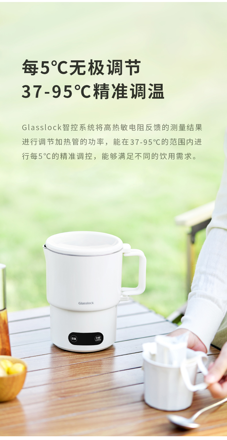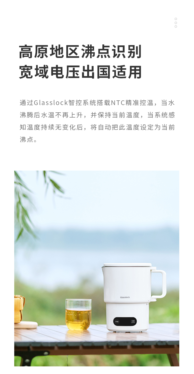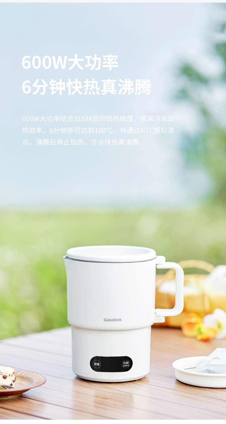 【旅行袋、除垢剂随机送】Glasslock智能恒温折叠烧水壶 | 防漏锁扣设计 快速加热 分体式折叠水壶 安全 防漏 耐用 出游好物