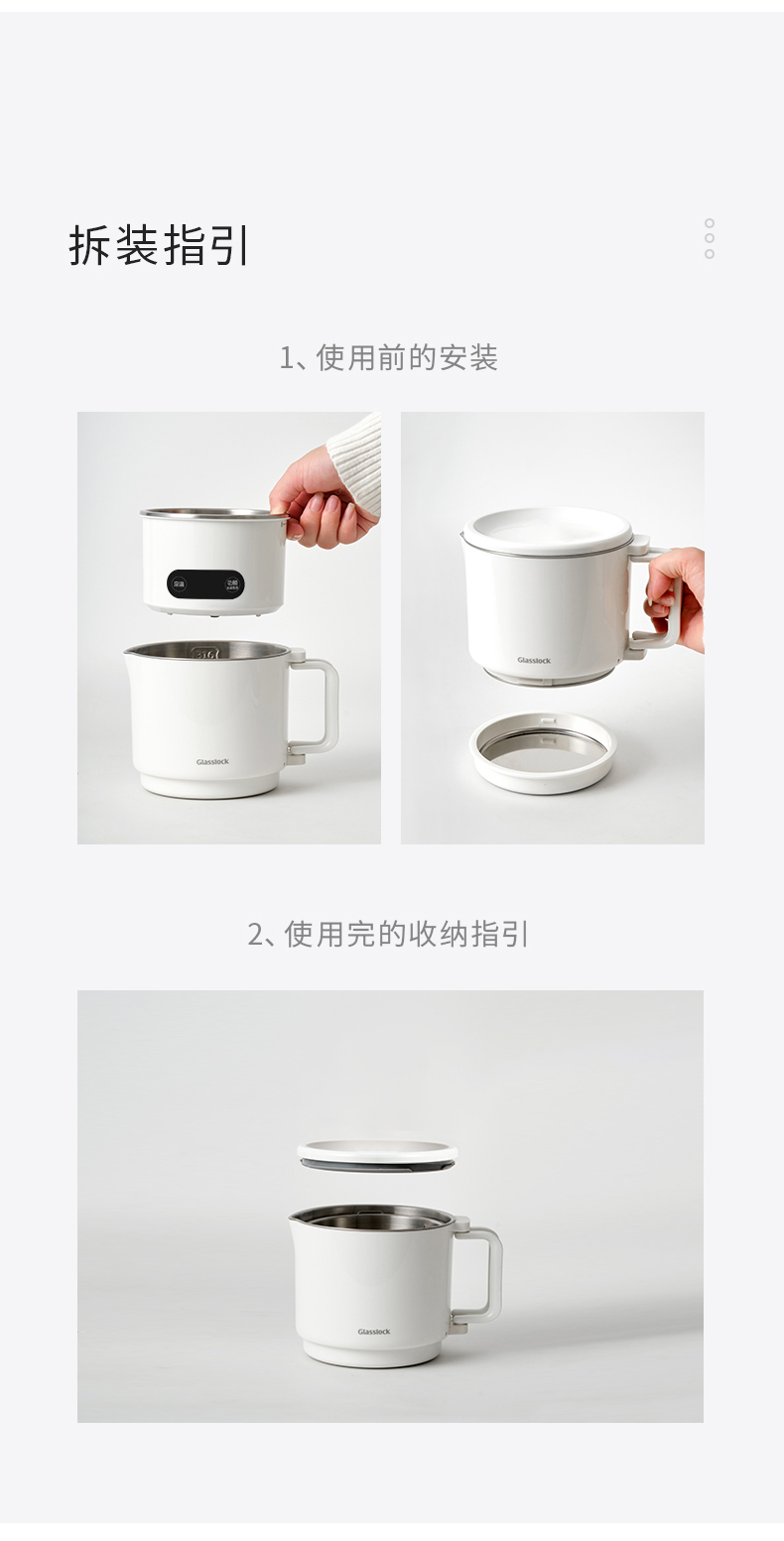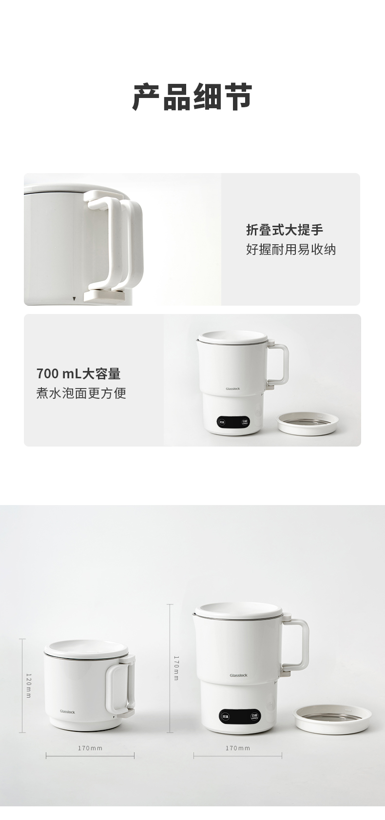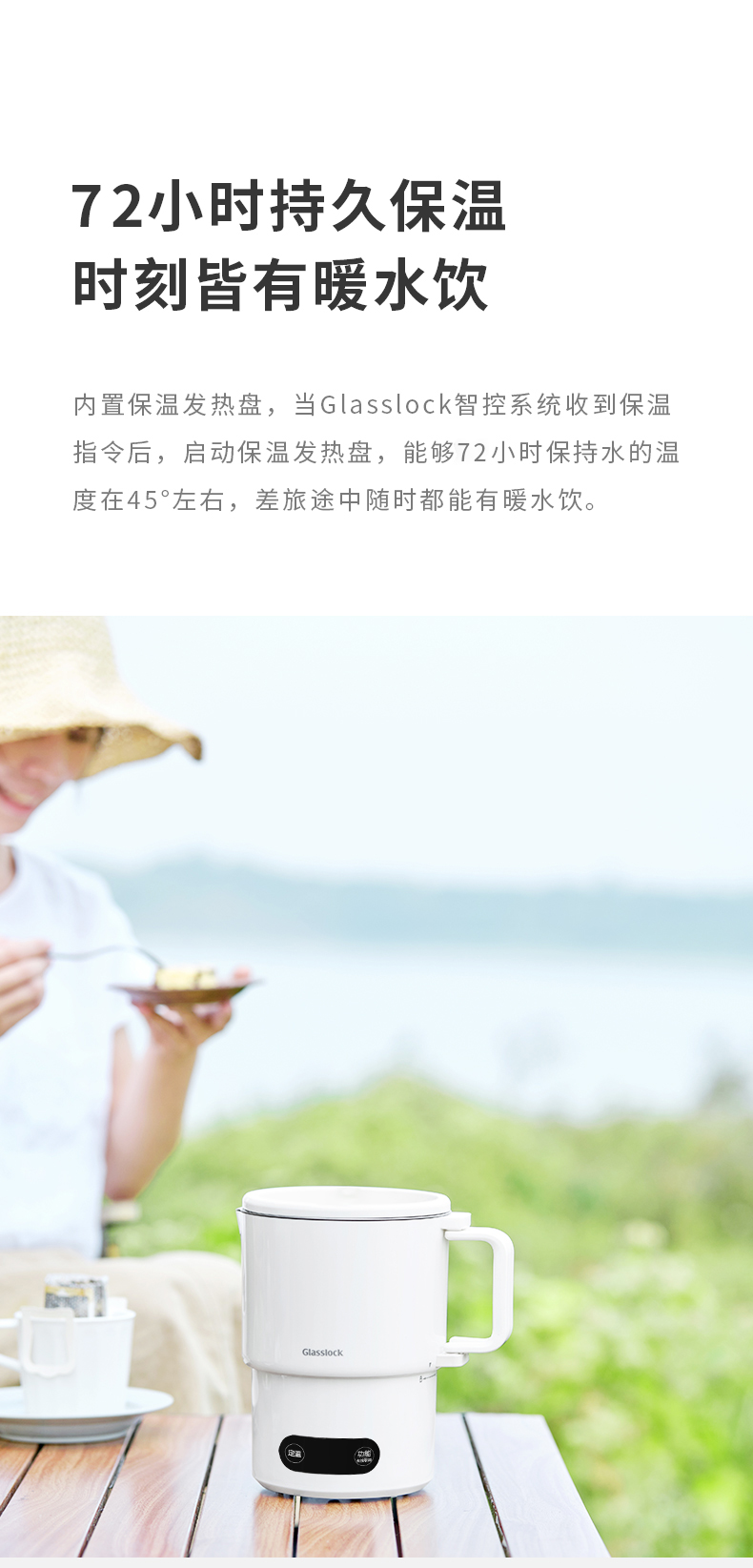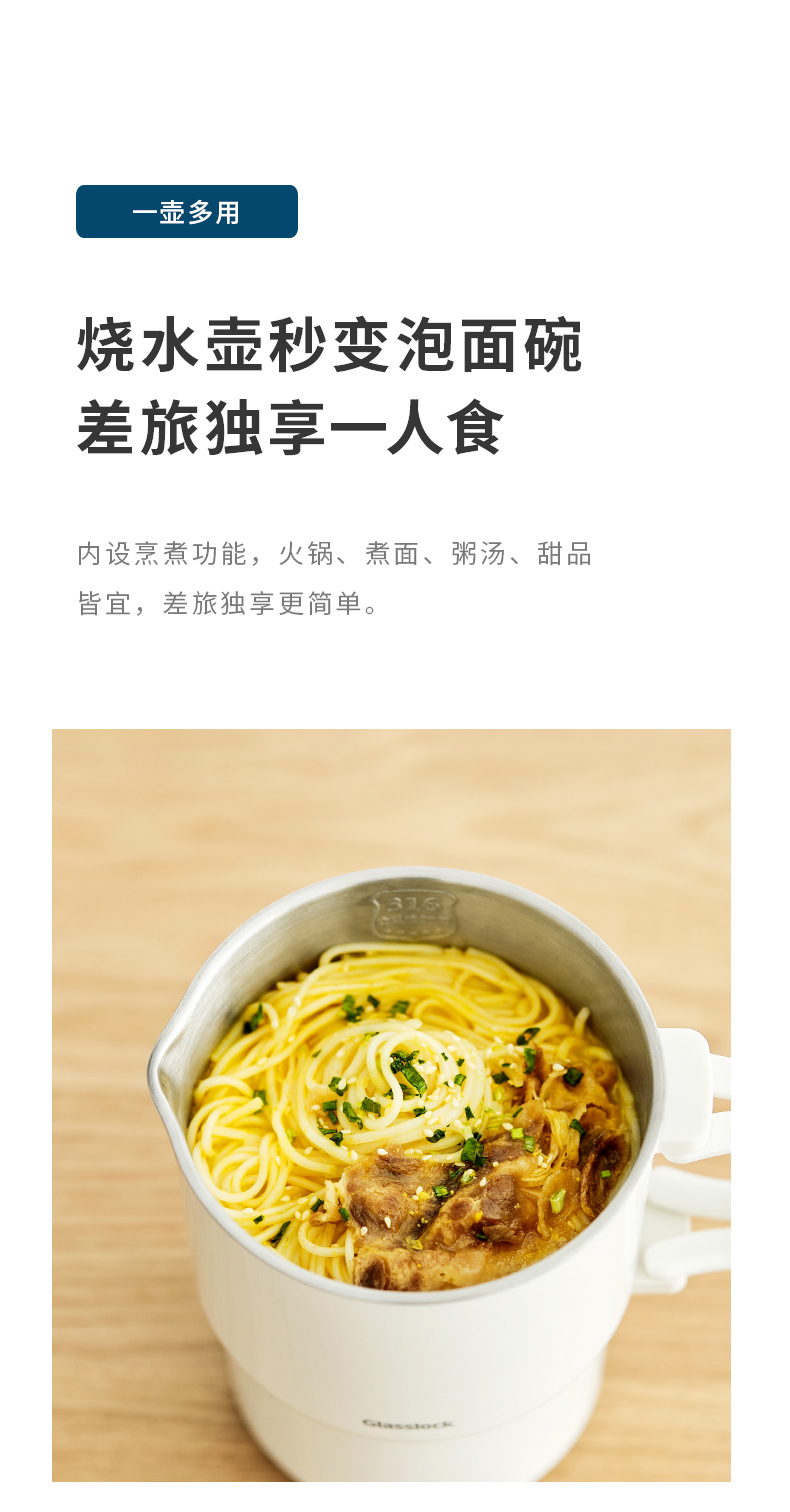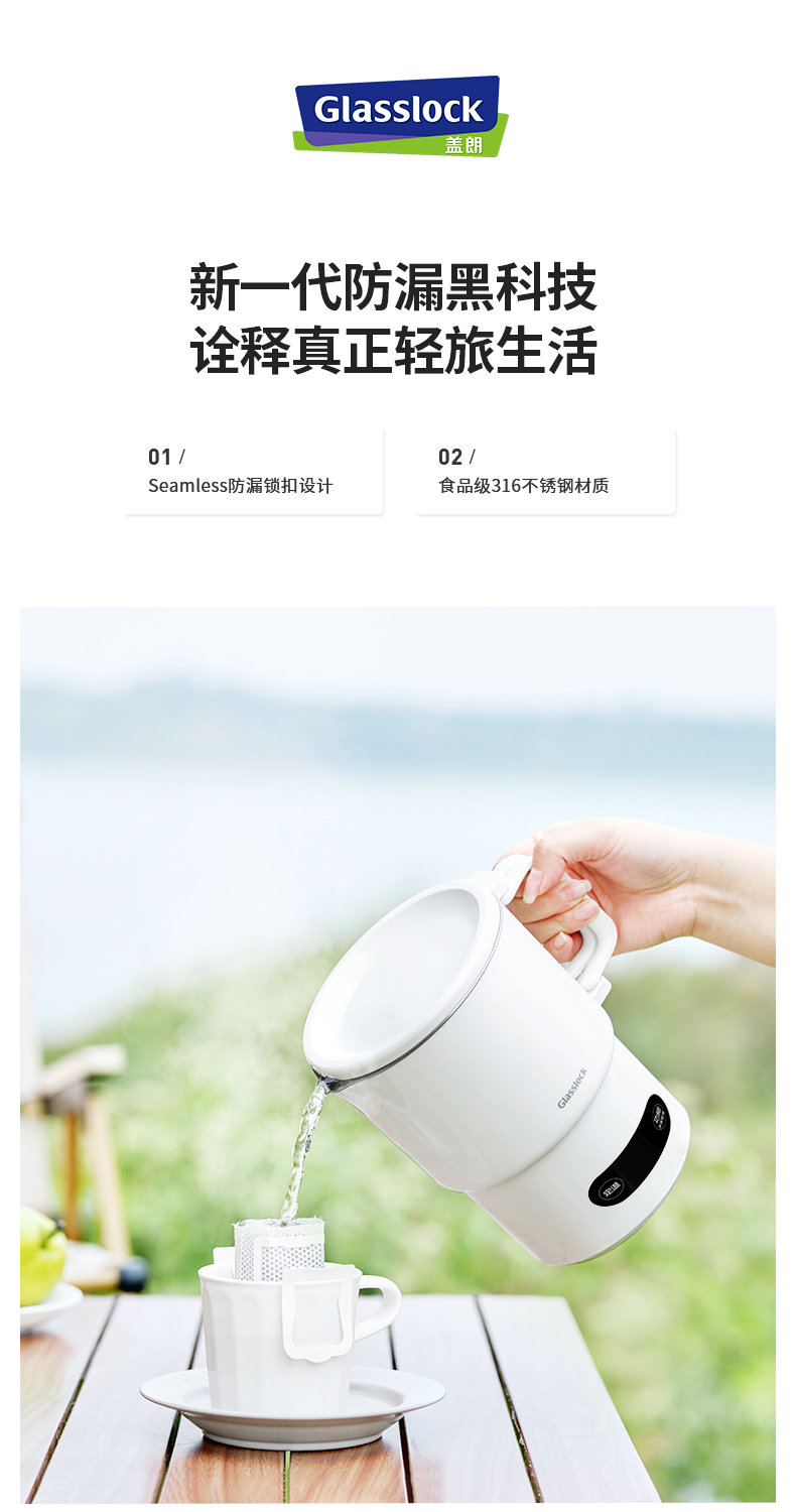 【旅行袋、除垢剂随机送】Glasslock智能恒温折叠烧水壶 | 防漏锁扣设计 快速加热 分体式折叠水壶 安全 防漏 耐用 出游好物
