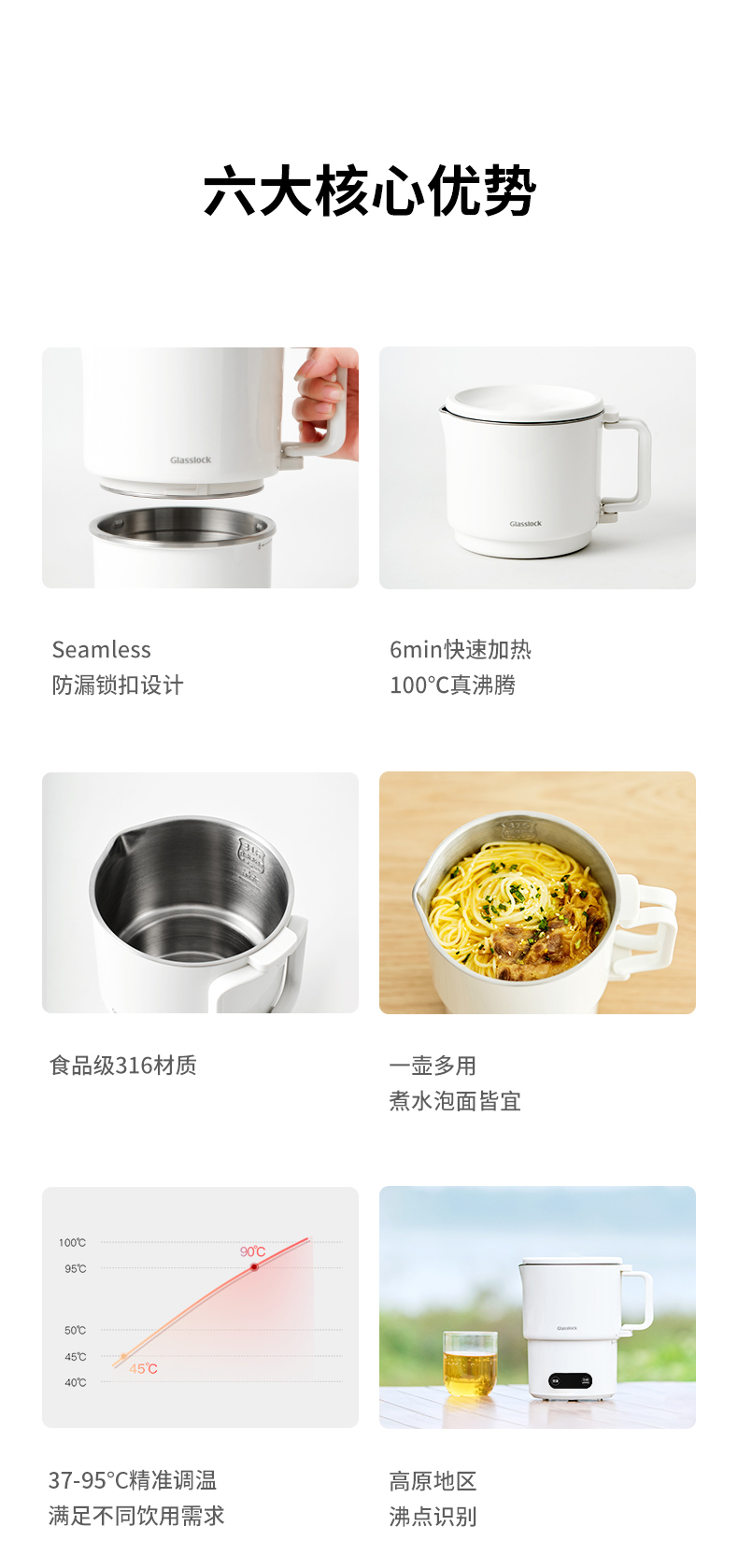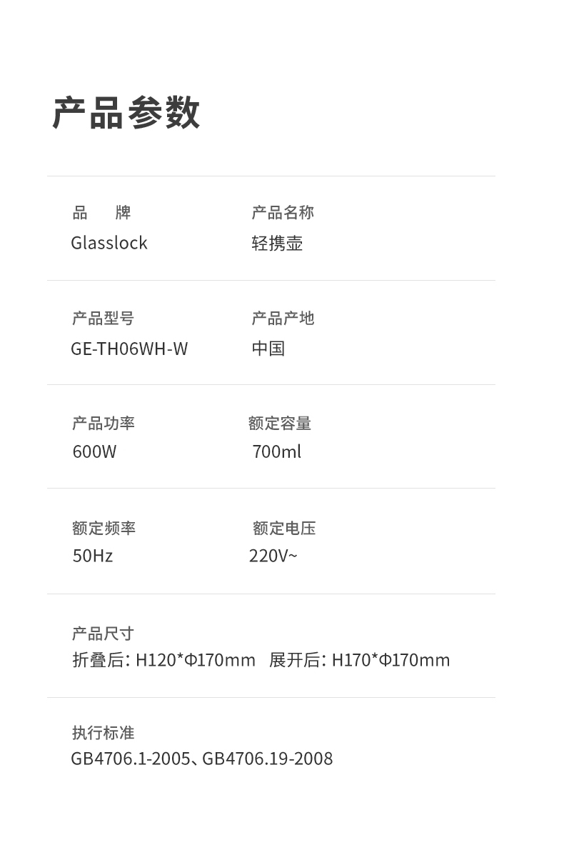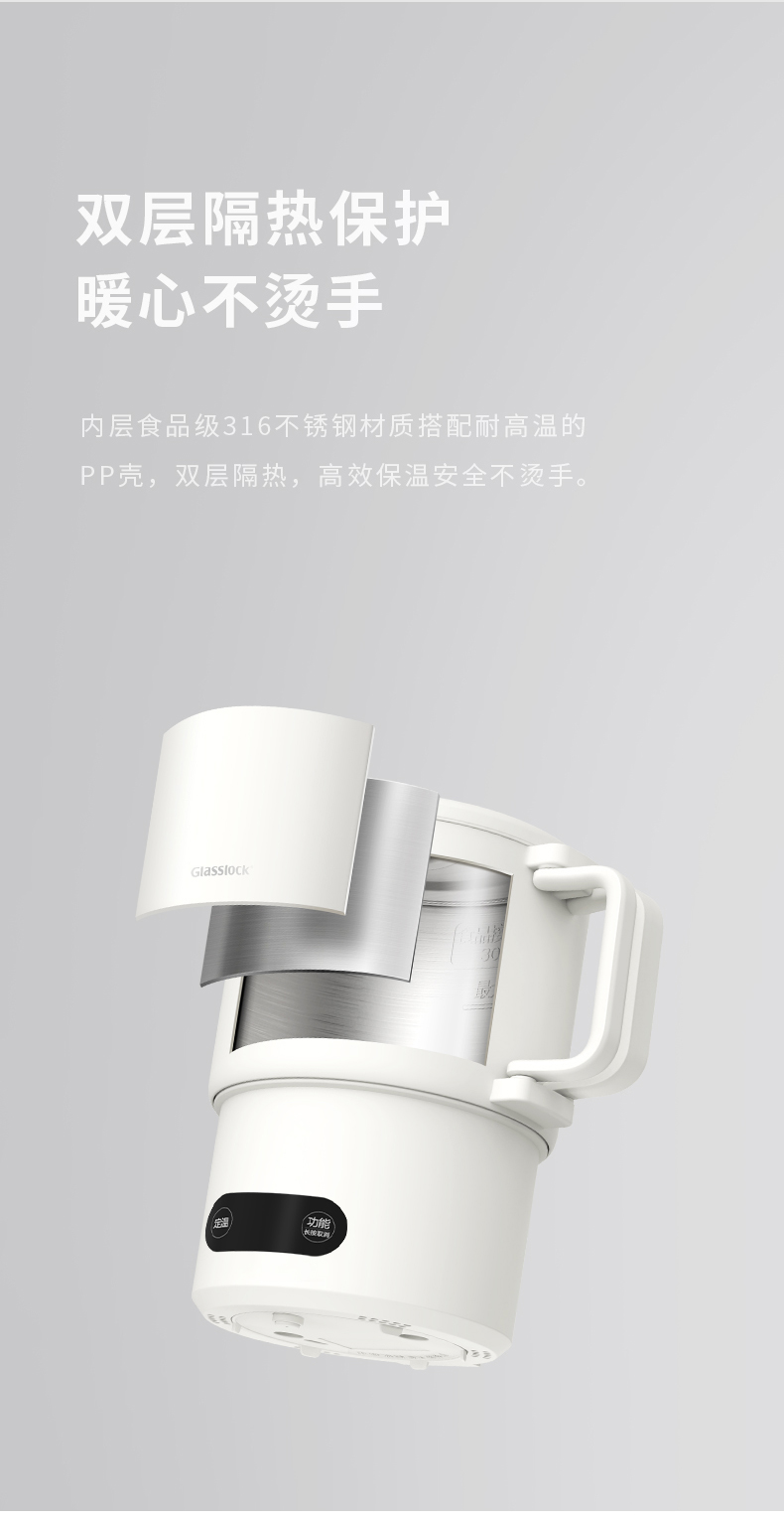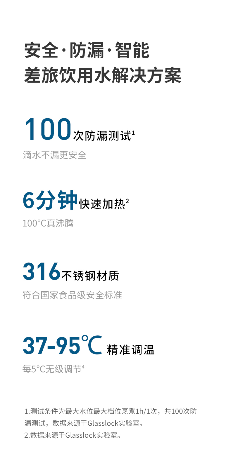【旅行袋、除垢剂随机送】Glasslock智能恒温折叠烧水壶 | 防漏锁扣设计 快速加热 分体式折叠水壶 安全 防漏 耐用 出游好物