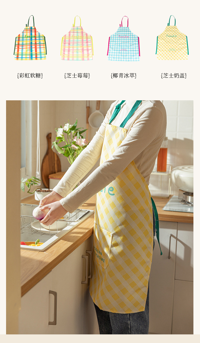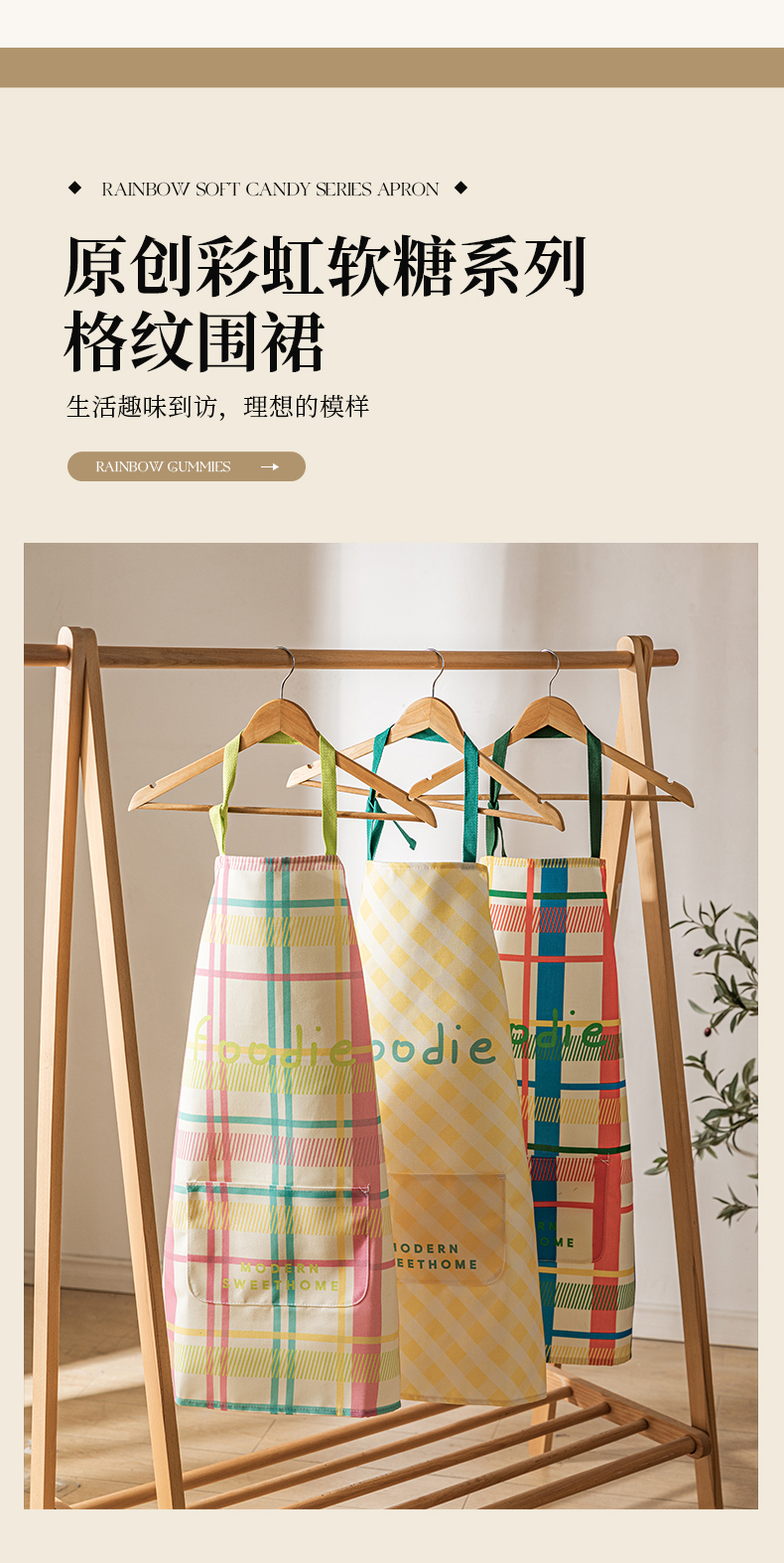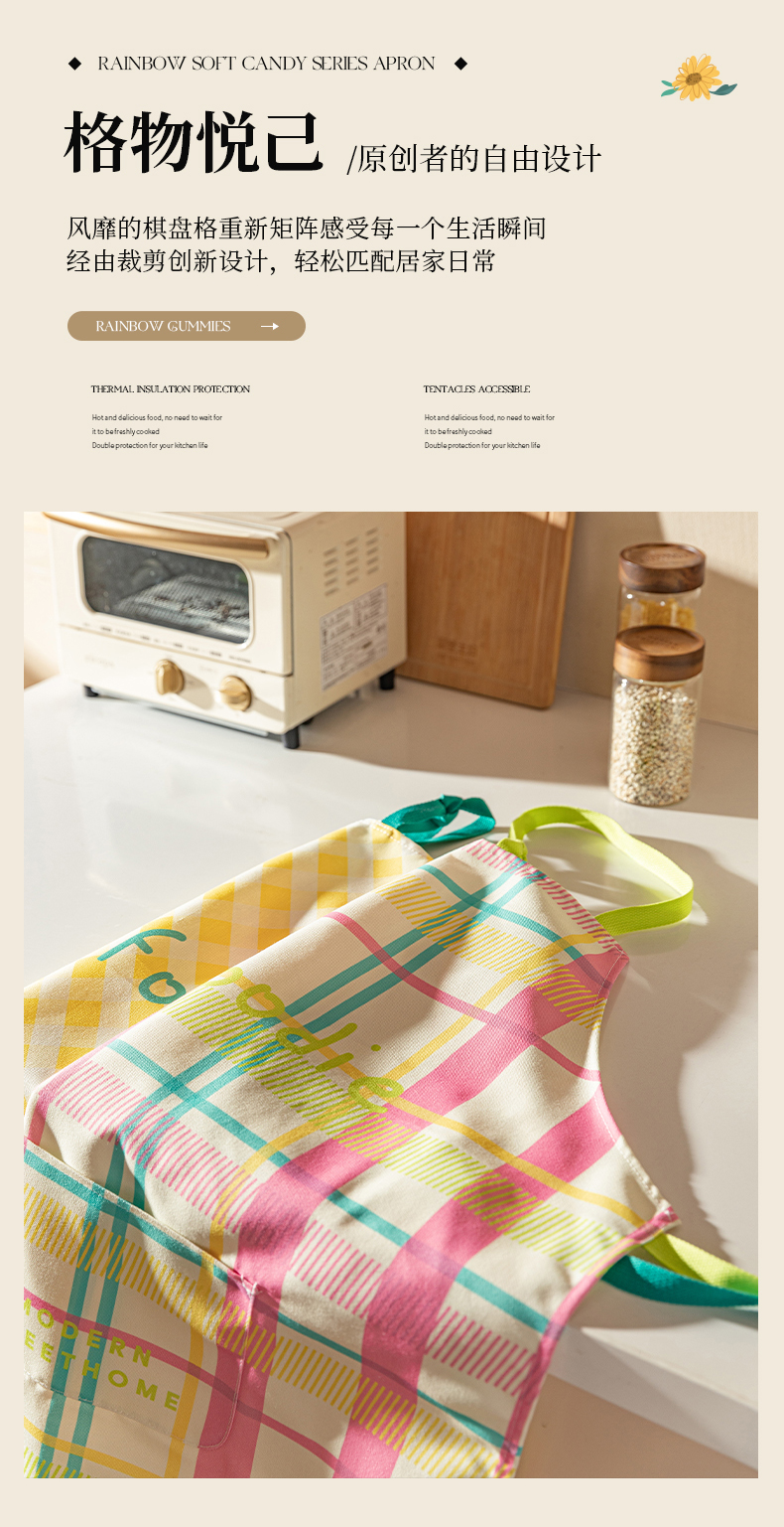 摩登主妇原创格纹围裙厨房家用2023款高颜值女防水防油污做饭罩衣