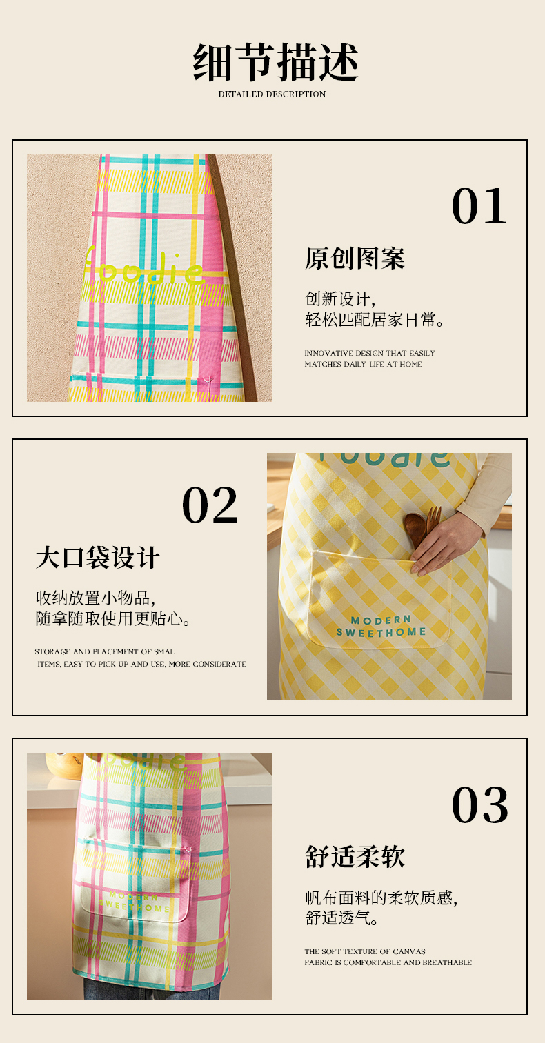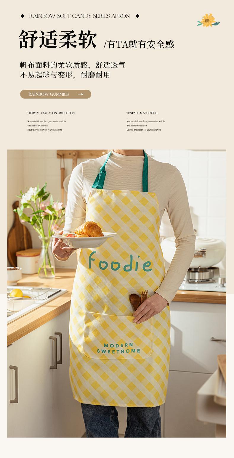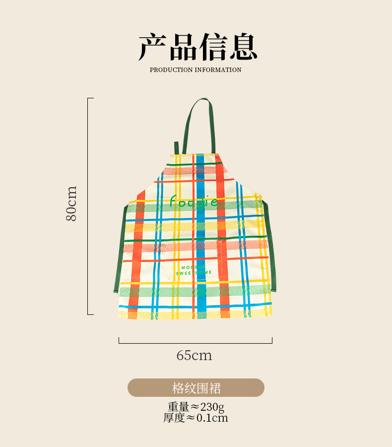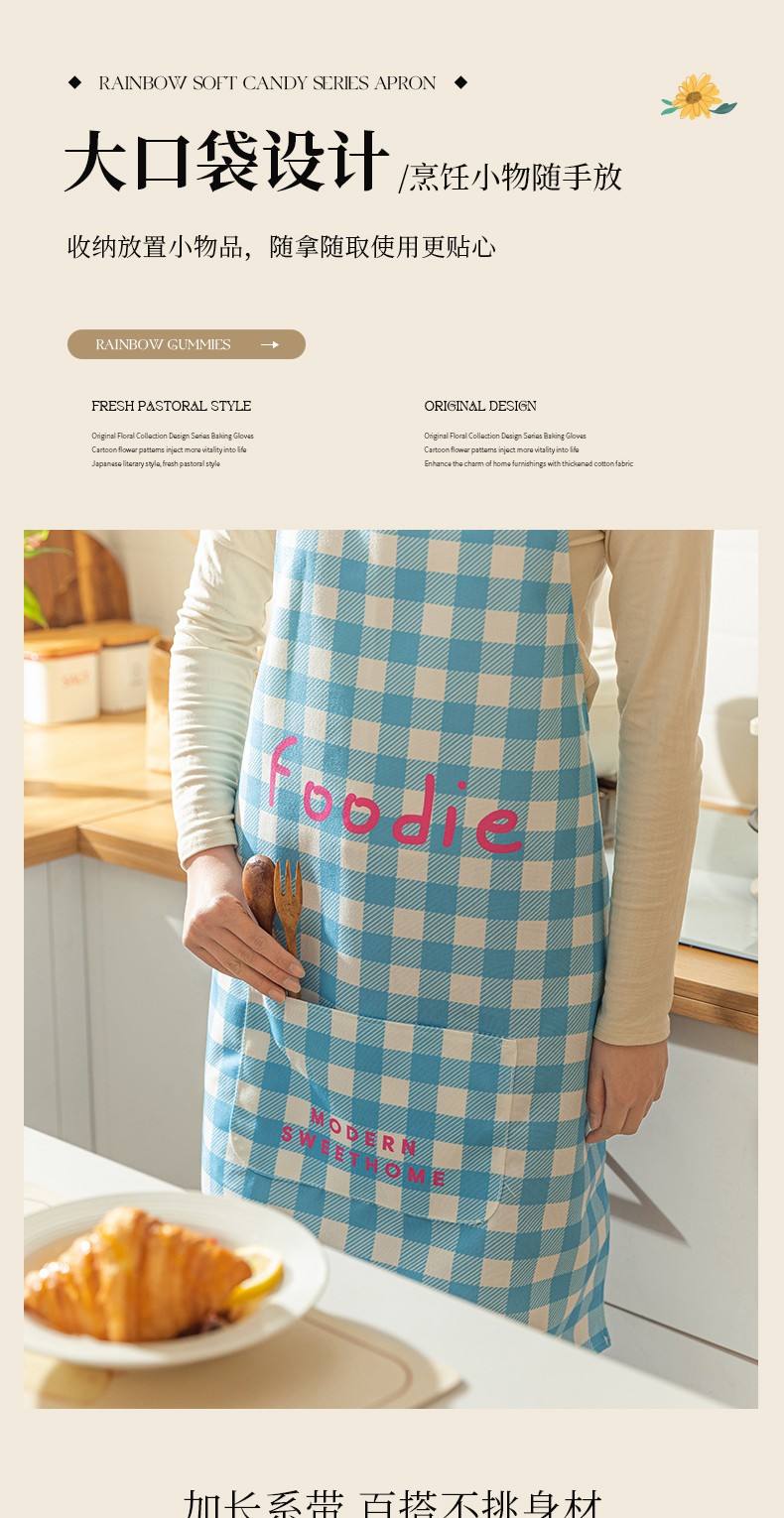 摩登主妇原创格纹围裙厨房家用2023款高颜值女防水防油污做饭罩衣