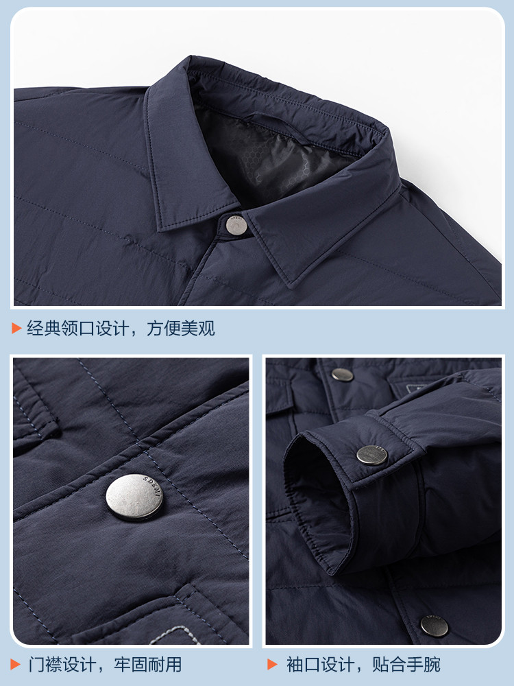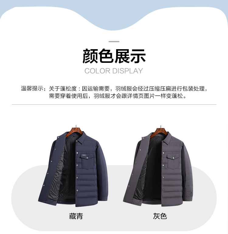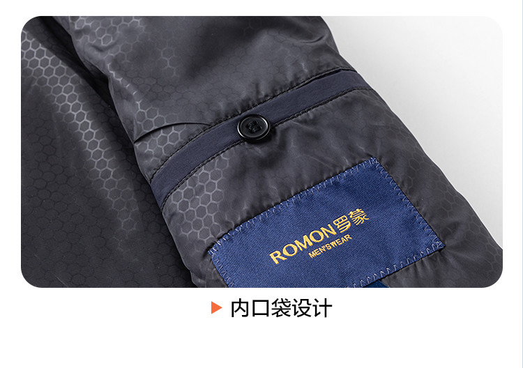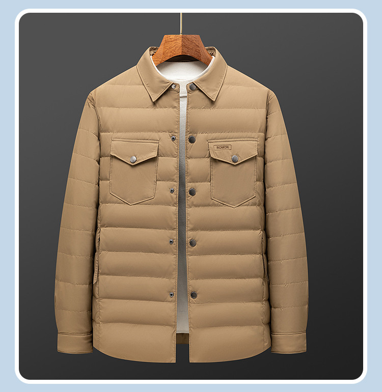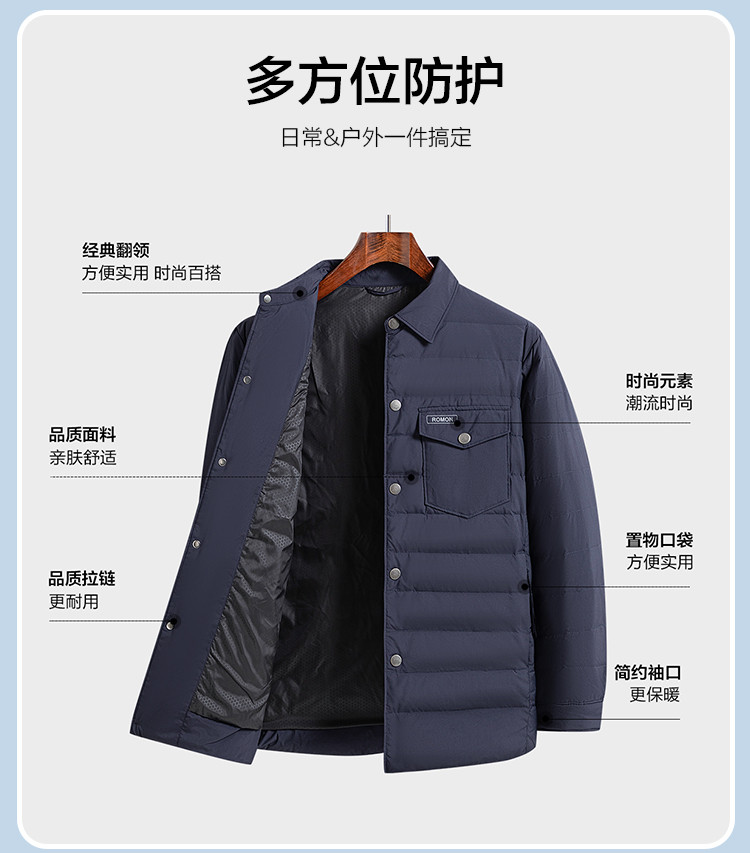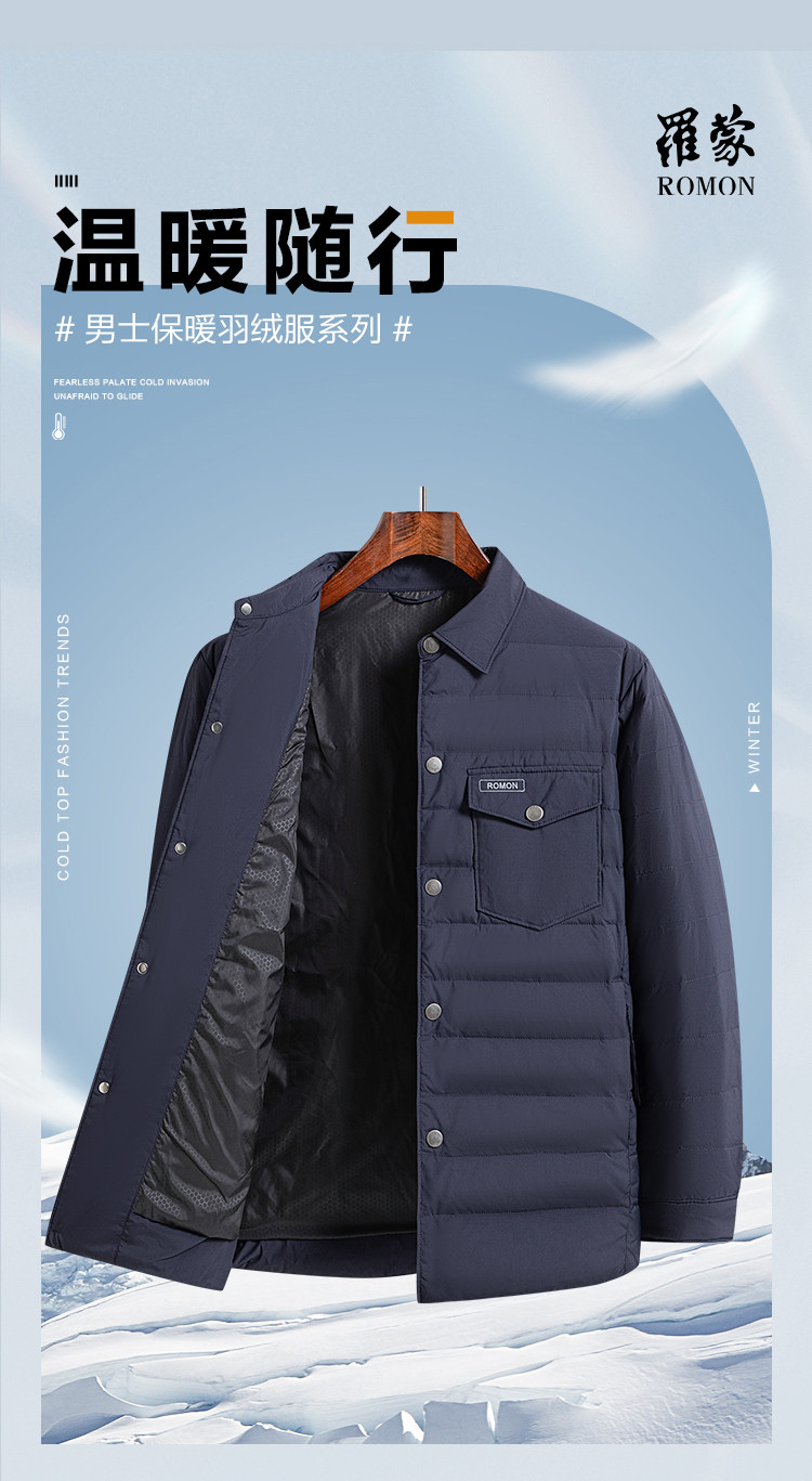 罗蒙冬季90白鸭绒羽绒服翻领扣子款设计胸前带口袋时尚休闲厚实保暖羽绒外套