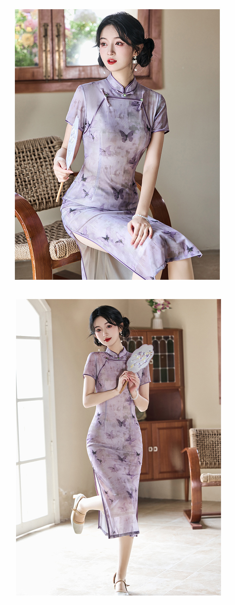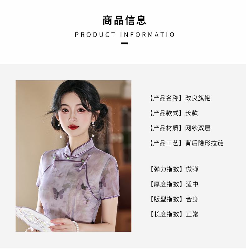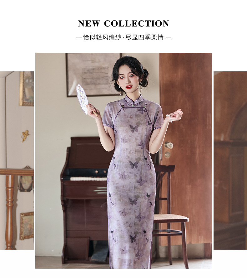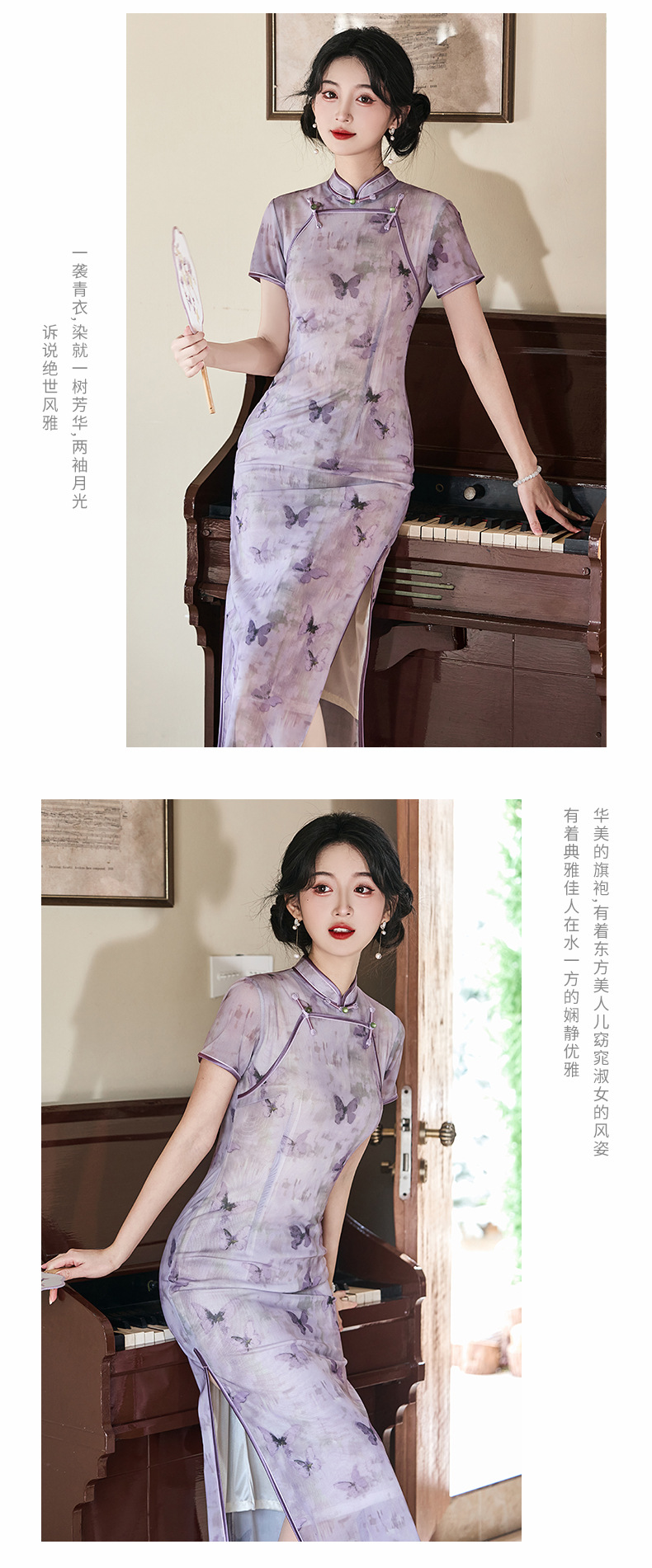 改良年轻款少女,民国风紫色旗袍YG- 2571