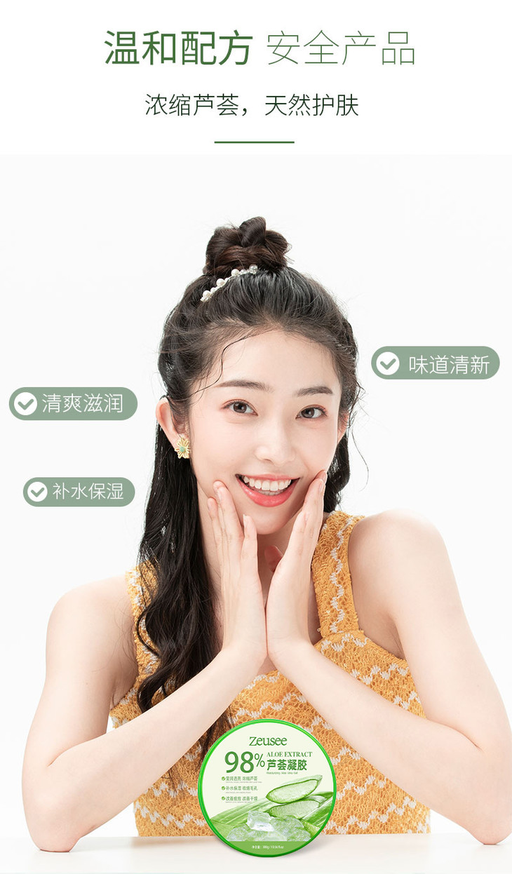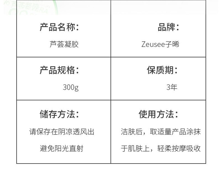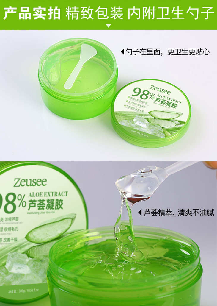 【买1送1】zeusee芦荟胶祛痘芦荟凝胶98%乳液面霜面膜300g-M仓
