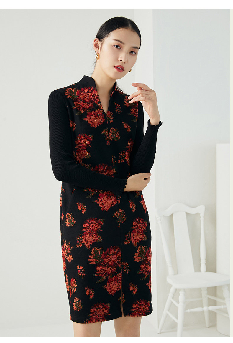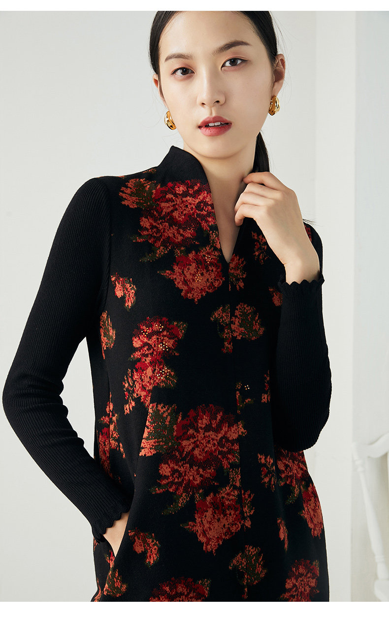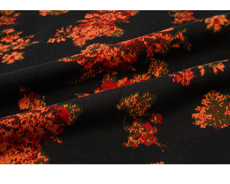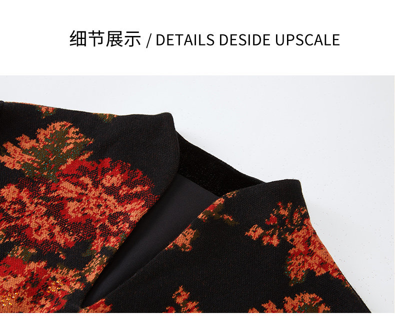 乔万尼秋冬新款绵羊毛帝王花重磅设计感重磅宽松版端庄大气连衣裙ES4E310
