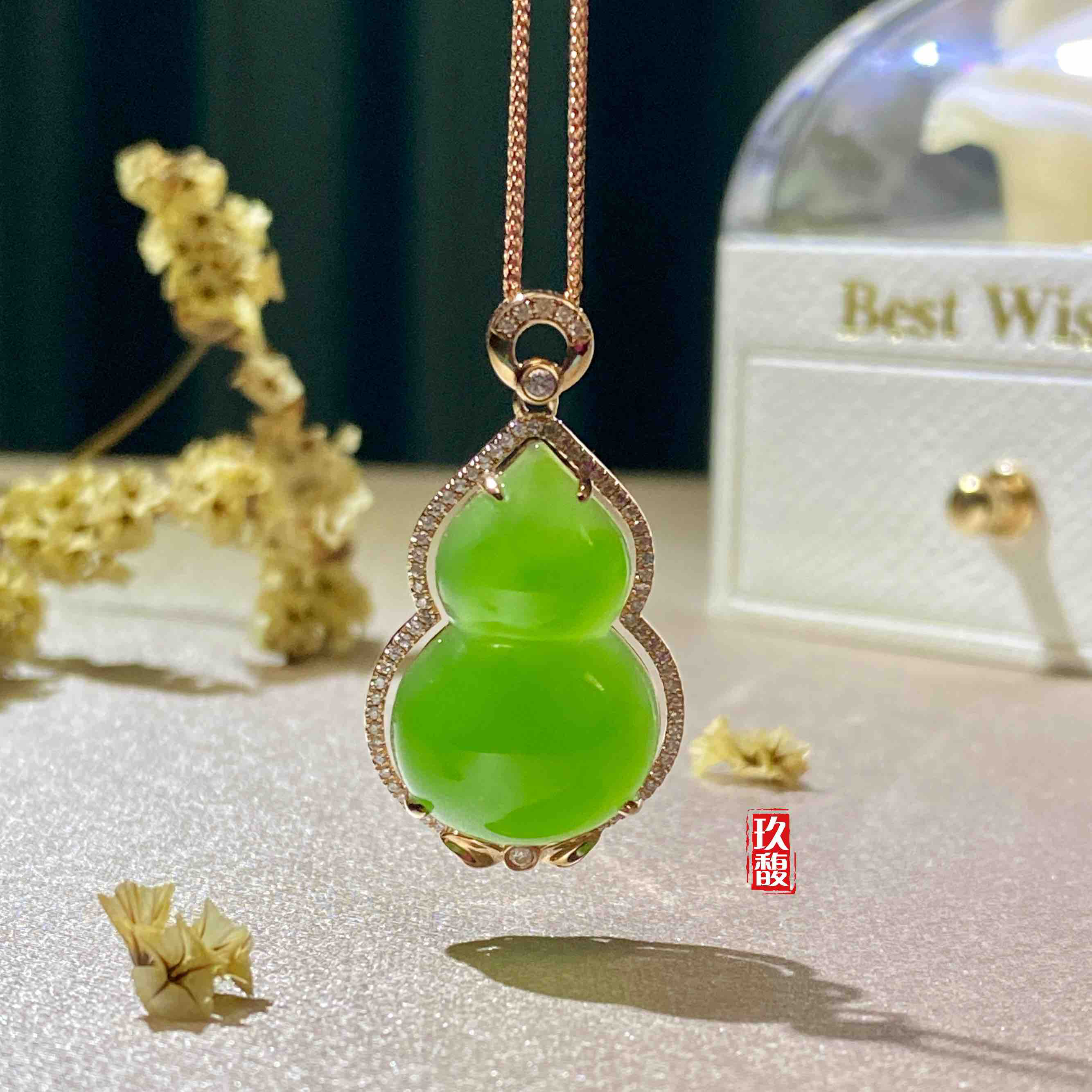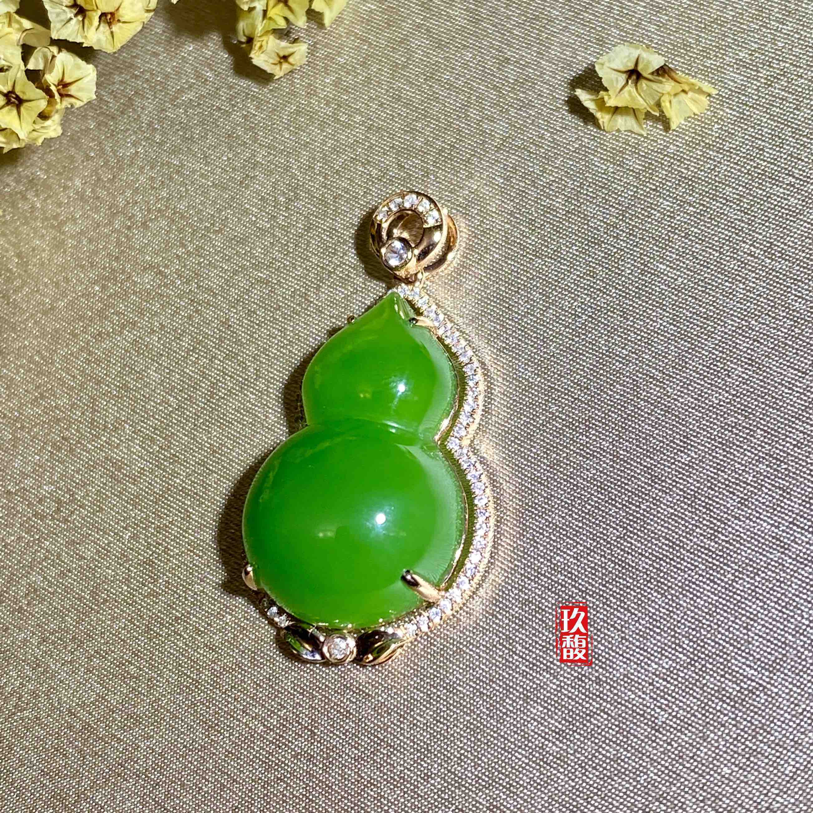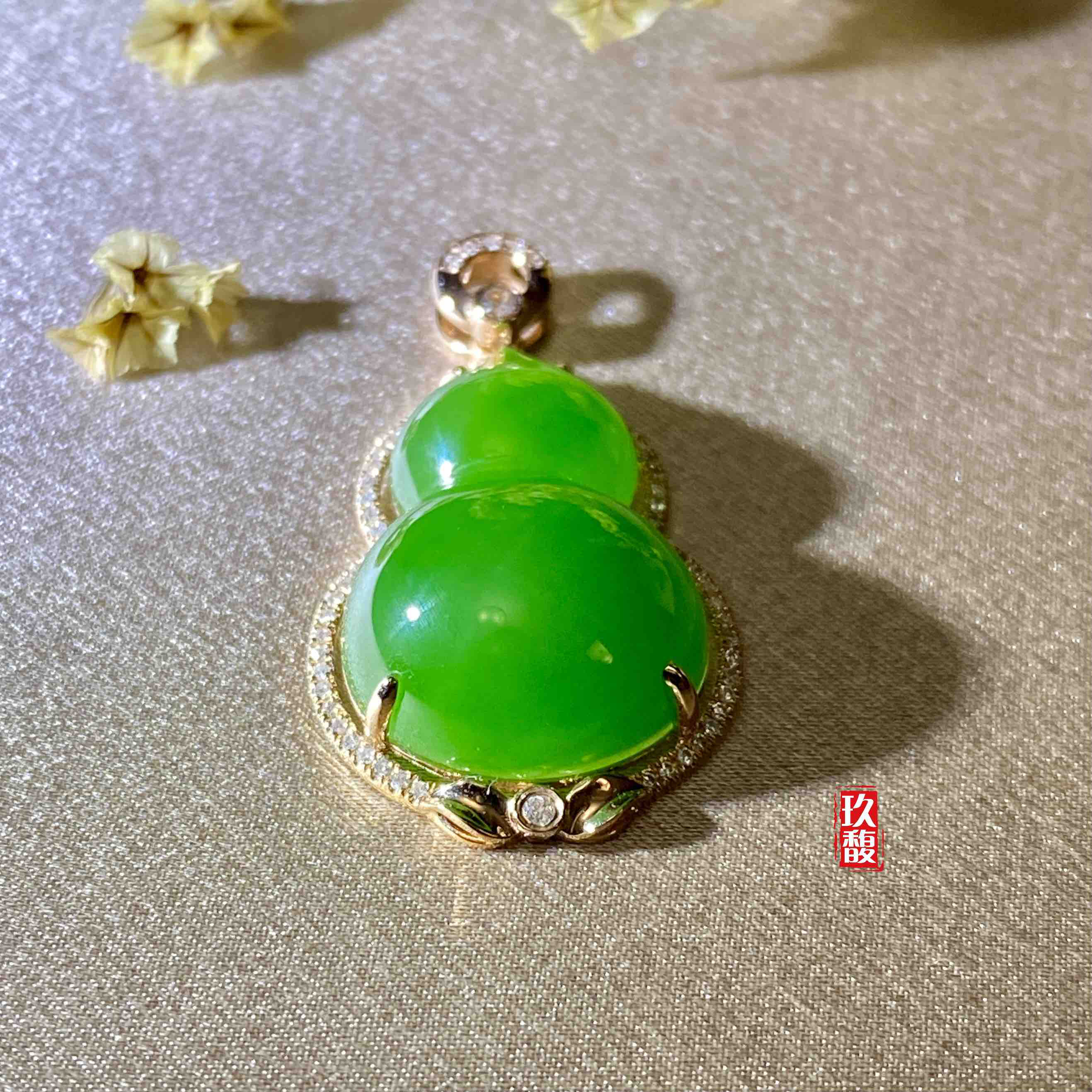 玉石尺寸:单面葫芦15*24mm/苹果绿