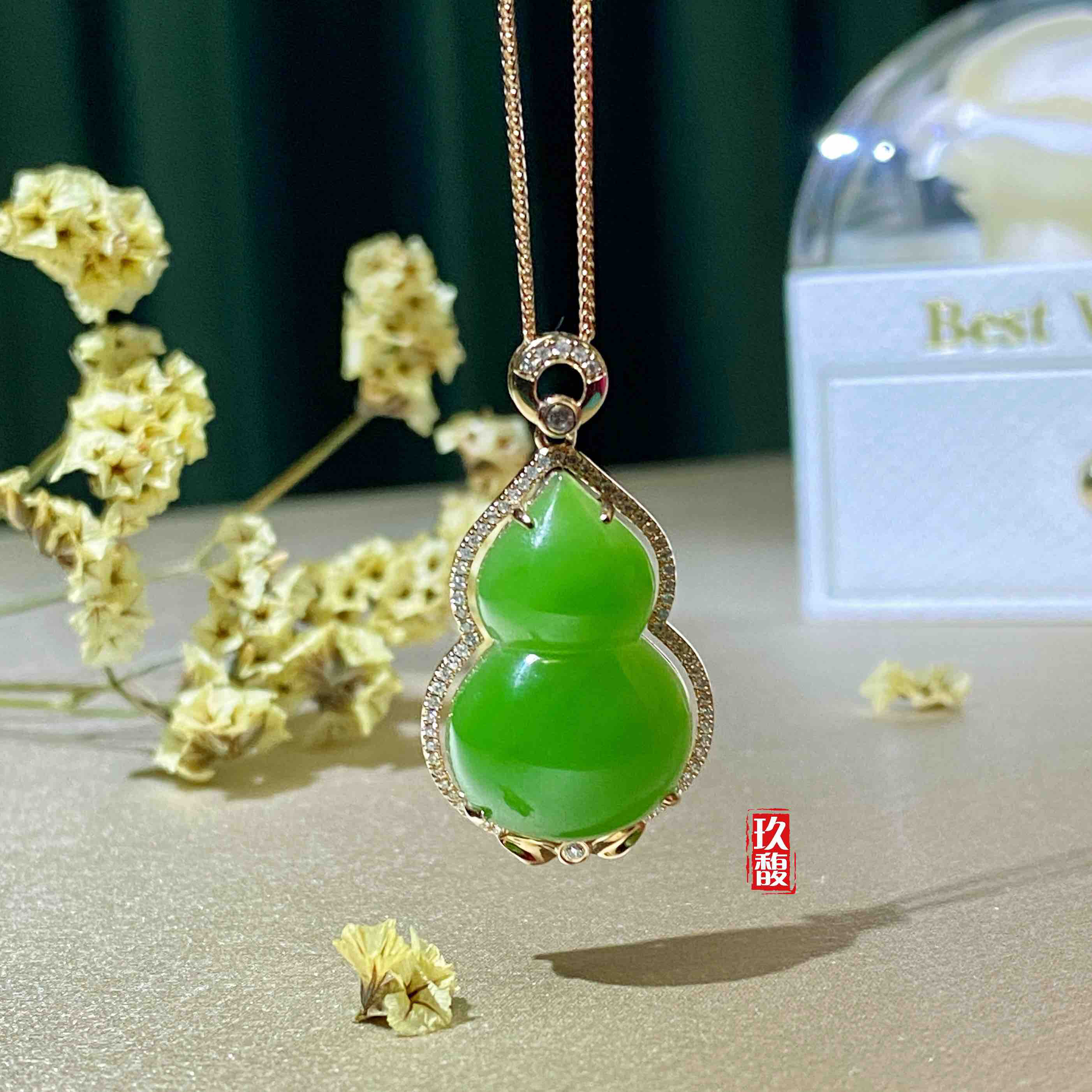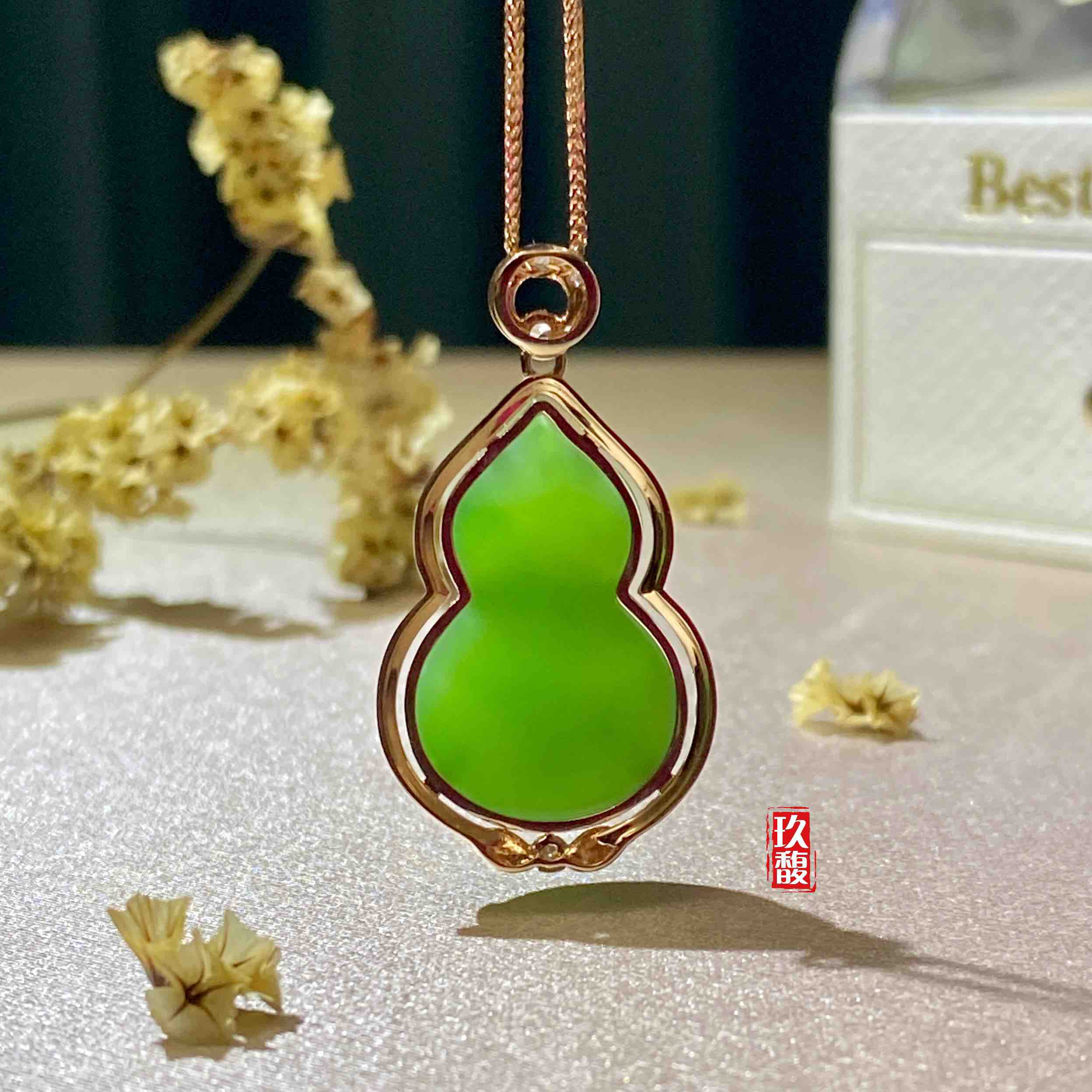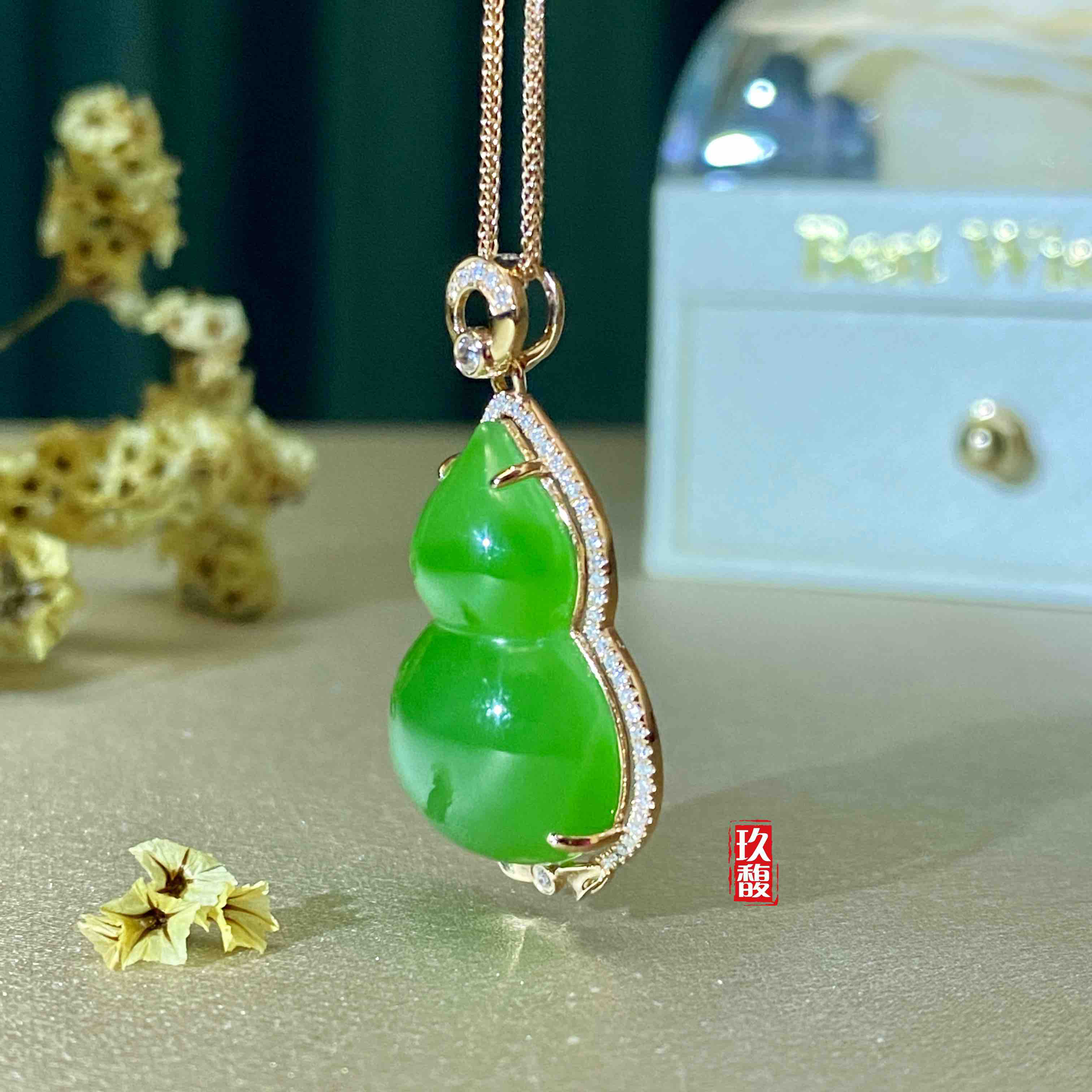 玉石尺寸:单面葫芦15*24mm/苹果绿