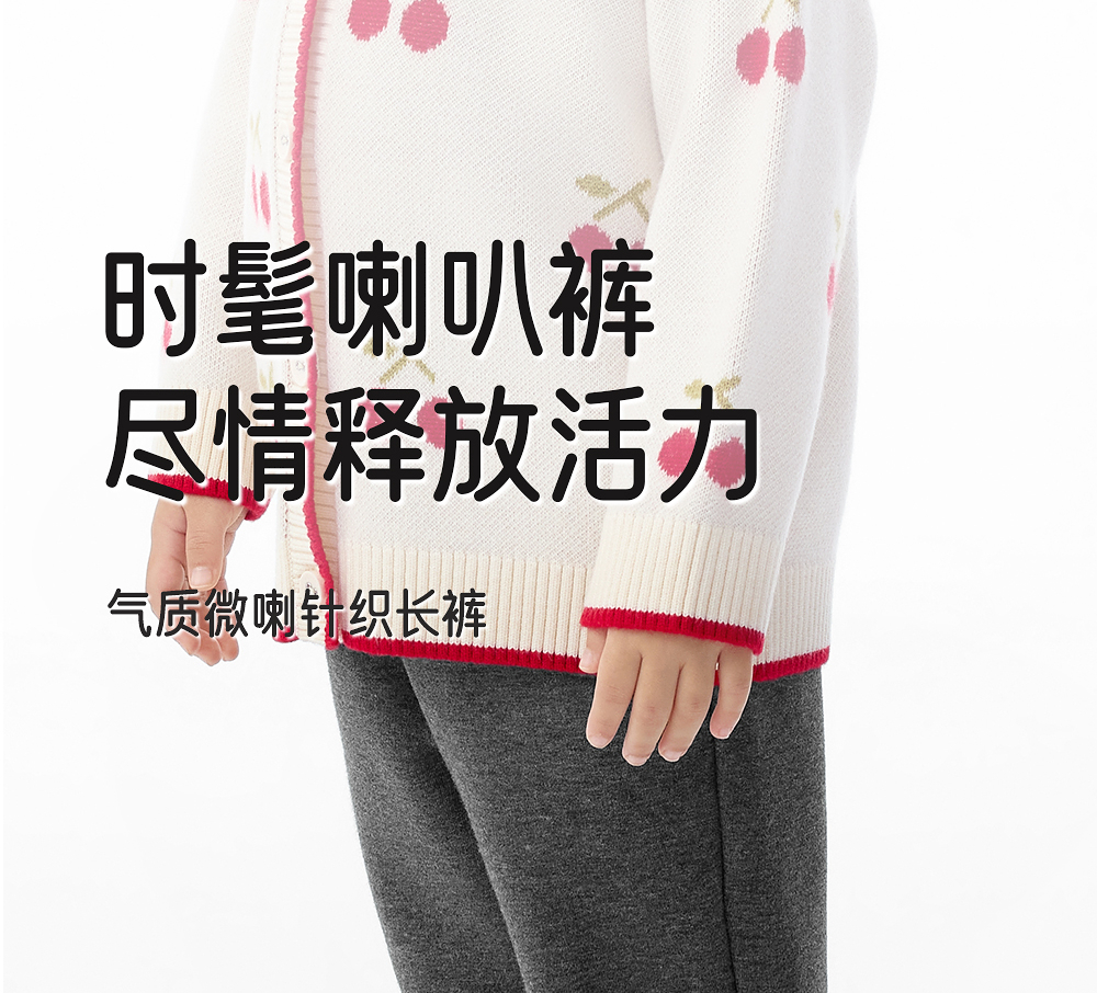 英氏儿童裤子秋冬加绒保暖女童打底裤新款休闲裤女宝微喇叭裤子
