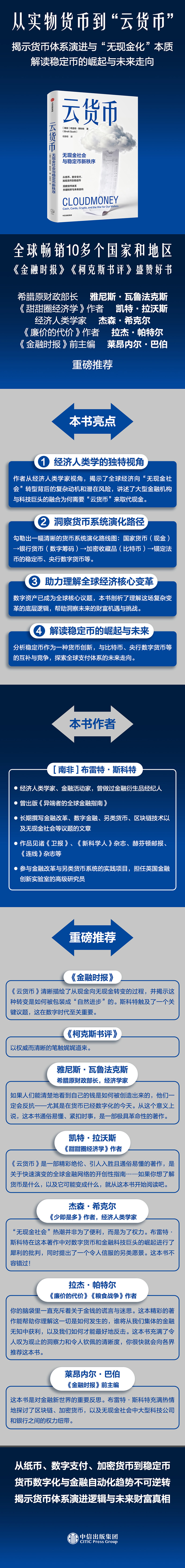 《云货币》是一部精彩伦、引人入胜且通俗易懂的著作,是关于快速演变的全球金融网络的开创性指南……如果你想了解货币是什么,以及它可能变成什么,就从这本书开始阅读吧。