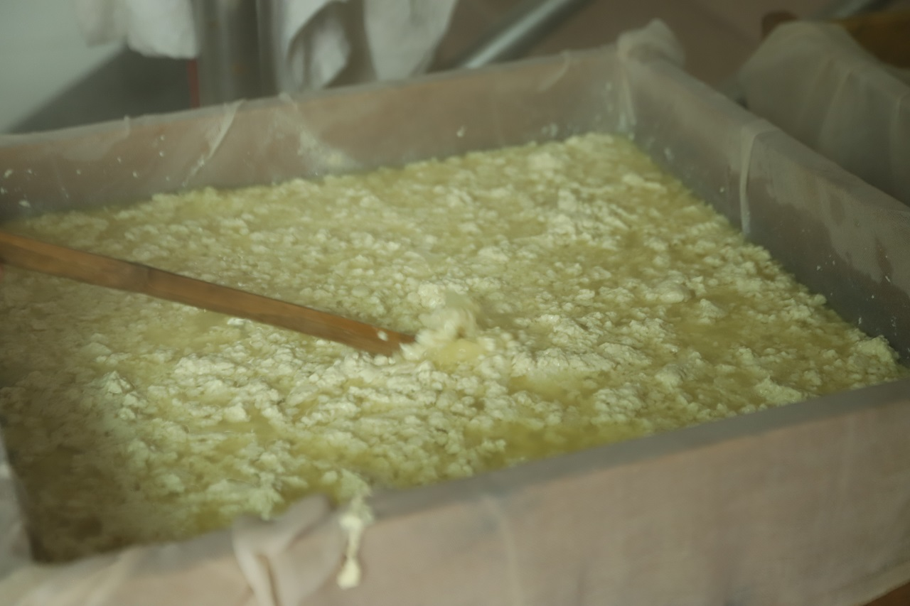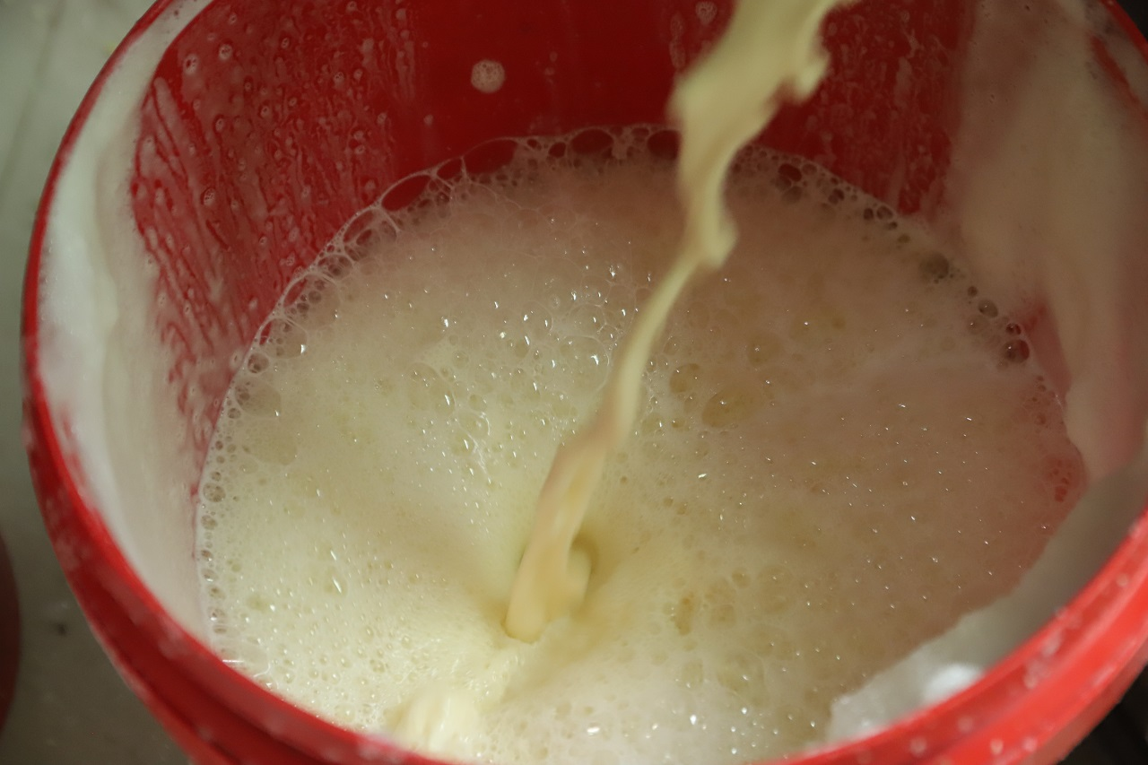 生态种植的自留种黄豆在山泉水泡发下慢慢膨大,之后在阿姨一通熟练的操作下,磨豆腐,点卤,完成豆子到豆腐的转变。