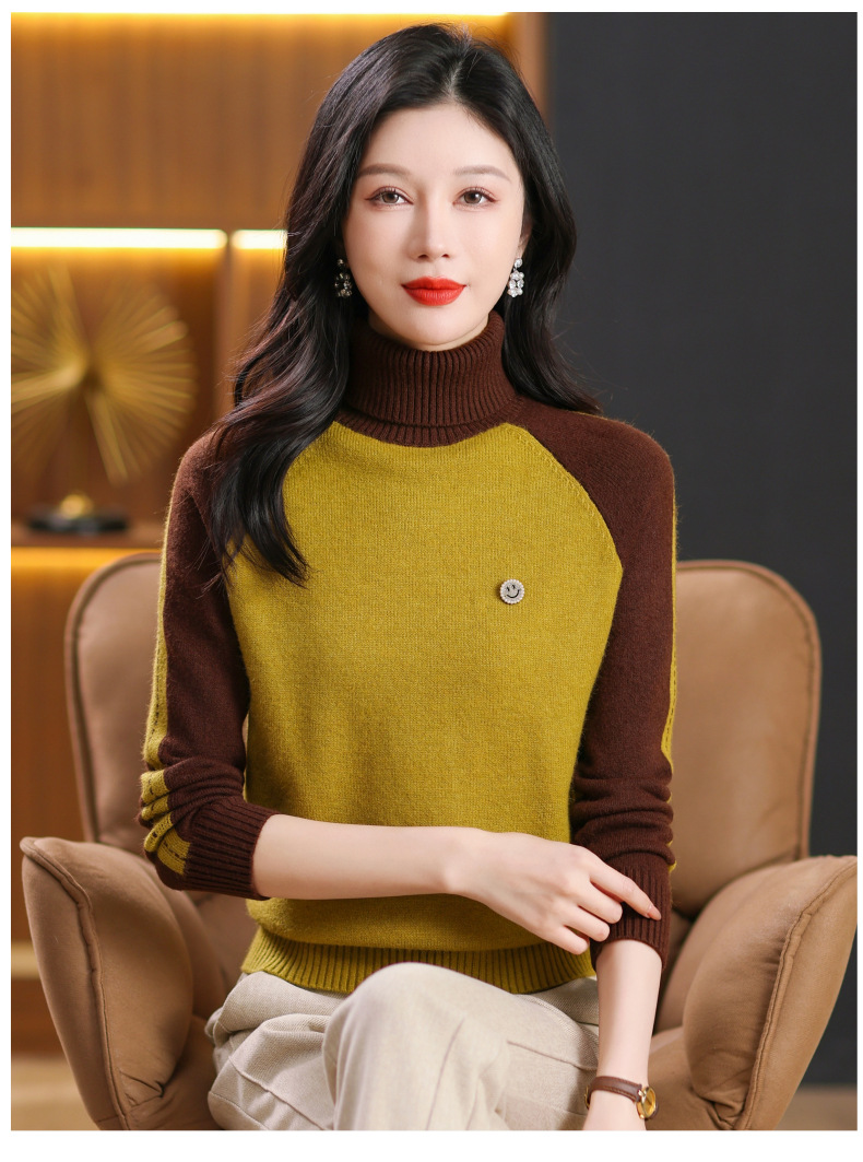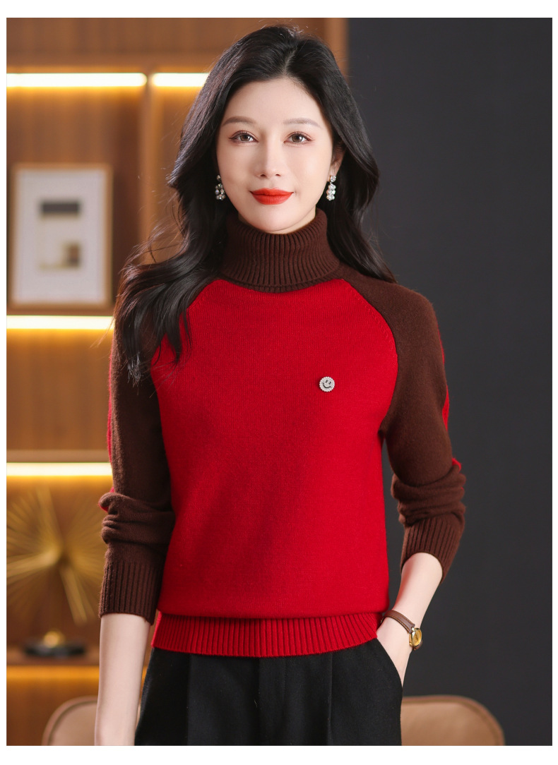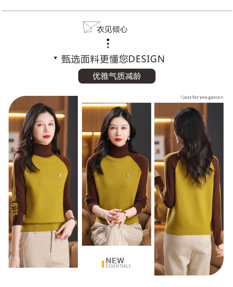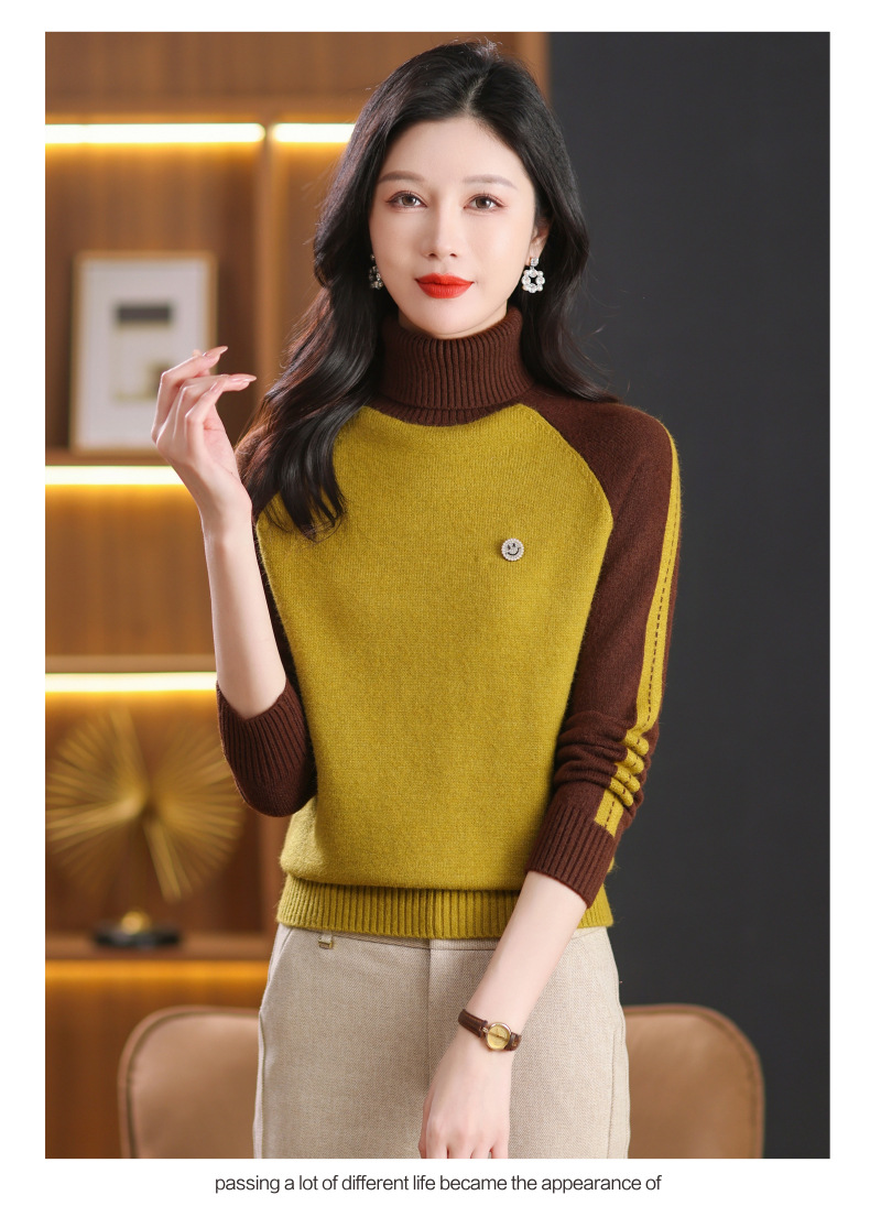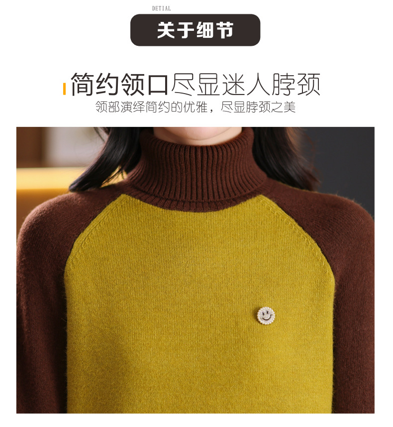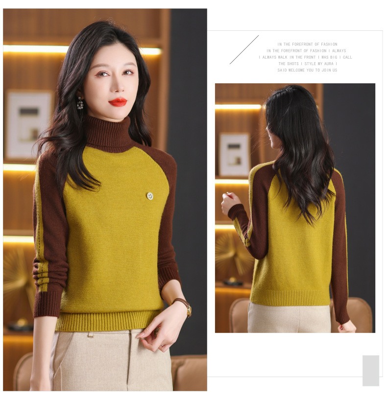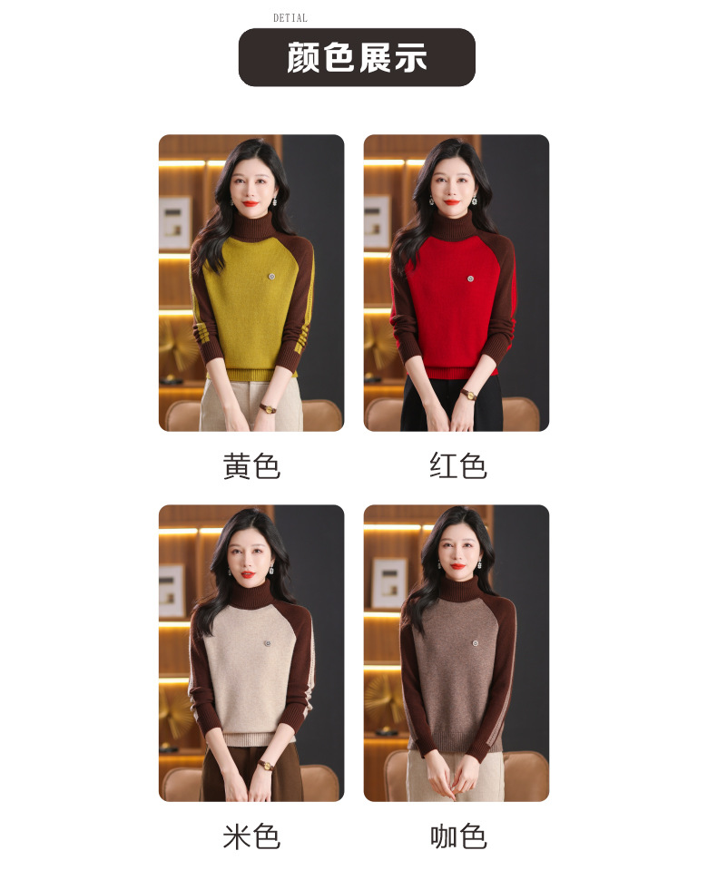 CC-103-389秋冬季高领毛衣女士2024新款洋气时尚拼色打底衫保暖内搭