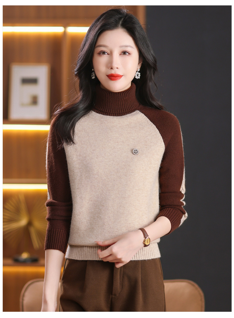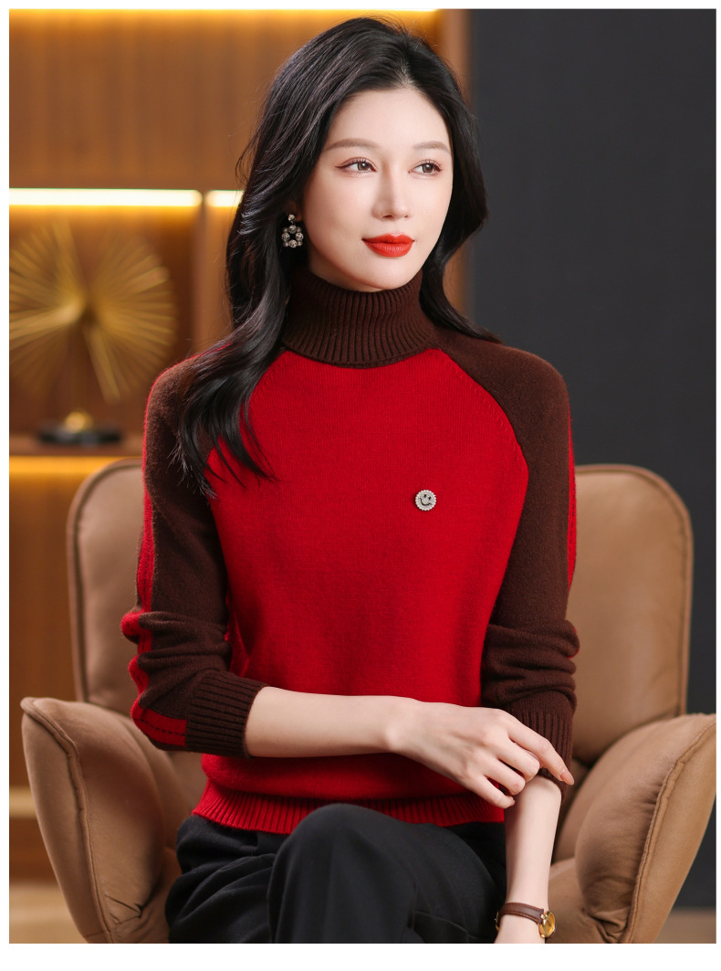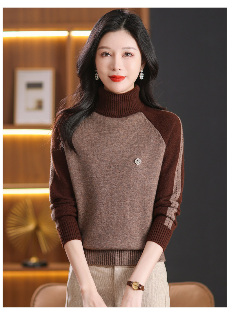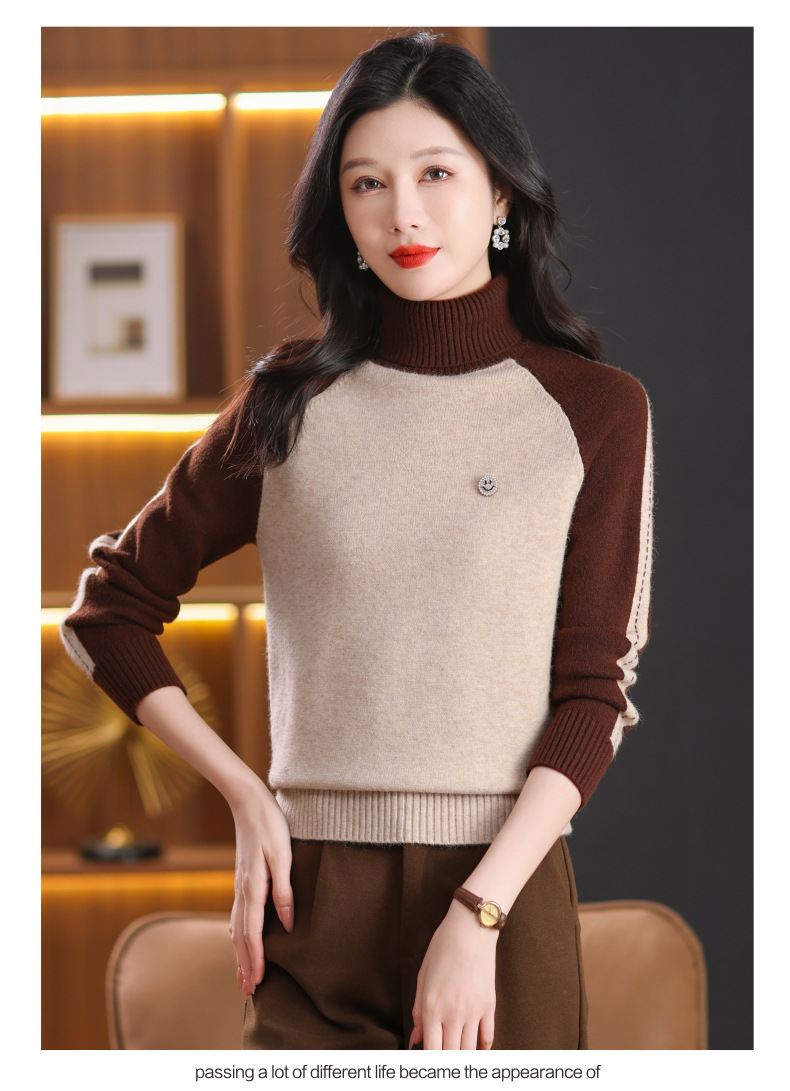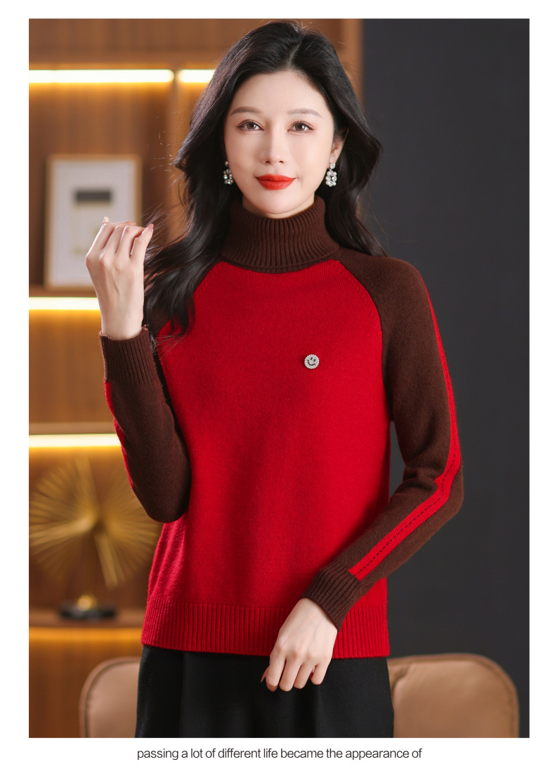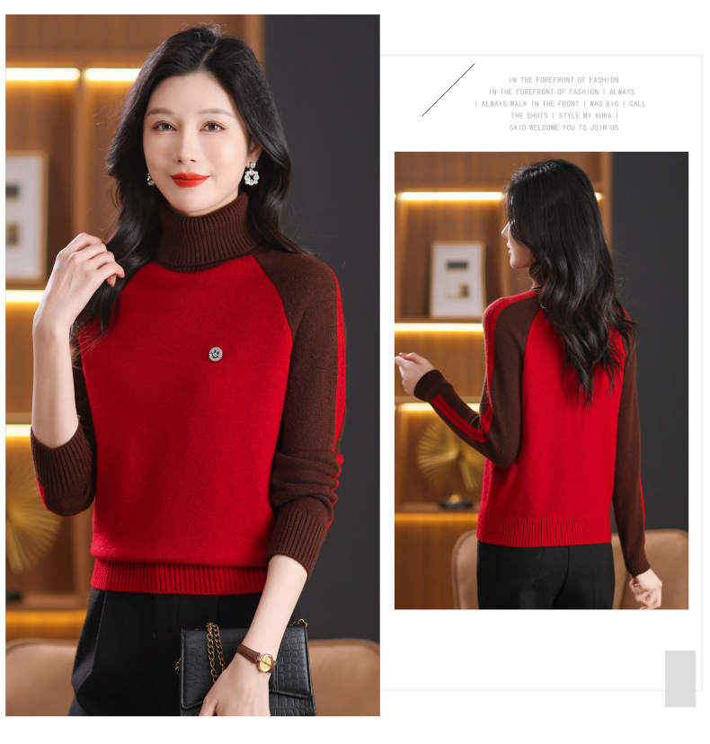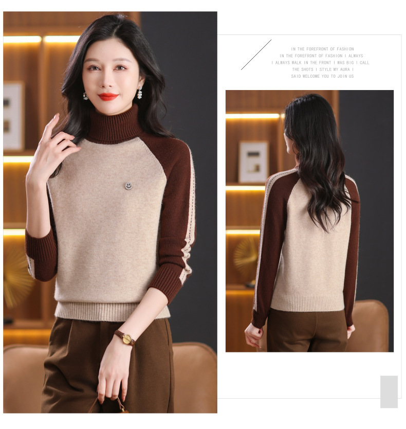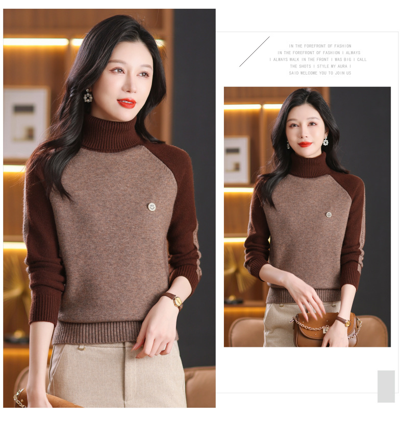 CC-103-389秋冬季高领毛衣女士2024新款洋气时尚拼色打底衫保暖内搭