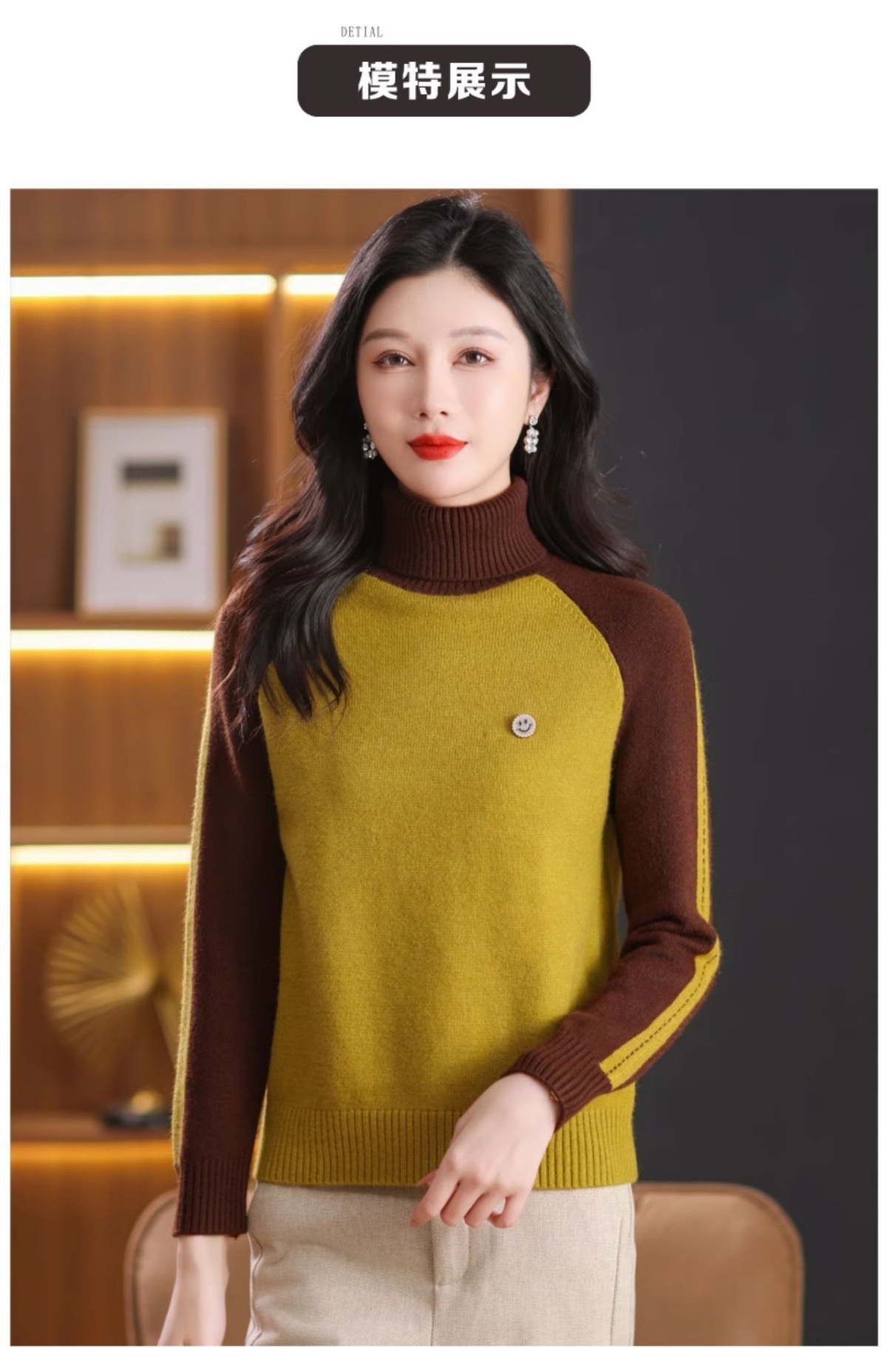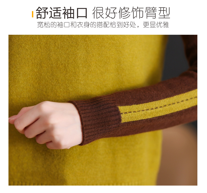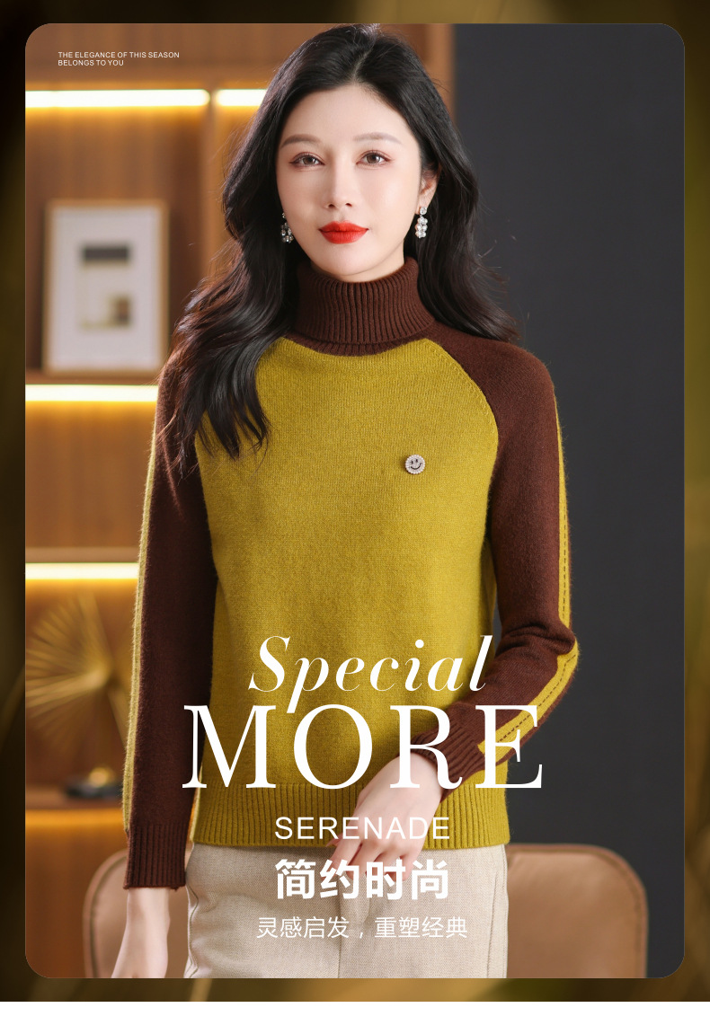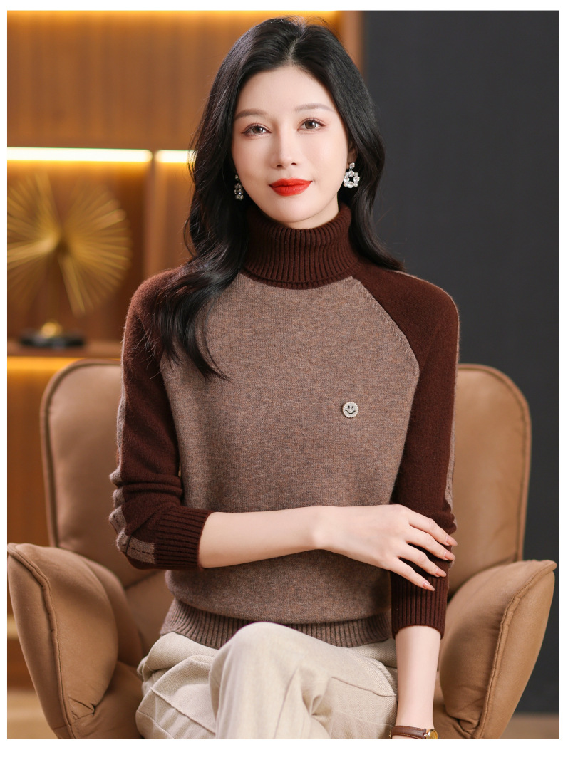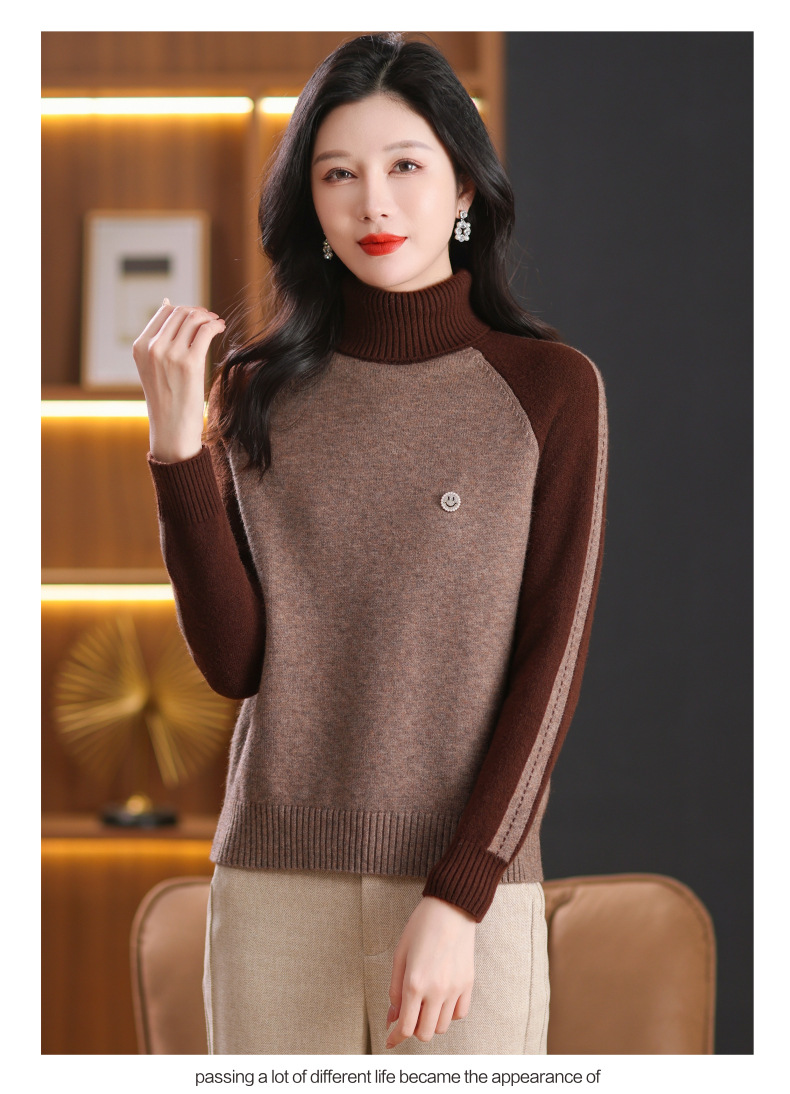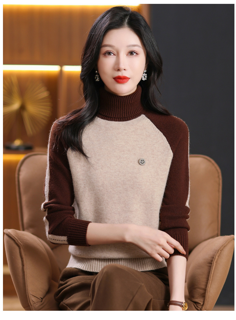 CC-103-389秋冬季高领毛衣女士2024新款洋气时尚拼色打底衫保暖内搭