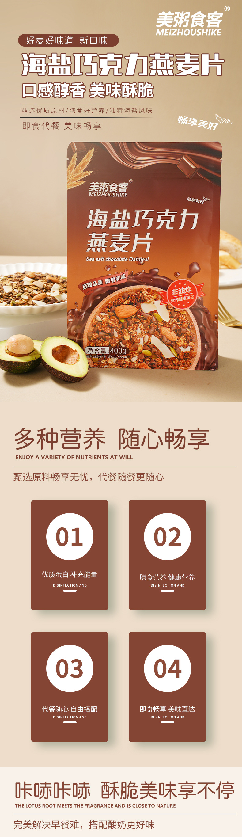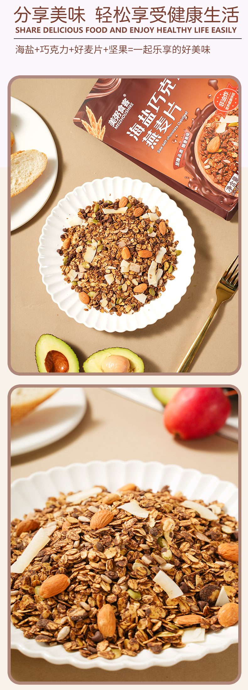 【口感醇香,美味酥脆,好麦好味道~】美粥食客海盐巧克力烘焙麦片400g 酸奶巧克力早餐麦片 即食代餐 美味畅享-QQ