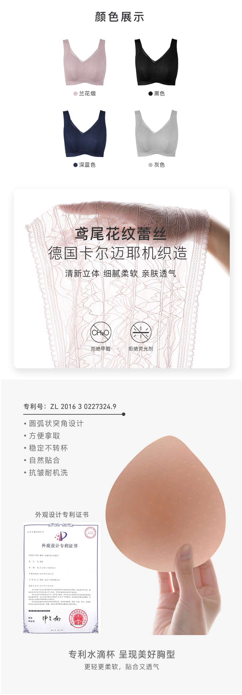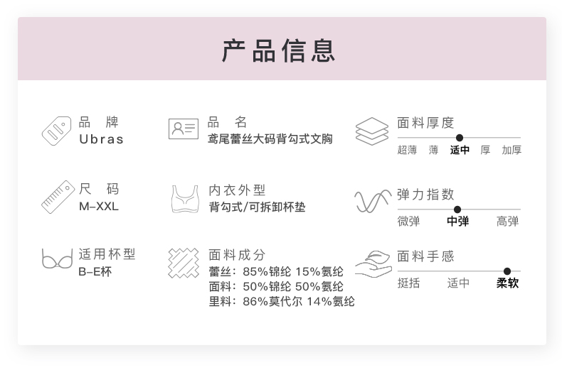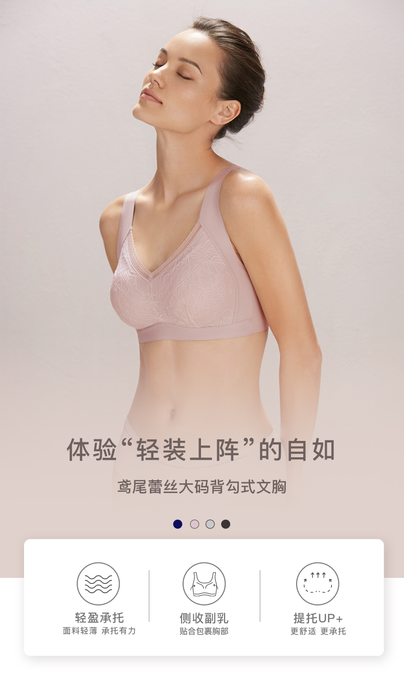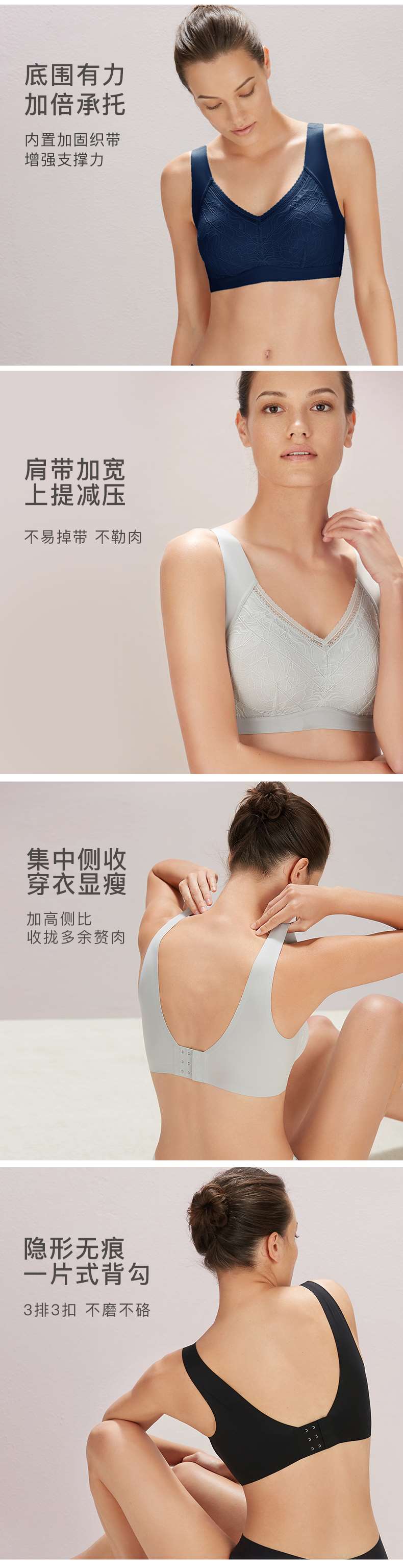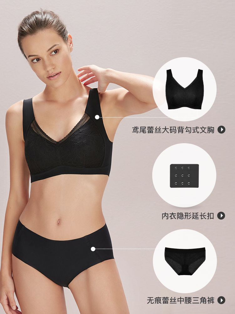 Ubras鸢尾蕾丝大码背勾式文胸内衣女无钢圈舒适无痕大胸显小胸罩