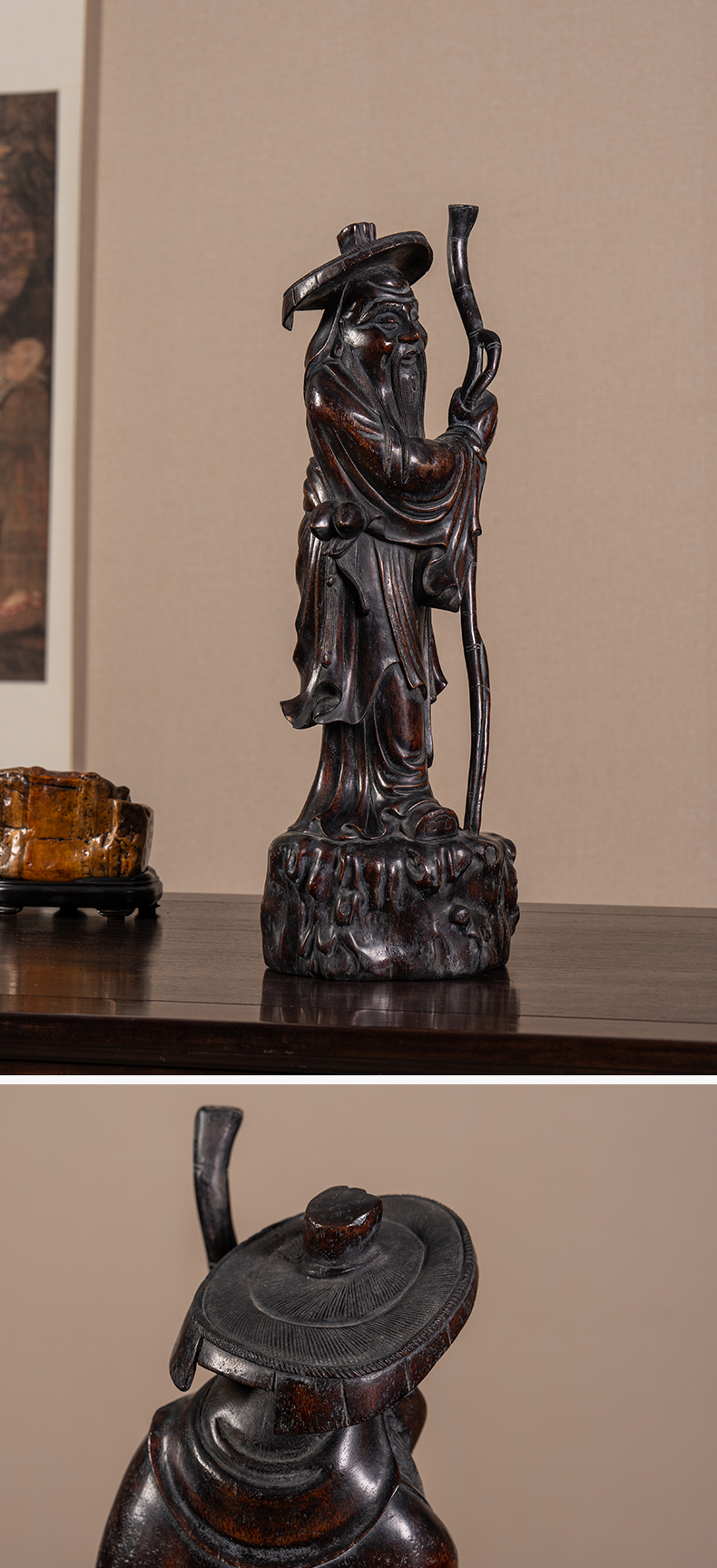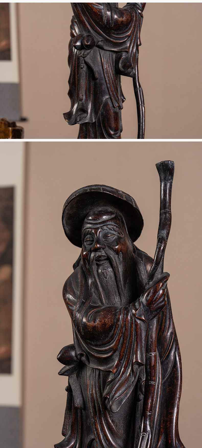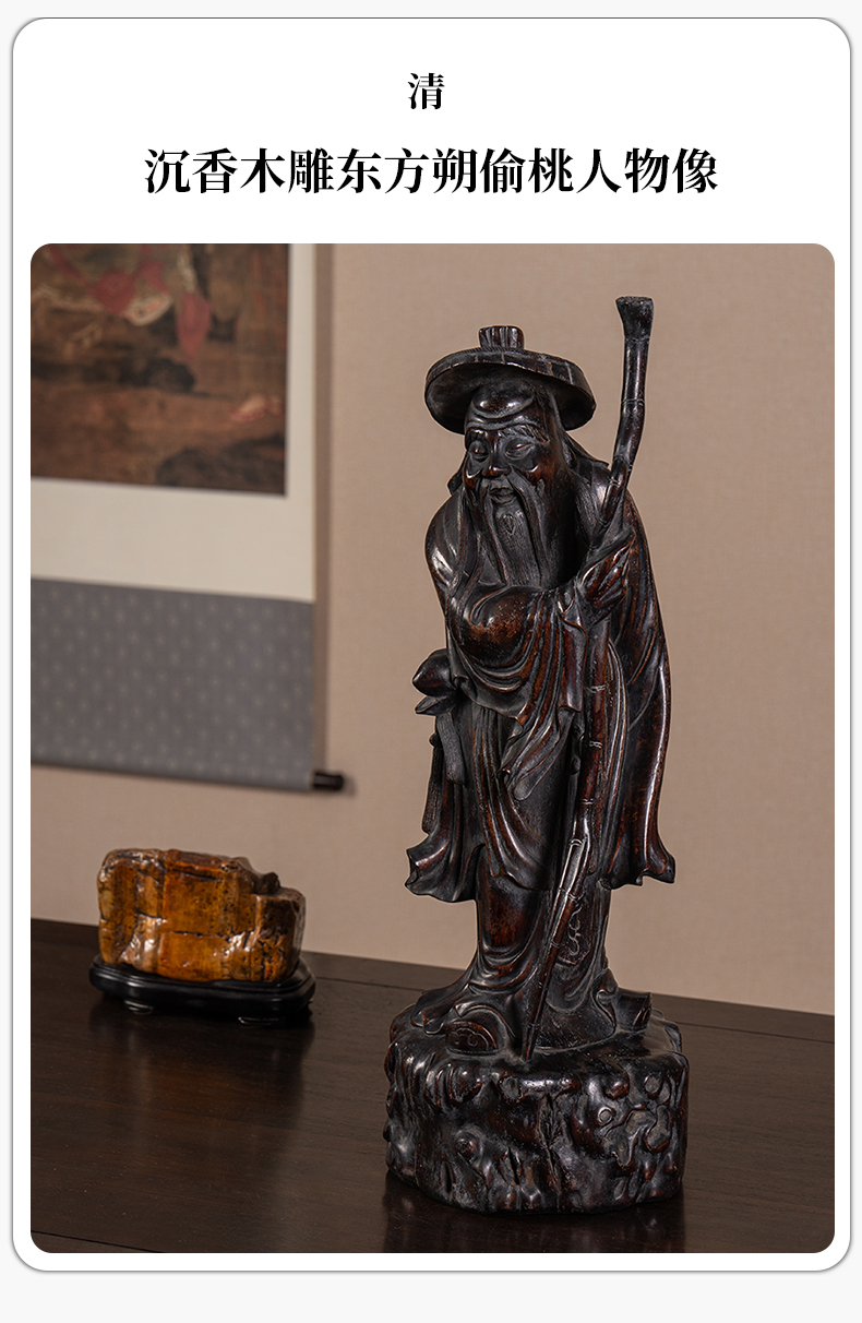 清 沉香木雕东方朔偷桃人物像