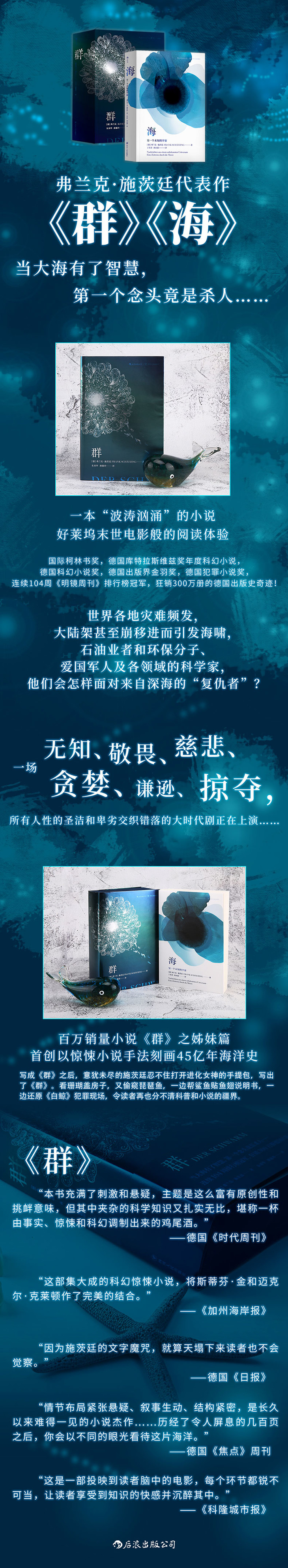 写成《群》之后,意犹未尽的施茨廷忍不住打开进化女神的手提包,先陪三叶虫吃饭、看珊瑚盖房子,又偷窥琵琶鱼,一边帮鲨鱼贴鱼翅说明书,一边还原《白鲸》犯罪现场,令读者再也分不清科普和小说的疆界。