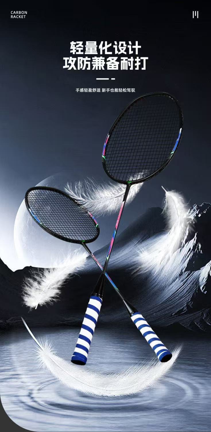 【商品名称】德尔惠1618全碳素一体羽毛球拍套装