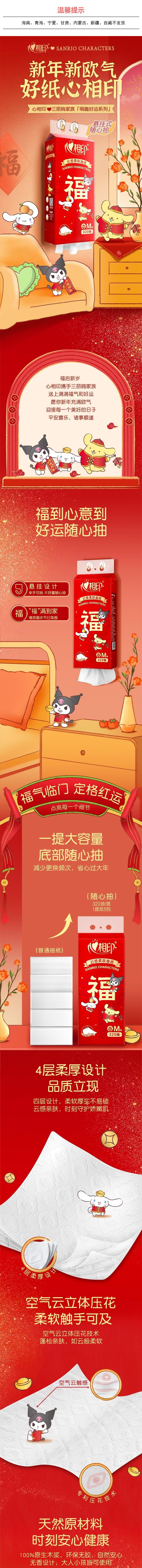 心相印 云感320抽4提四层悬挂式提装面巾纸(新春) 690324496003811