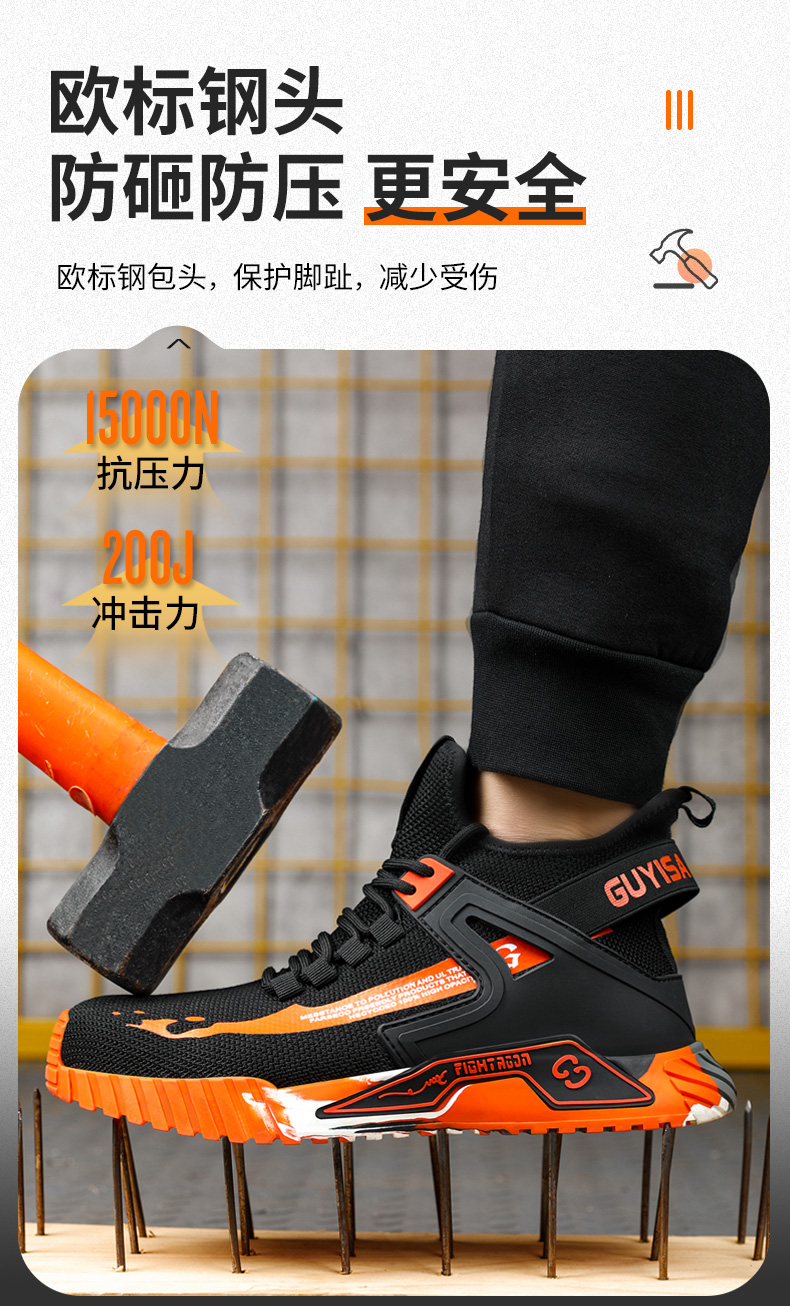 新款男士防砸防刺劳保鞋透气款橡胶底耐磨款