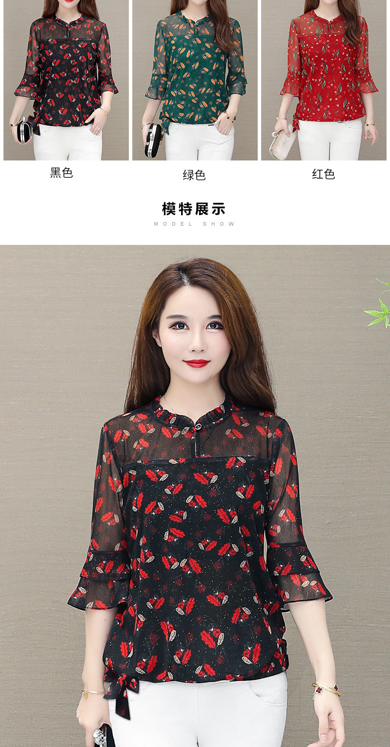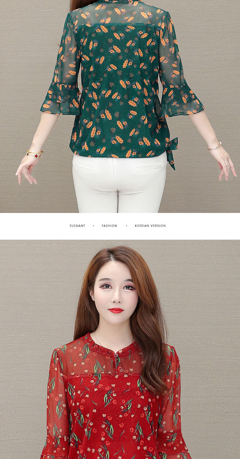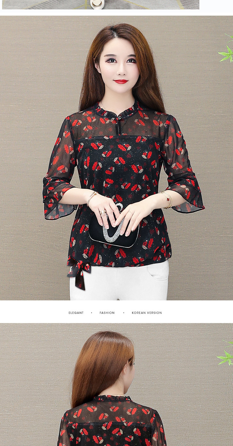 MQ-RL9966春夏新款短款洋气长袖提花雪纺衫YY