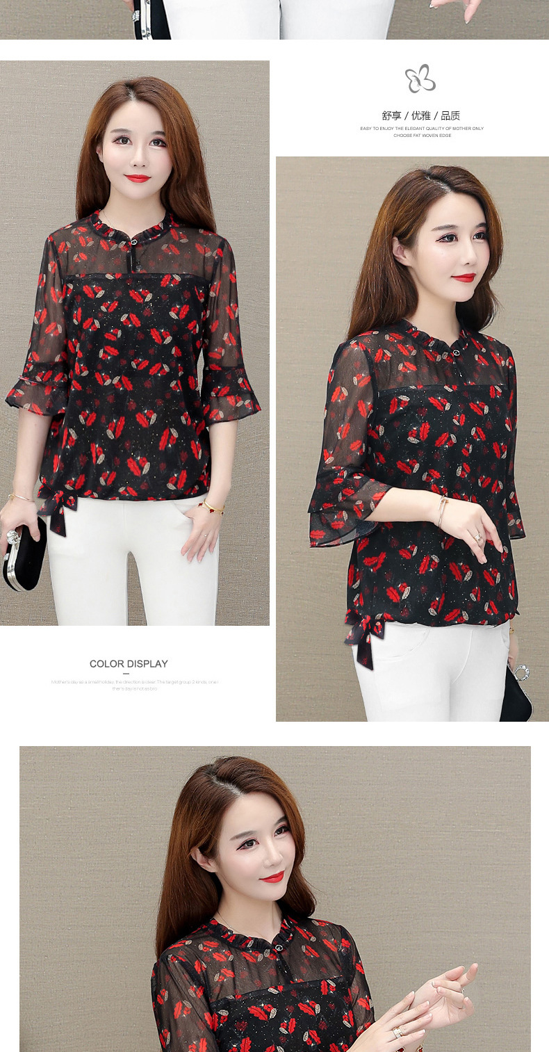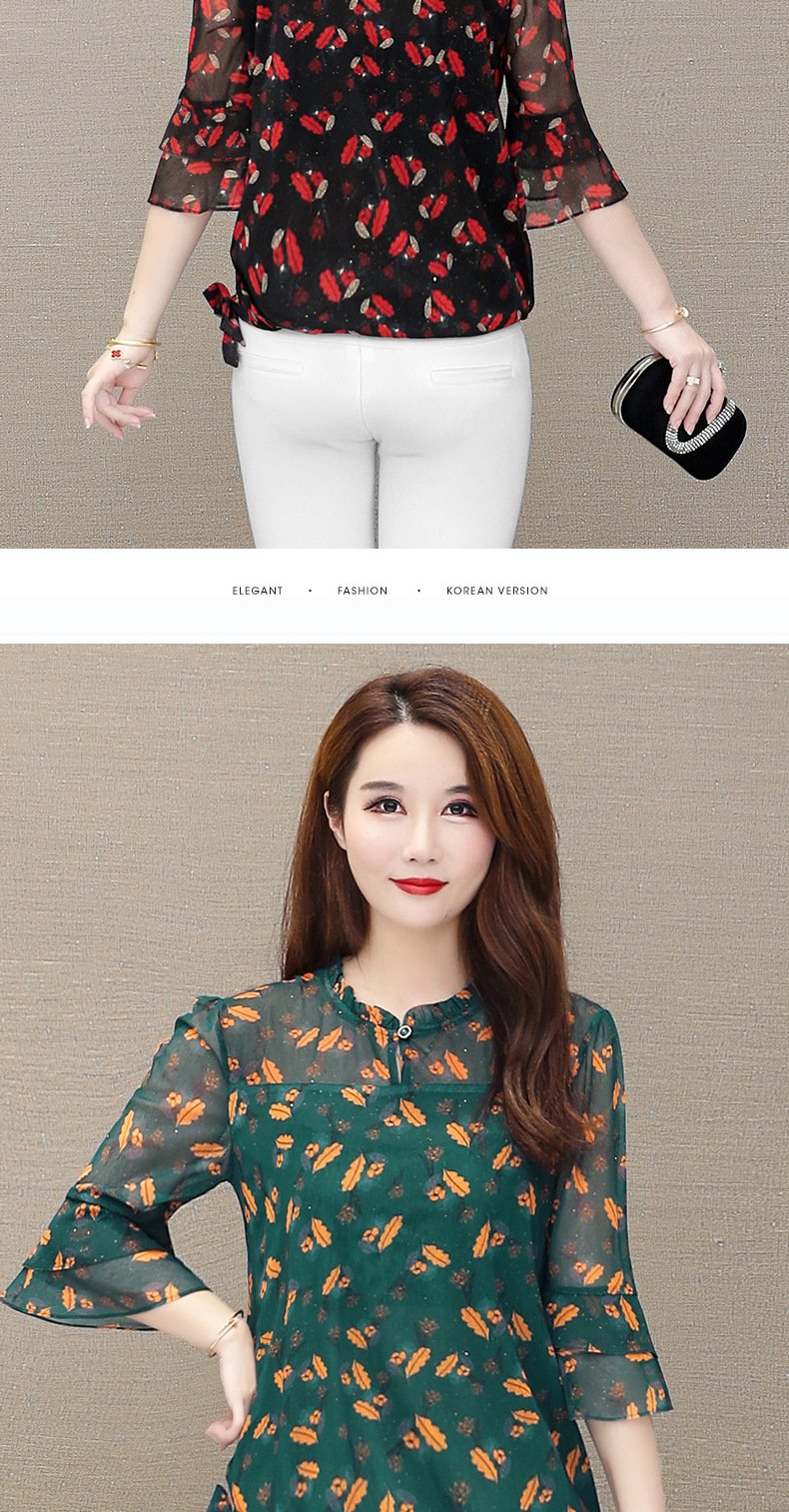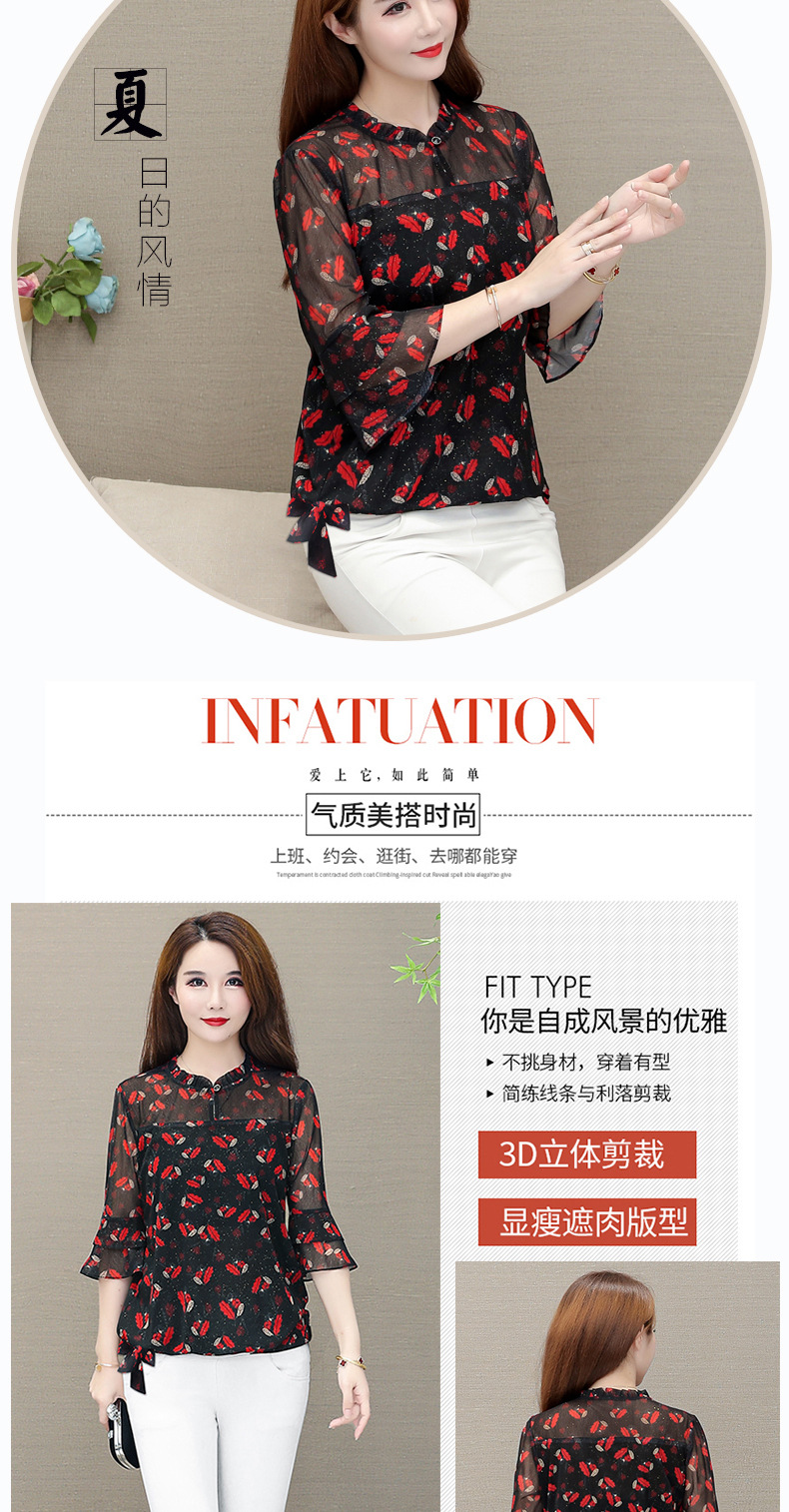 MQ-RL9966春夏新款短款洋气长袖提花雪纺衫YY