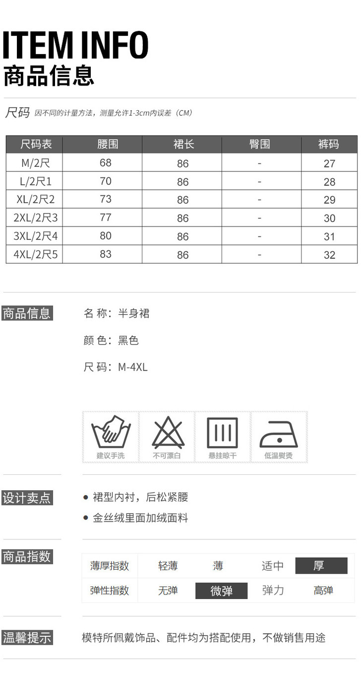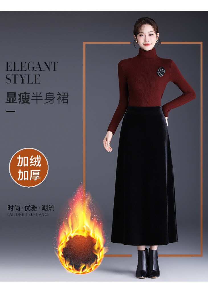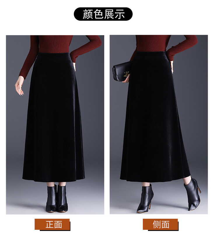 金丝绒加绒长款半身裙,大摆伞裙休闲时尚A字裙MYX-KYL-090-L
