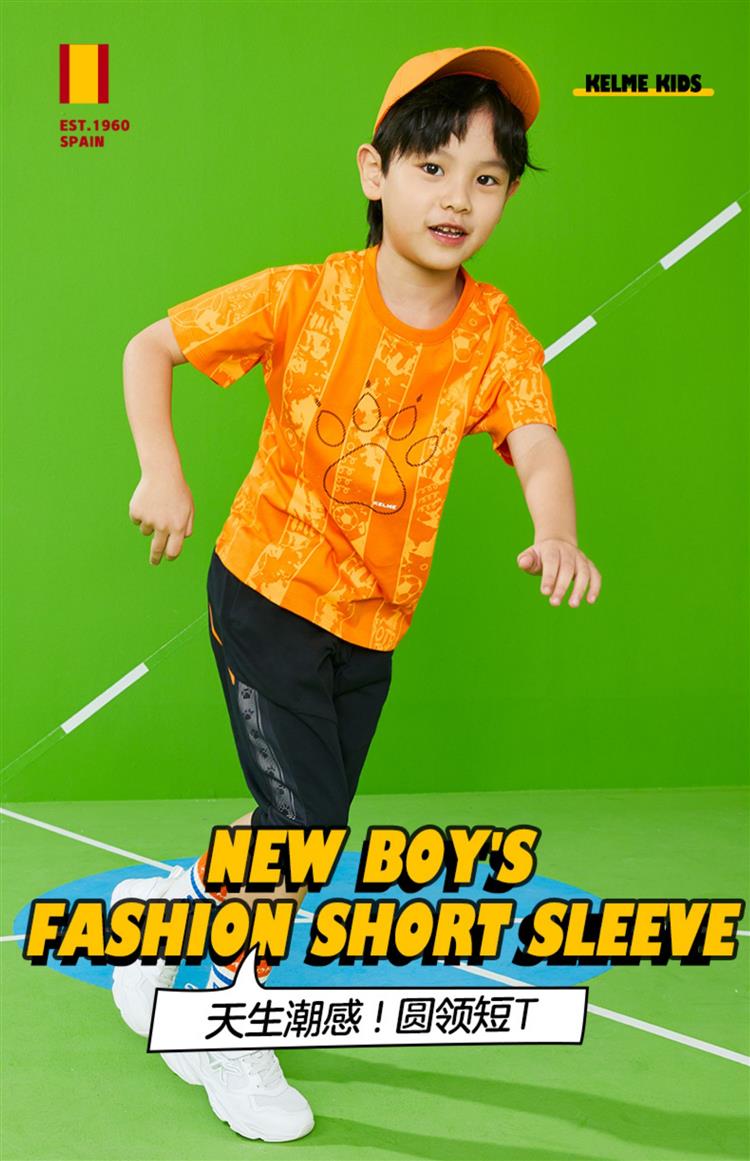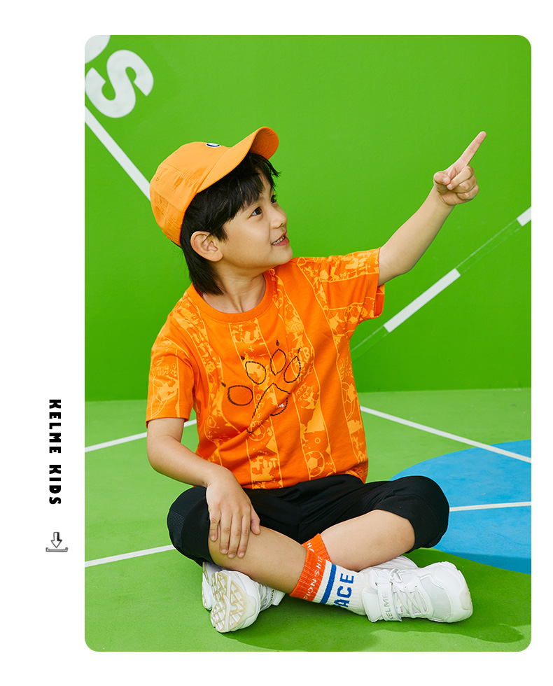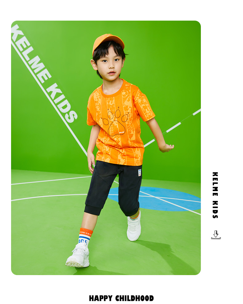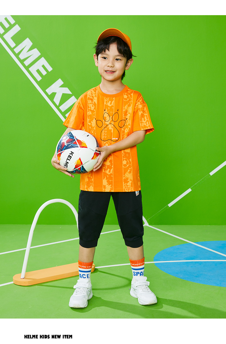 KIDS卡尔美童装儿童纯棉短袖t恤夏季新款足球印花上衣
