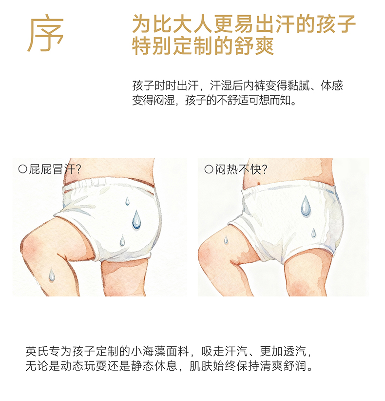 【商场同款】英氏儿童内裤10A抗菌女童小短裤男童平角裤不夹屁屁