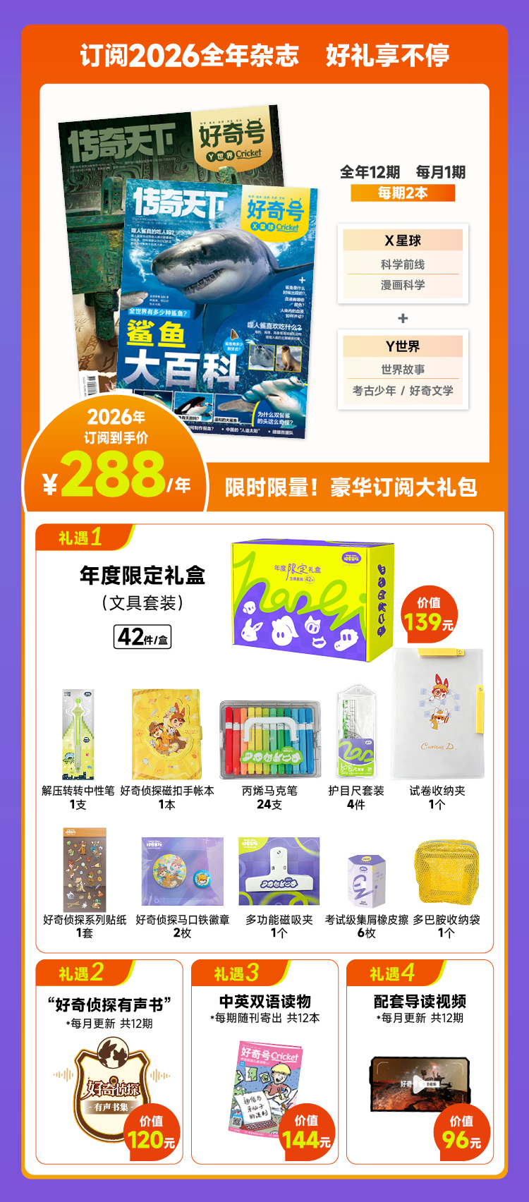 【十点独家赠超值大礼包!】《好奇号》年刊订阅 每月3册共36册 给孩子一整年的人文+历史+科学滋养