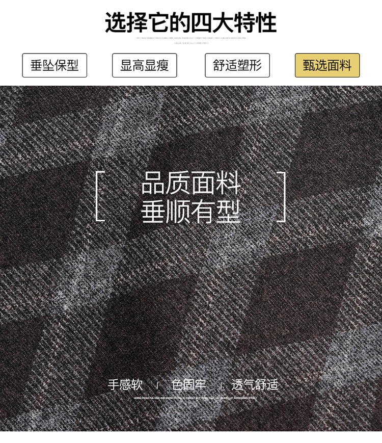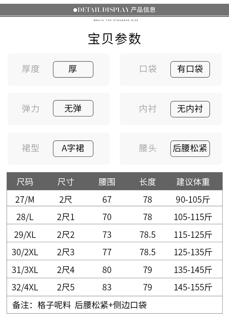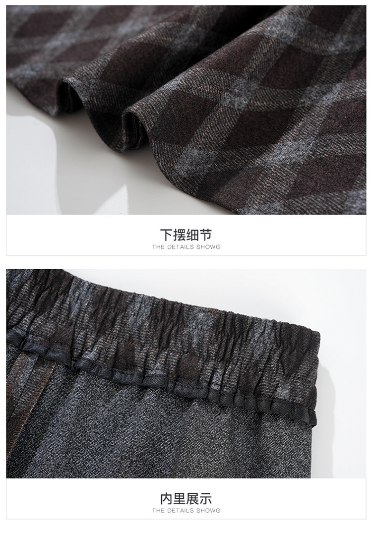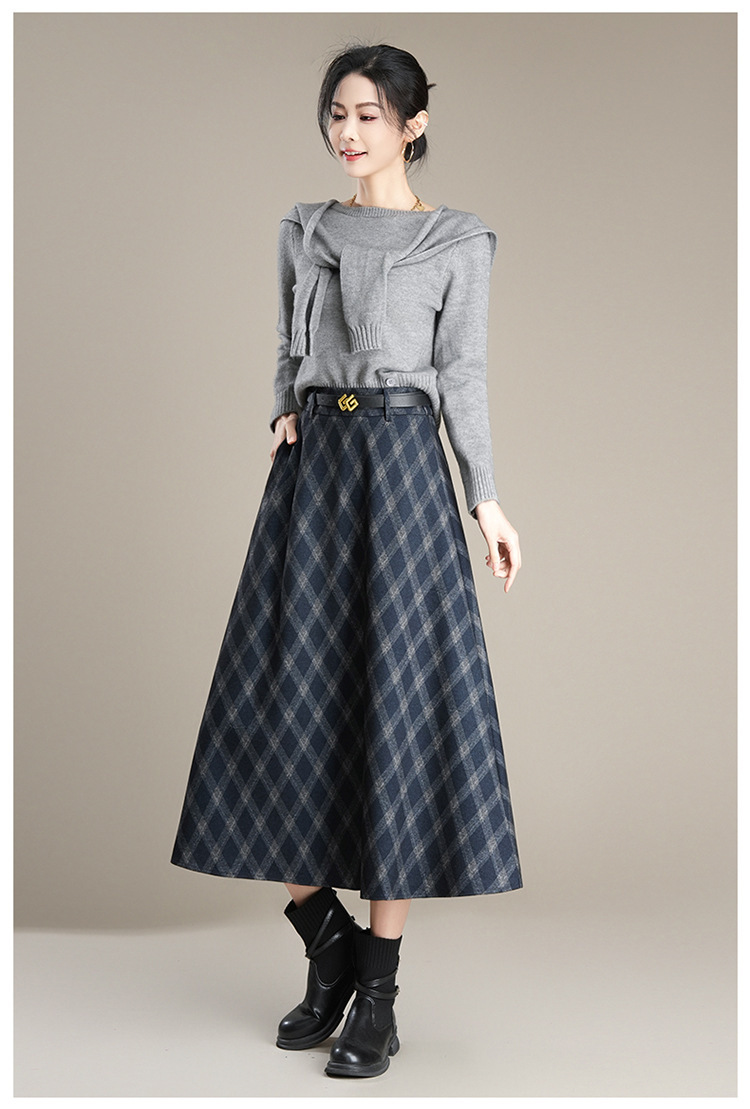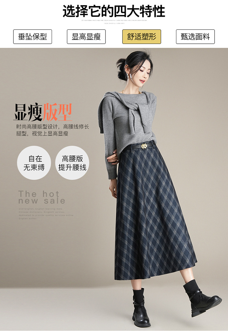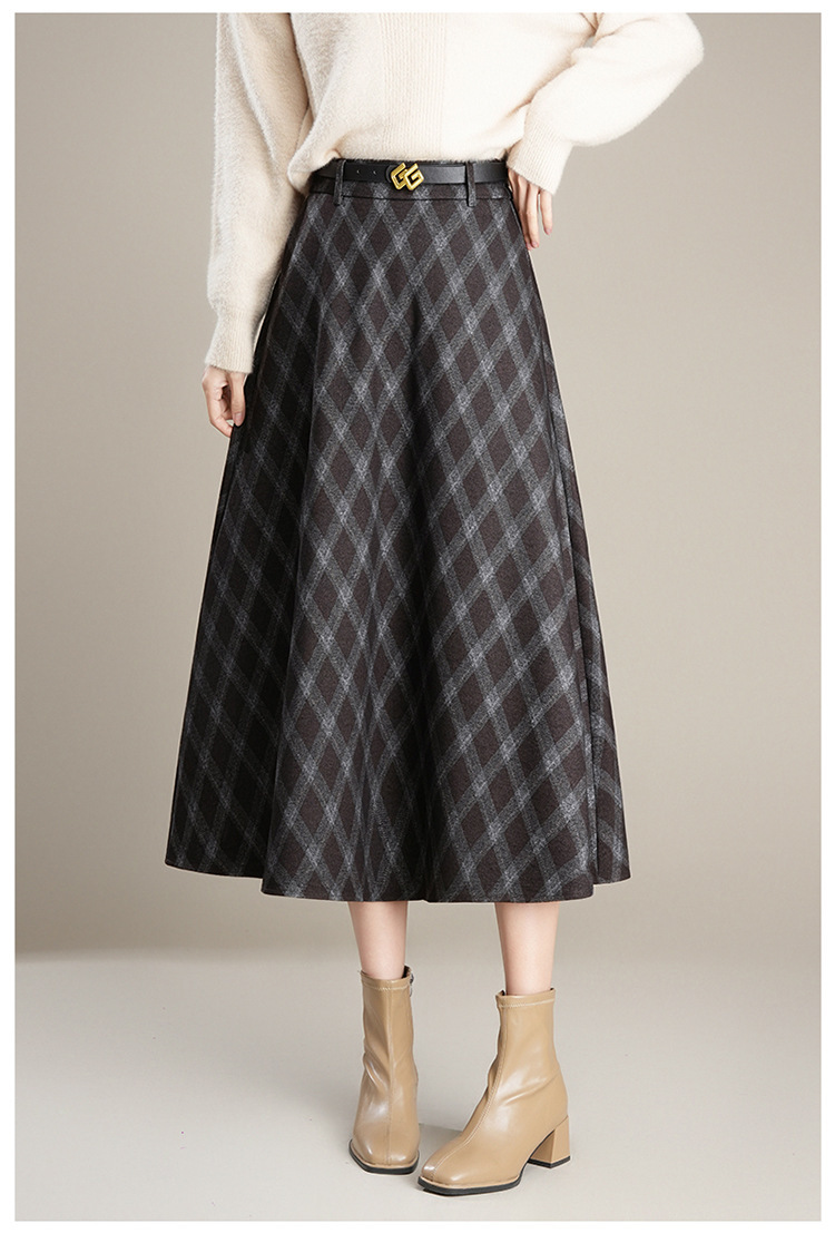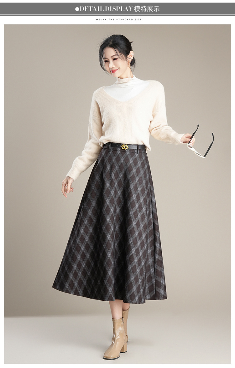 QYM 1621-Y毛呢格子半身裙高腰遮胯A字通勤裙