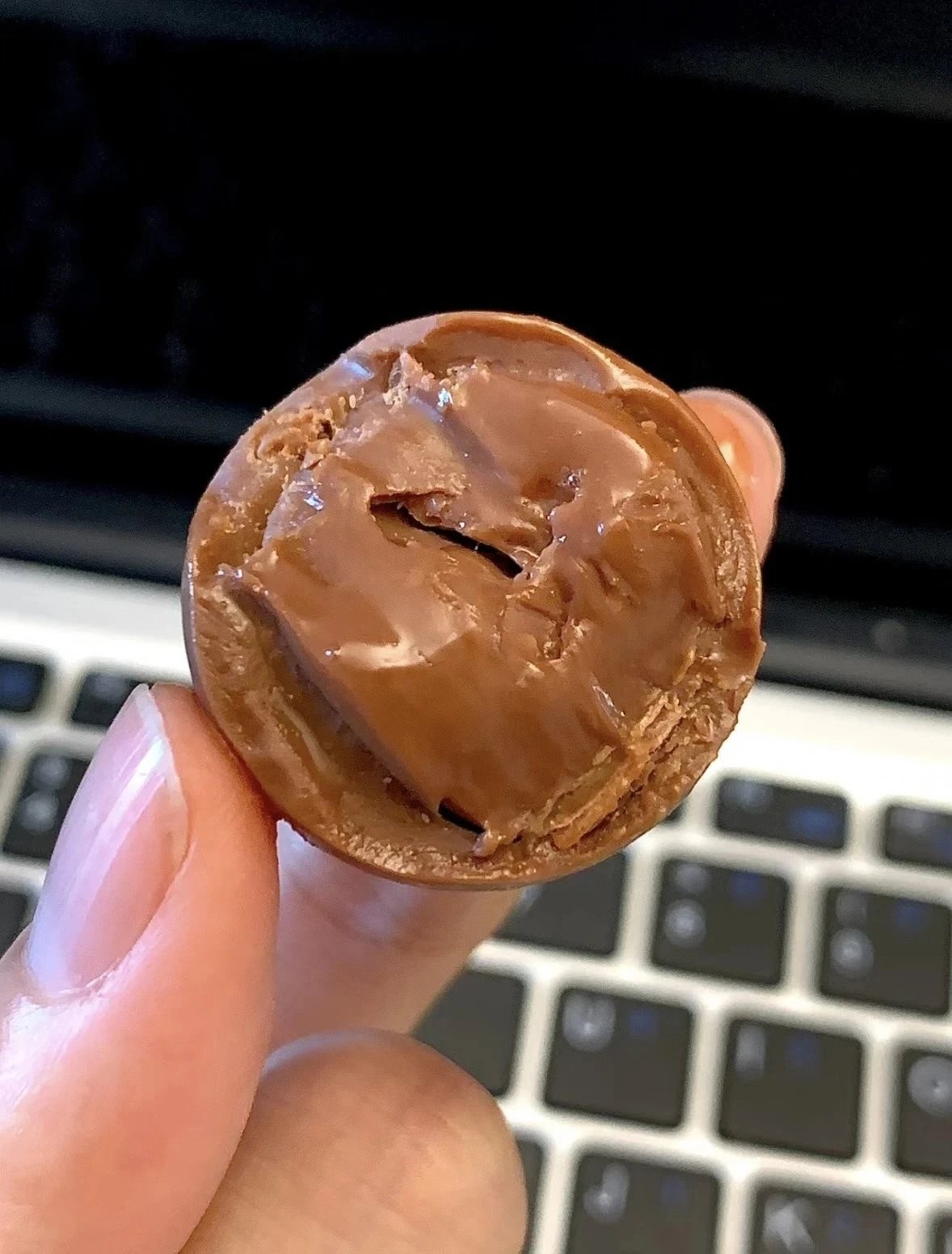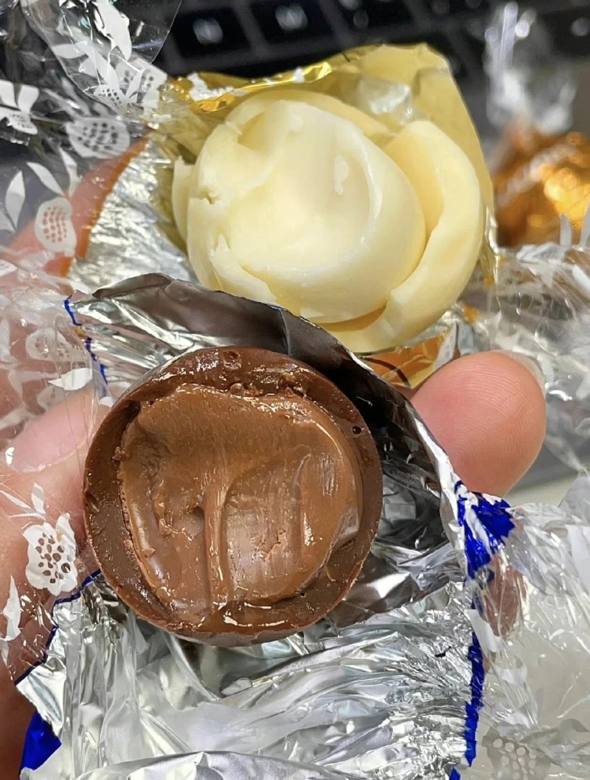 真的是我的挚爱之一 每次到看这一颗的颗小球球 嘴里就自动泌分口水了! 入口化即,口感醇香,甜度刚不好腻 连不爱吃巧克力的人都会欲罢不能! 吃来起超级满足 它有两层,吃之放前在手心捂热会一儿 咬开里面满满的流心!