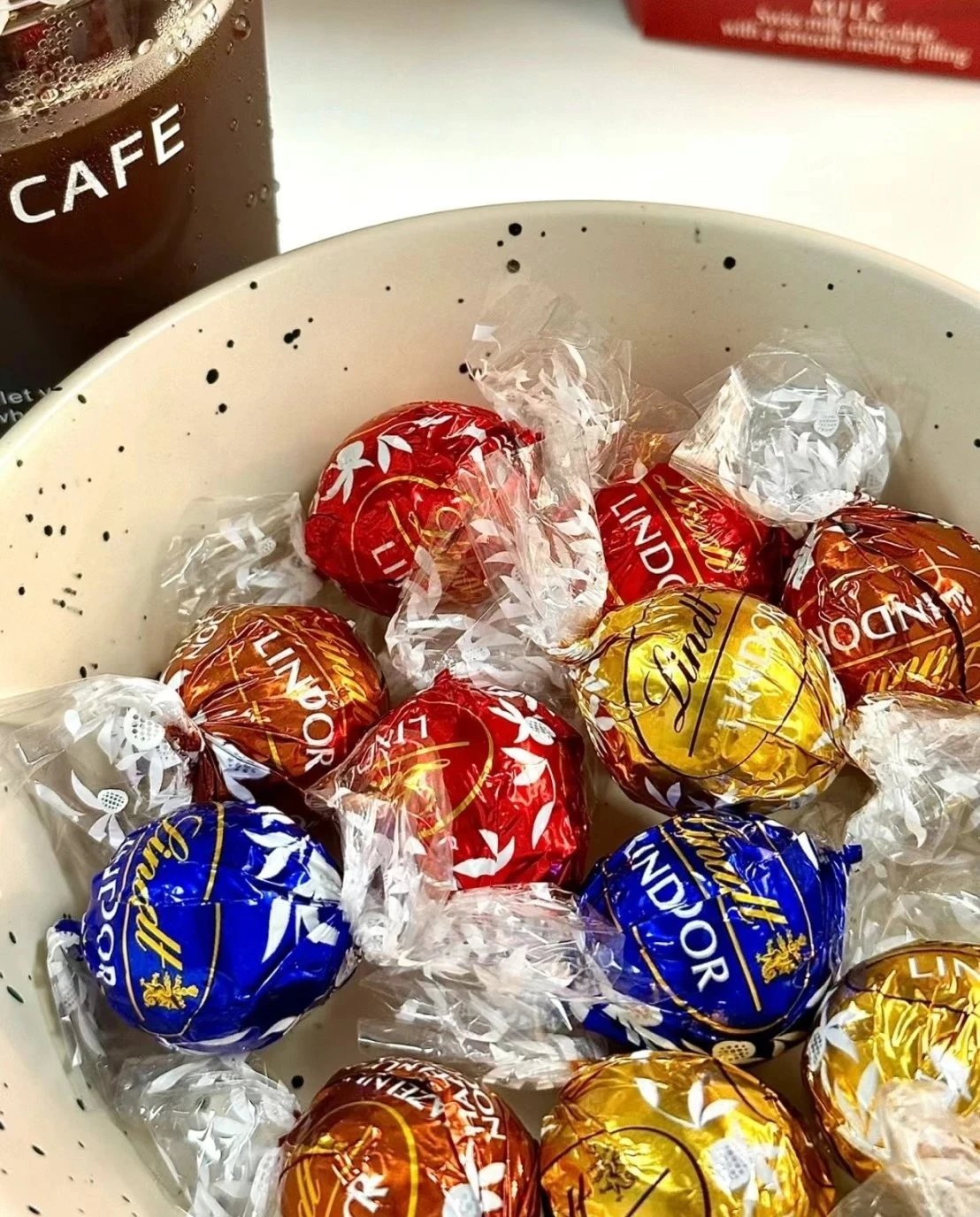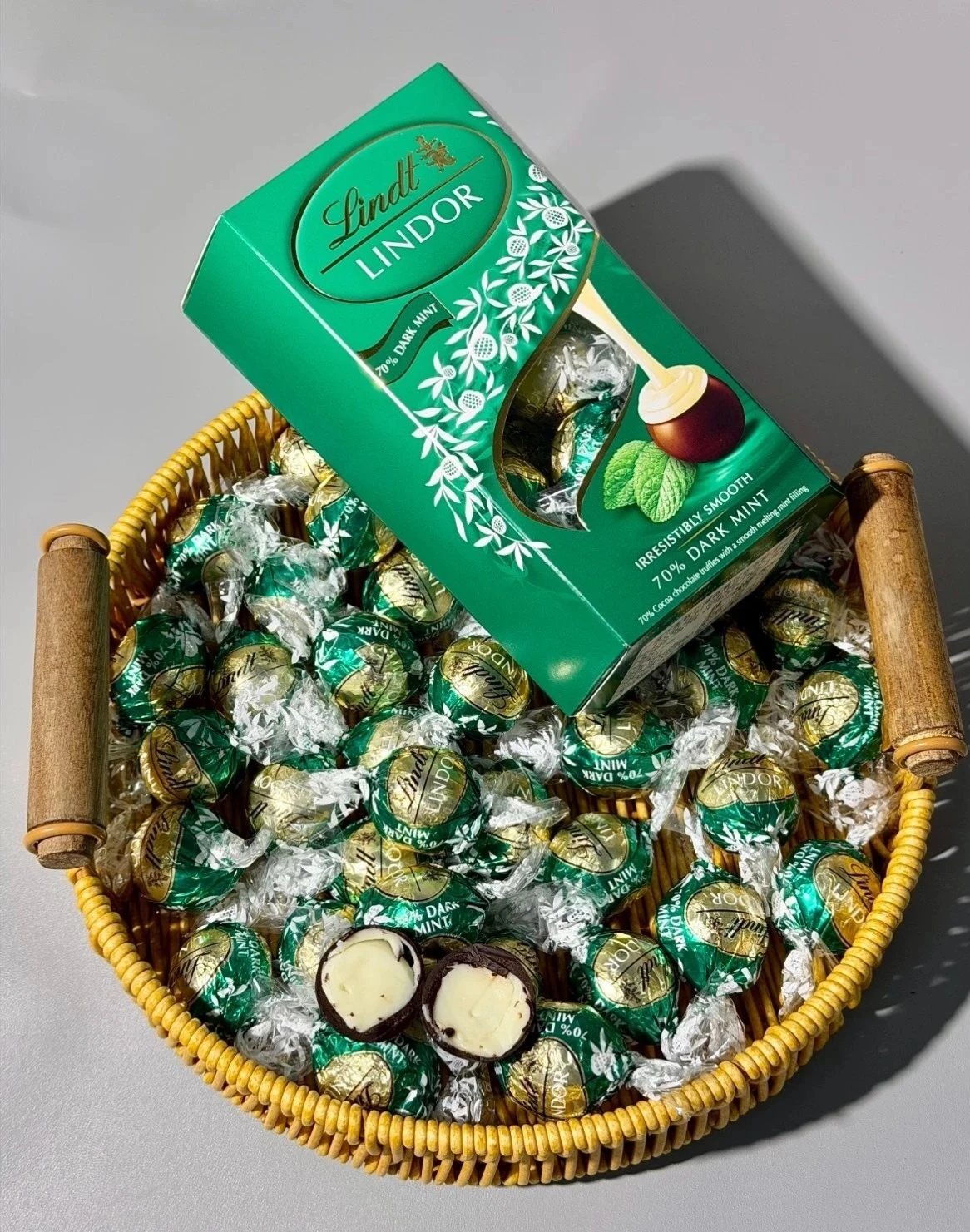 咬开外壳里面是入口即融的幼滑 绵柔的口感香醇的甜腻一口就被治愈到了 瑞士进口的软心球巧克力一吃就停不下来! 经典口味任意选择 【金盒】混合口味巧克力 【红盒】牛奶巧克力 【黑盒】70%黑巧克力 【绿盒】薄荷黑巧克力