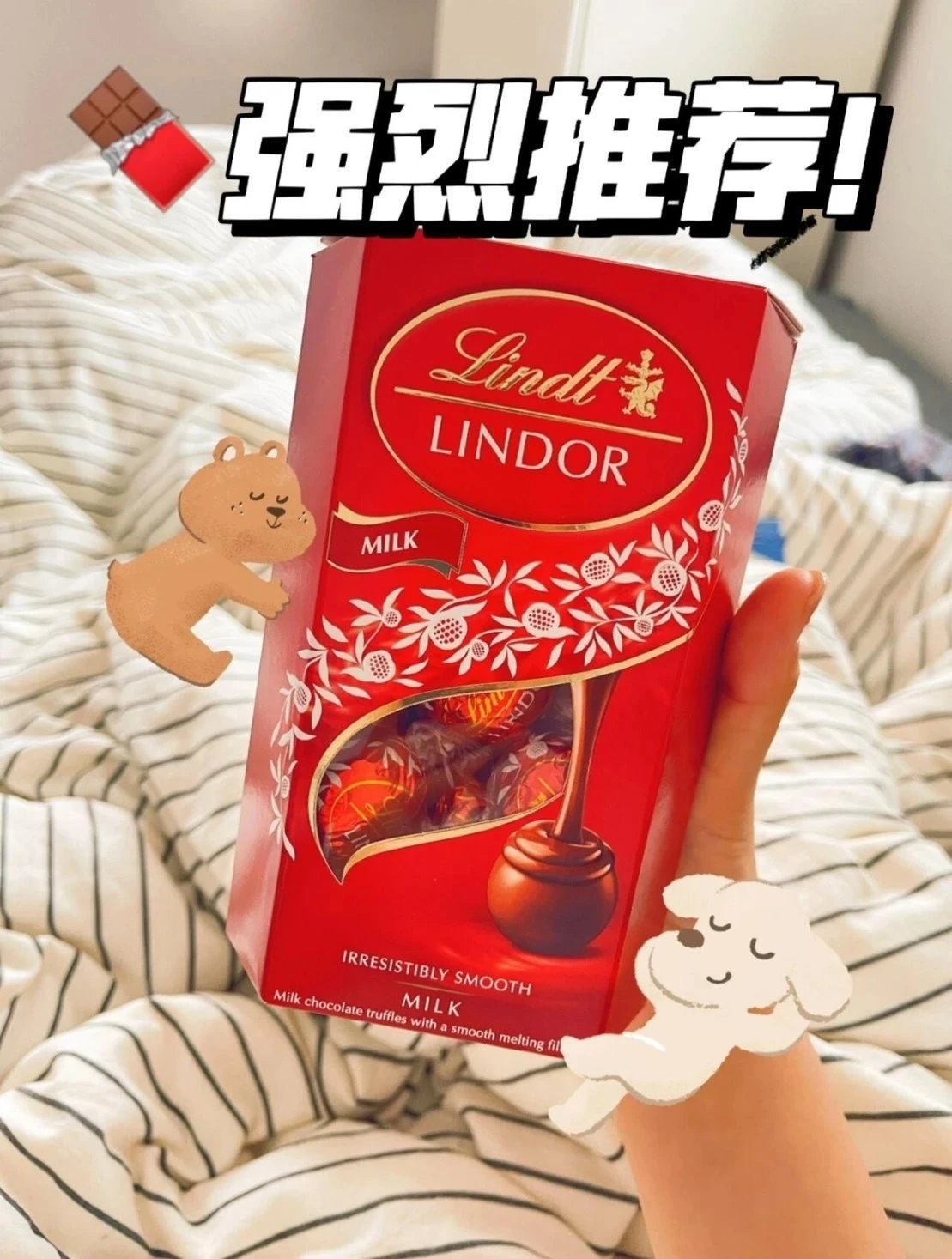瑞士 国宝级品牌 大师之作! 秉承170多年的传承 利用知识和技能 使巧克力外形日臻精美! 只要吃上一口就再也戒不掉了 这就是 「Lindt瑞士莲软心巧克力 」 无论是香醇的白巧克力 还是甜美的软心牛奶巧克力 都带着谁都无法抗拒的迷人香气 在口腔里温柔的弥漫开来 就象一个无需言语的奇妙精灵一般 带给你幸福愉悦的美好心情~