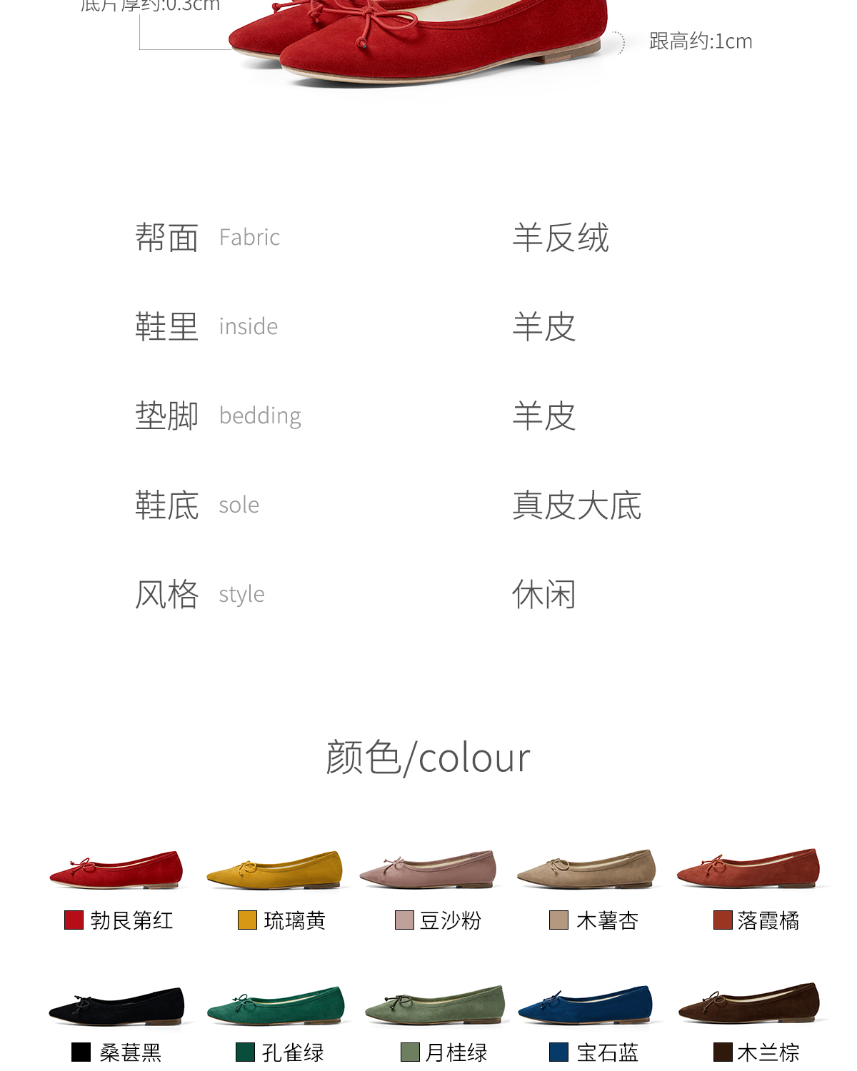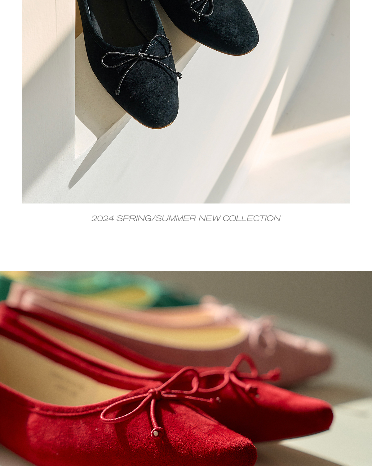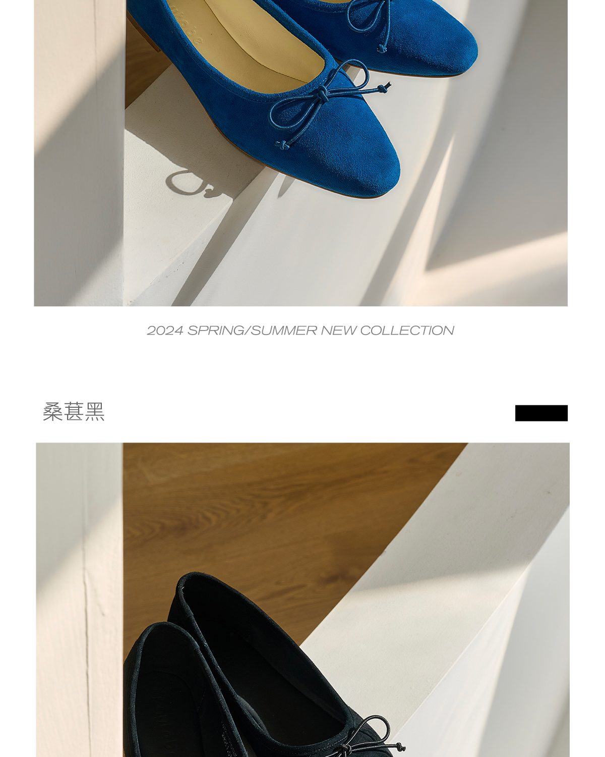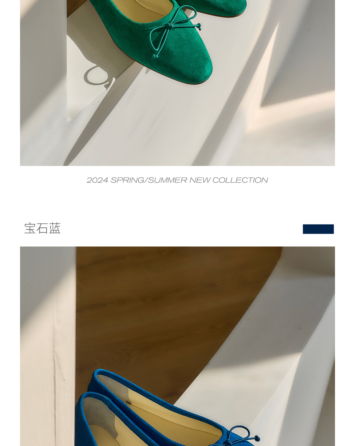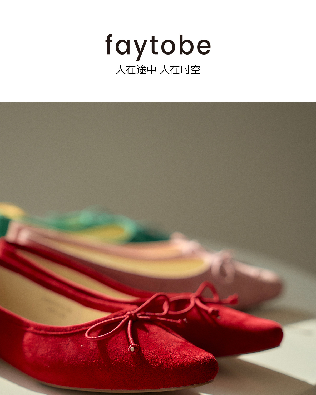 faytobe春日芭蕾蝴蝶结芭蕾鞋 丝绒羊皮尖圆头手工鞋复古彩虹时髦平底鞋