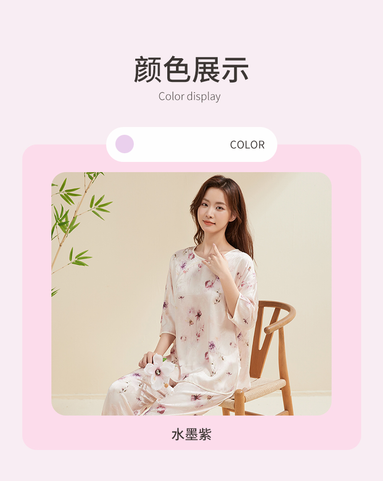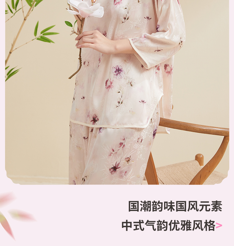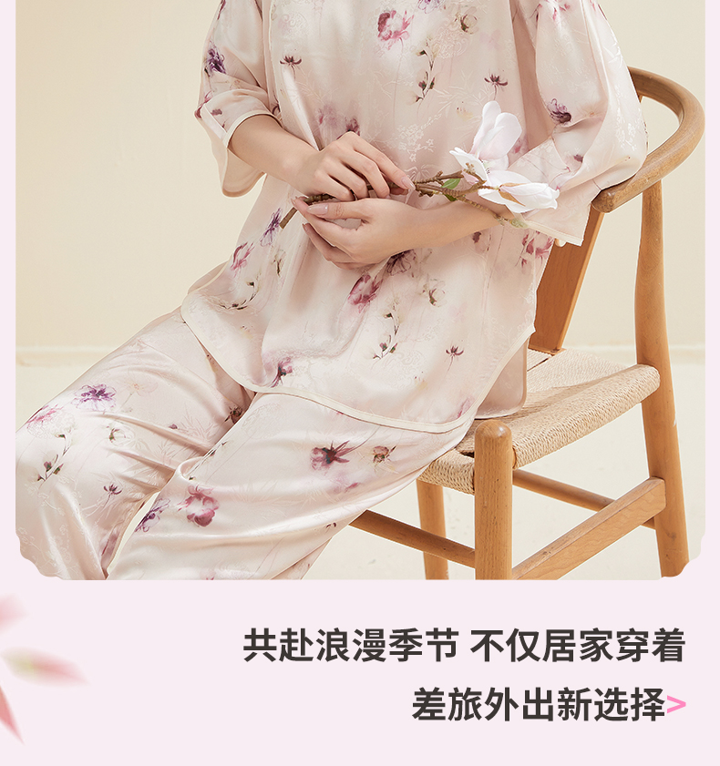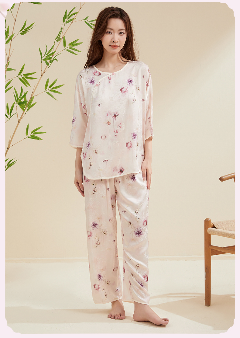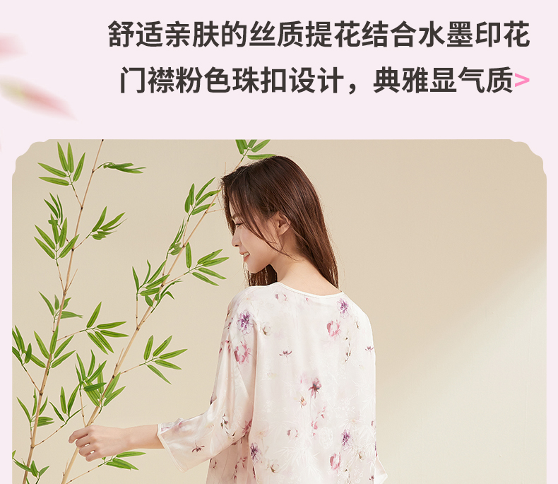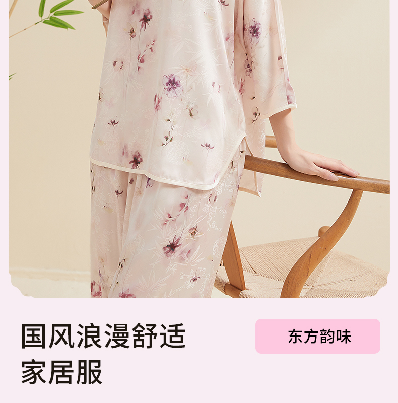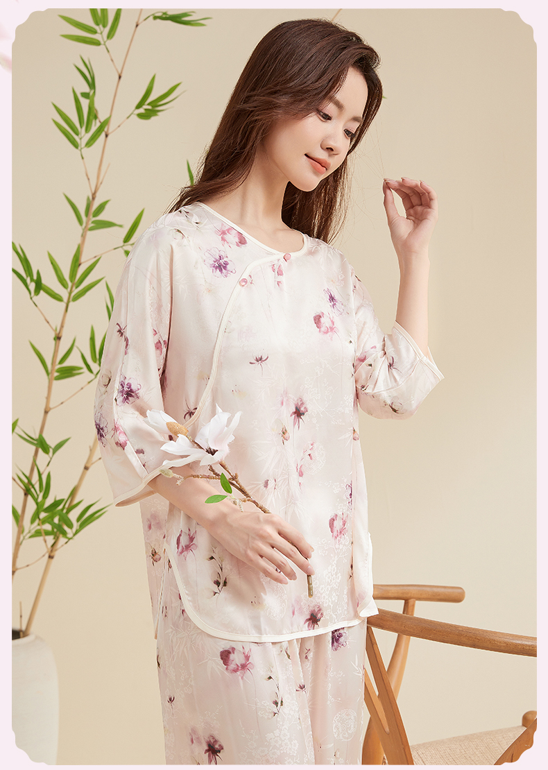 贝佳人新中式水墨花卉家居”女士七分袖套装BW532504