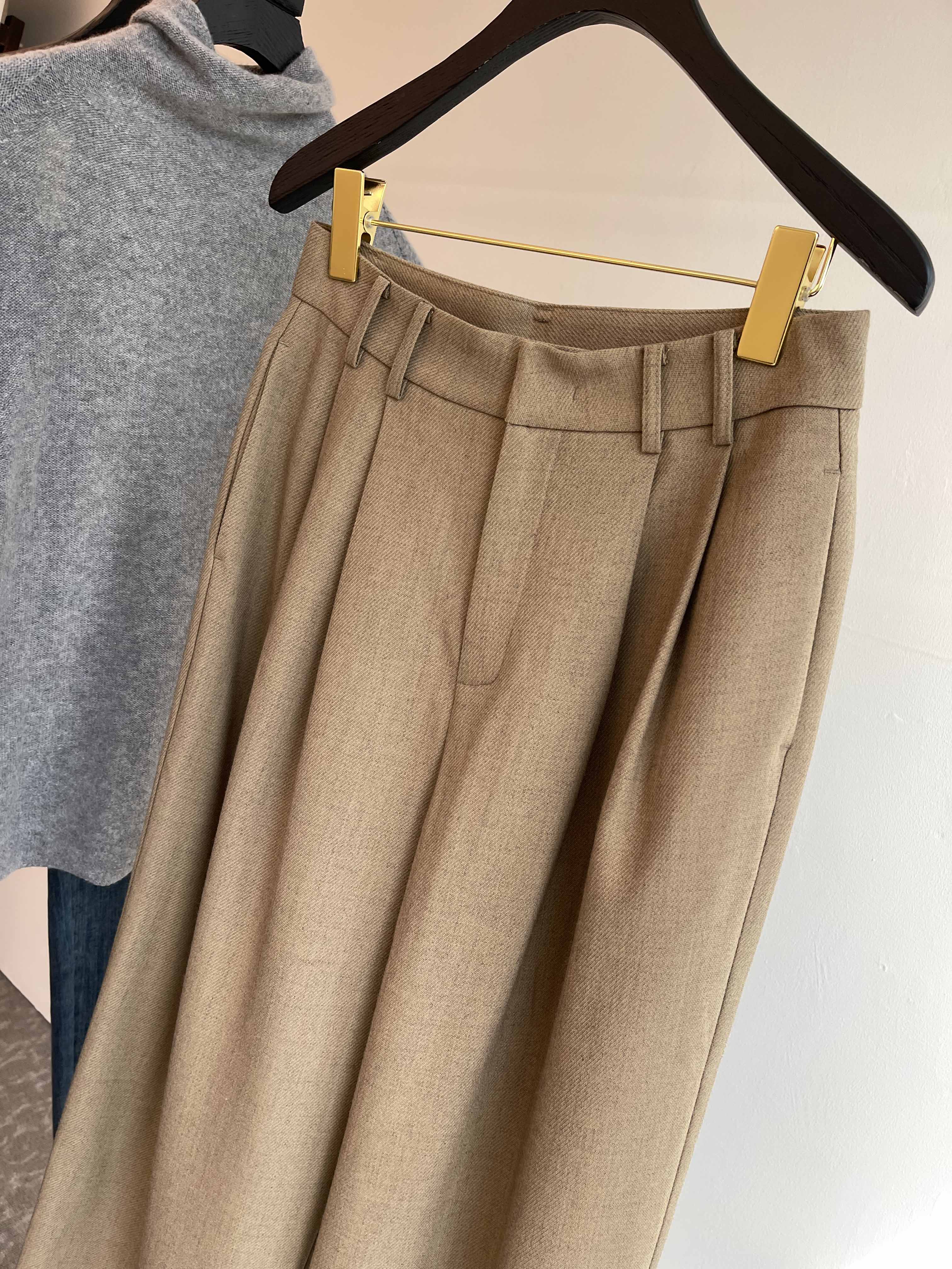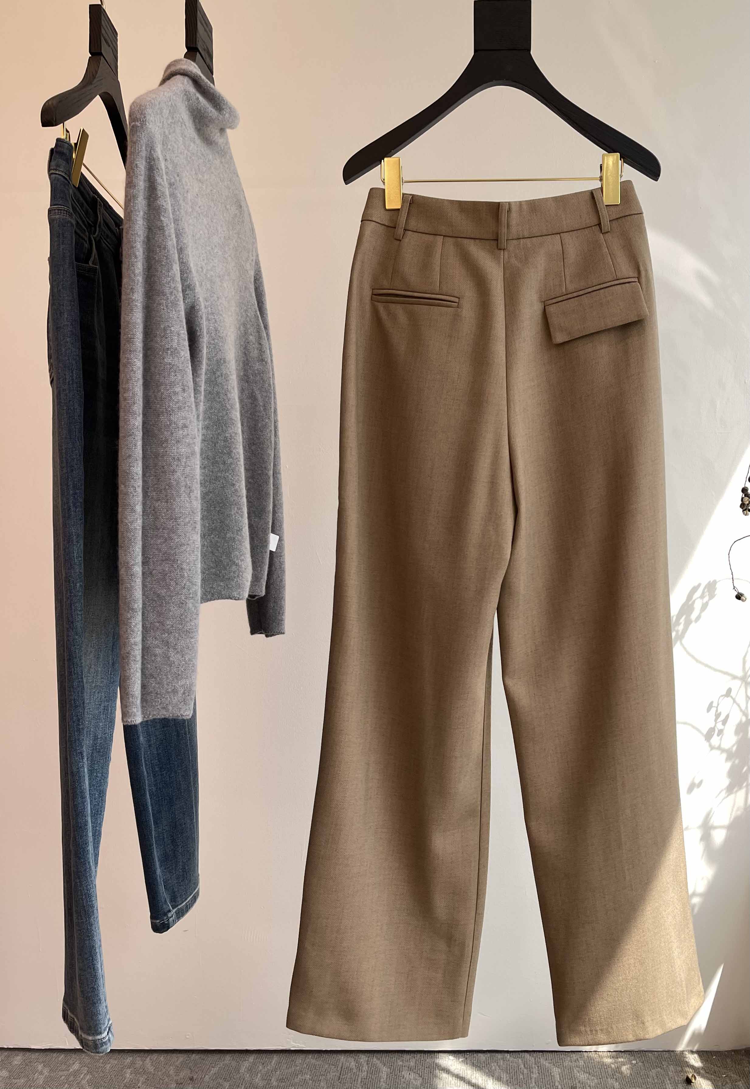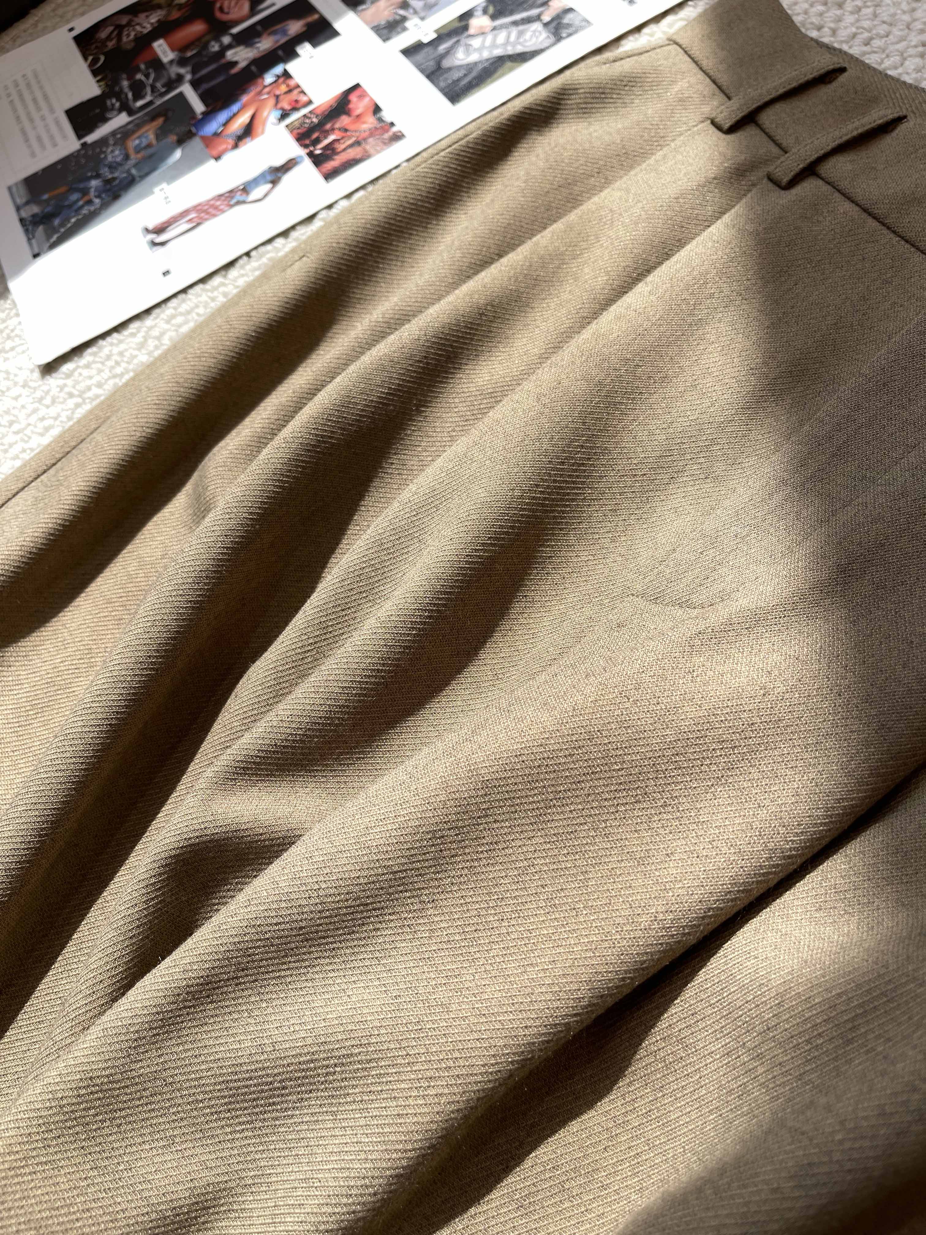 腰带西装直筒麻感纹理西裤·甘草黄色