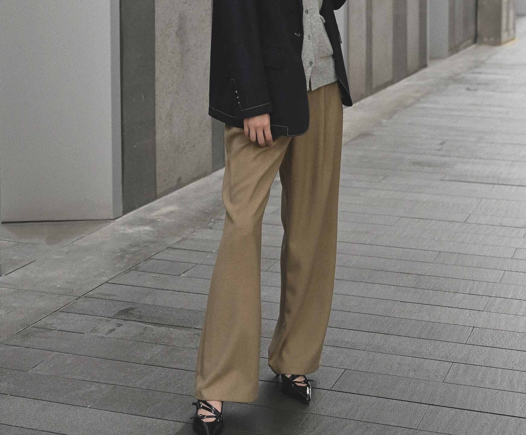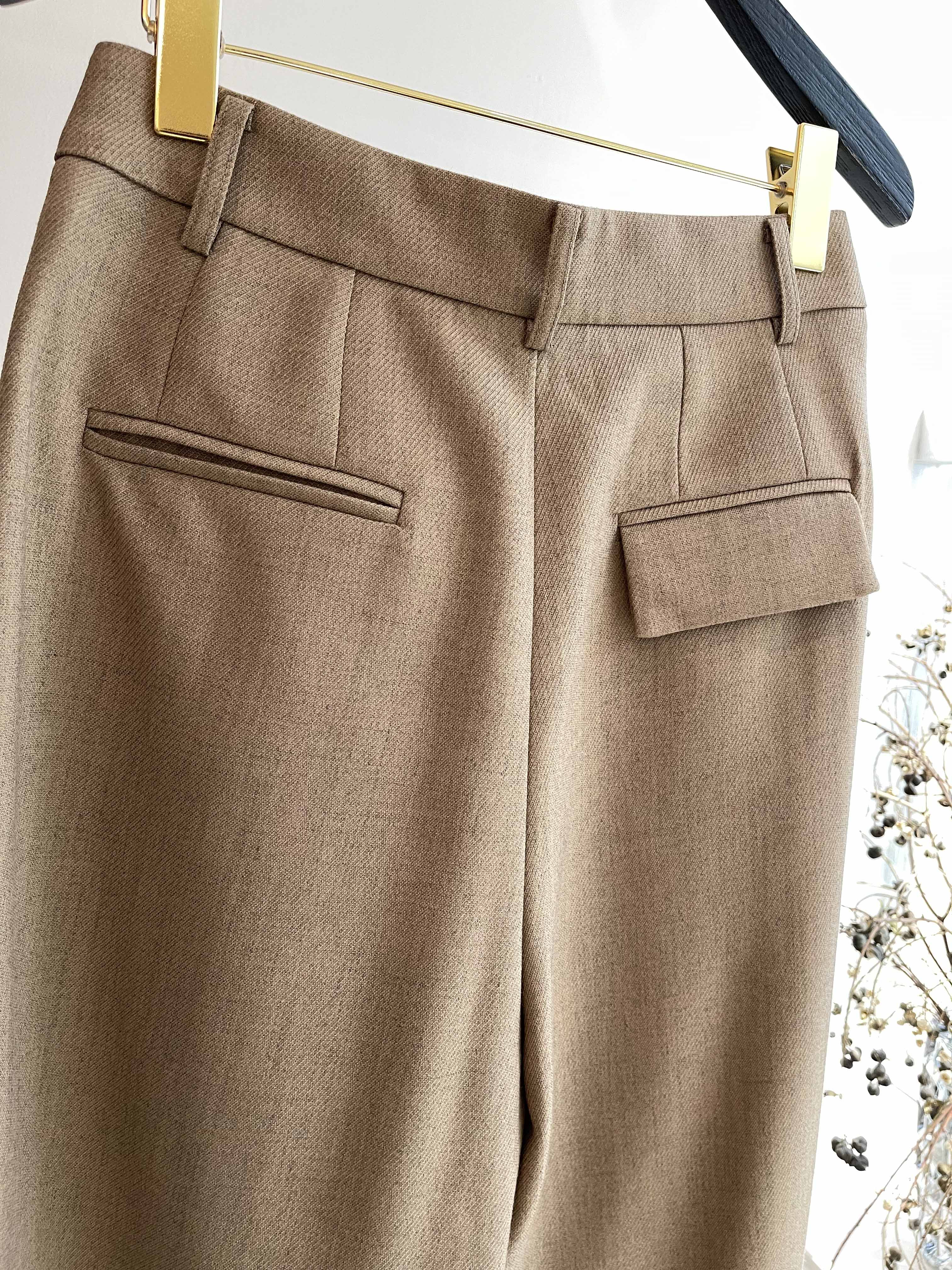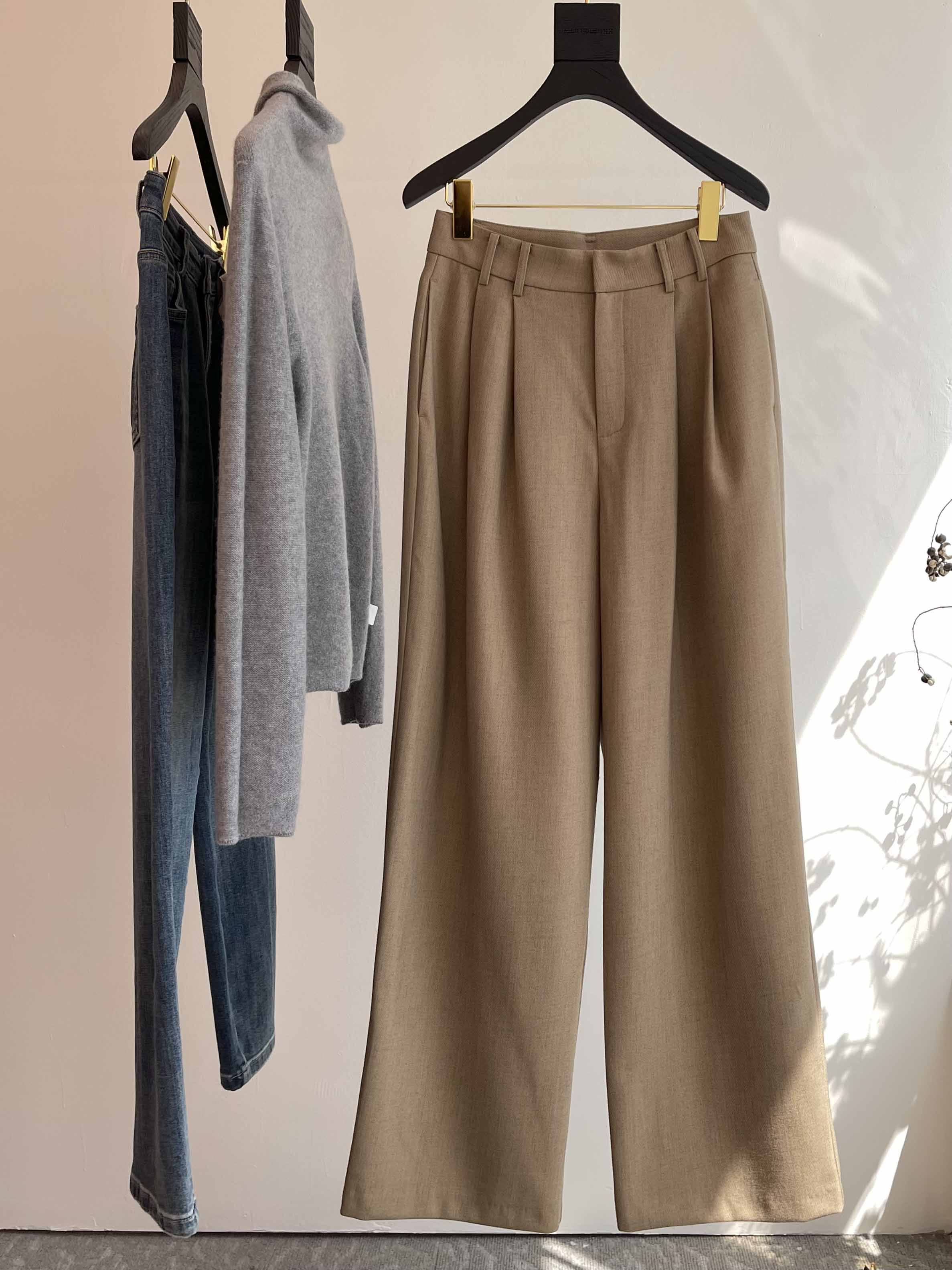 腰带西装直筒麻感纹理西裤·甘草黄色