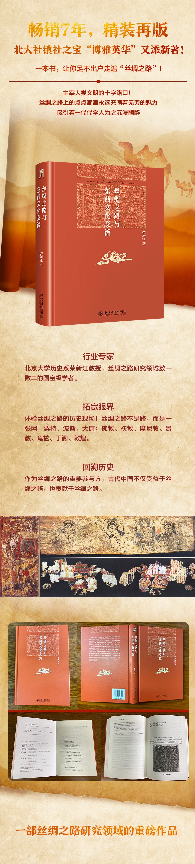 本书分做五编,探讨汉唐丝绸之路的走向,丝绸之路与某些区域或城镇的关系;研究通过丝绸之路的东西文化交流,包括中国与波斯、大食(阿拉伯)、印度、朝鲜半岛、日本的文化交往。作者利用对西域出土文书的谙熟,致力于探讨汉文典籍向西域地区的传播,这是前人比较忽略的丝绸之路研究的重要内涵。另外,作者还利用考古、美术、文献材料,研究了西方物质文明和宗教文化如何沿丝绸之路向东方传播,以及他们的传播者——粟特商人、于阗使者、景教徒,并以此为基础进而讨论了丝绸之路上的宗教文化的并存现象。