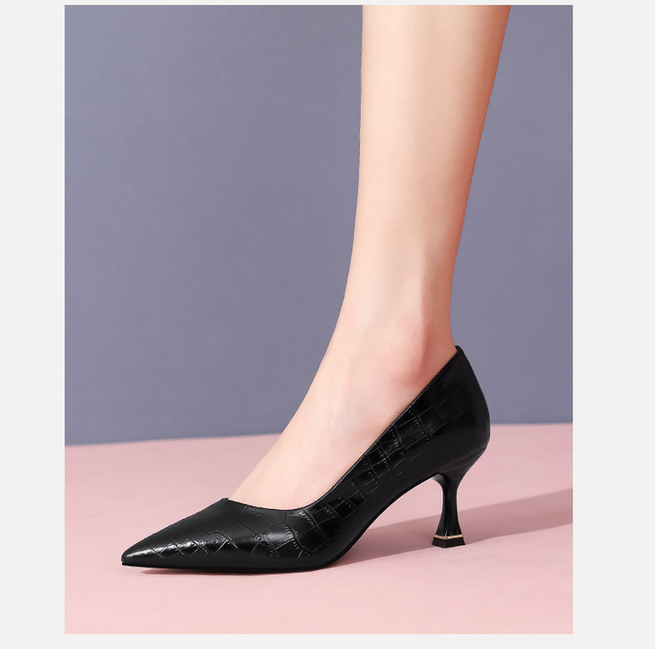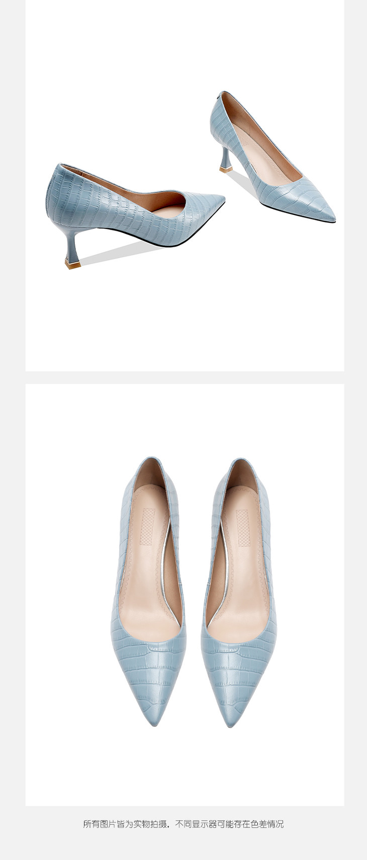 2022新款春季蓝色软皮鱼纹防踢金属尖头细跟高跟鞋女 JZX111-196