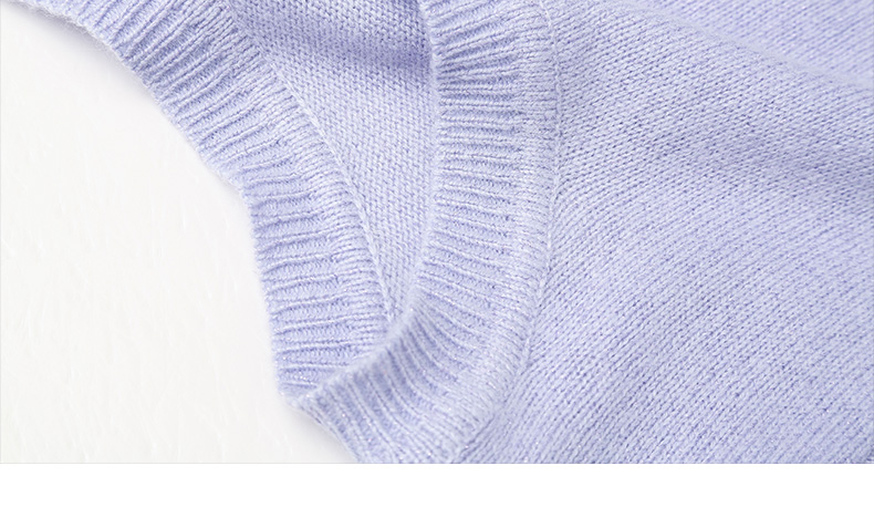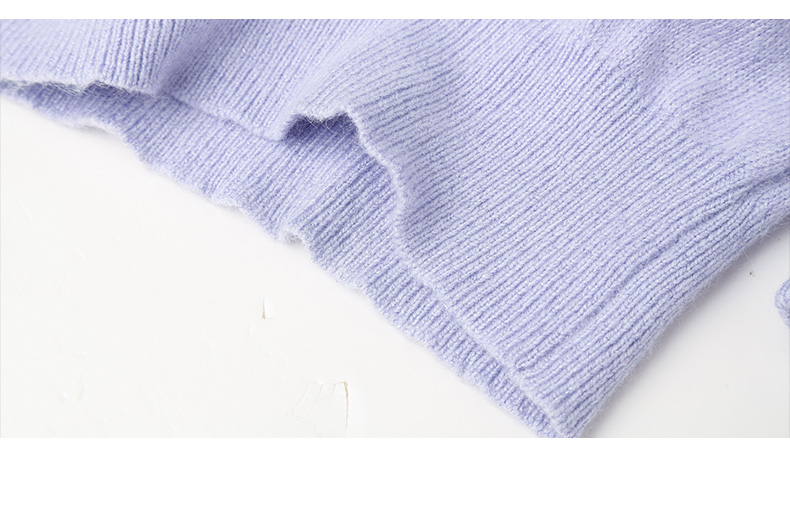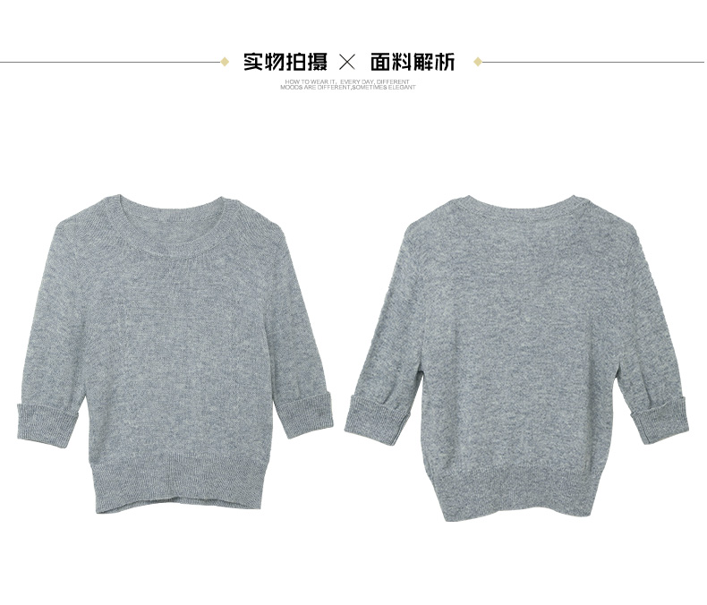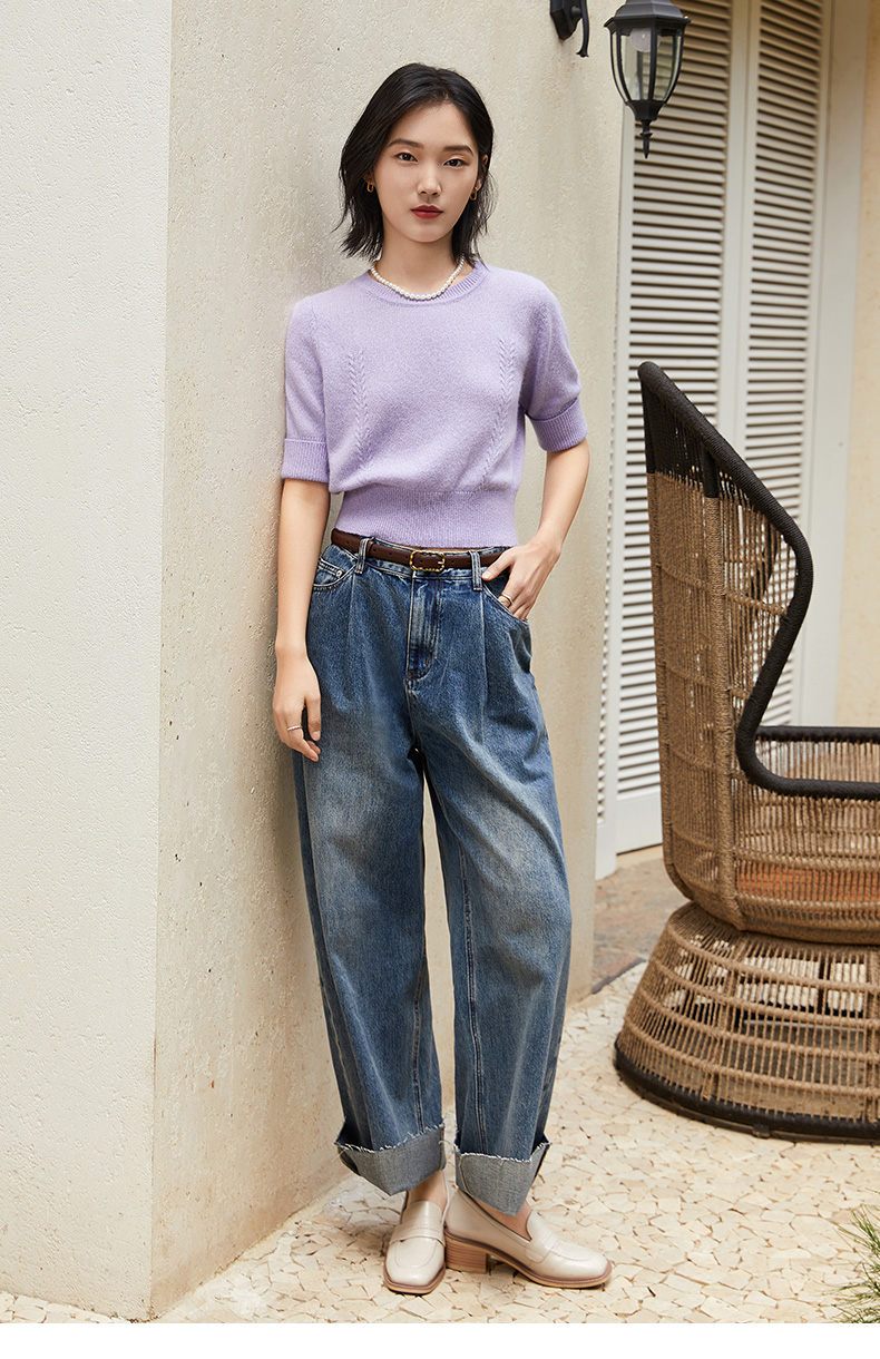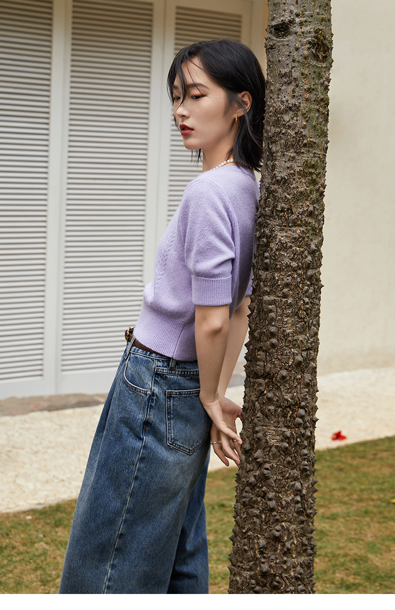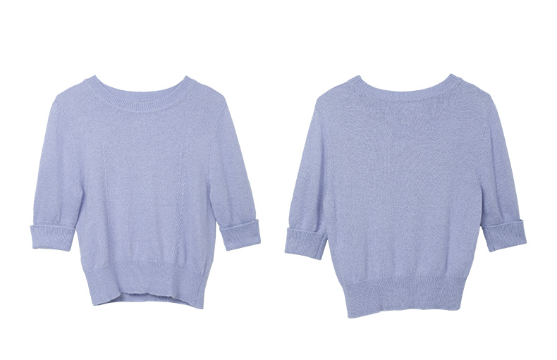 浅紫色短袖毛衣女 圆领短款收腰设计 温柔风针织上衣