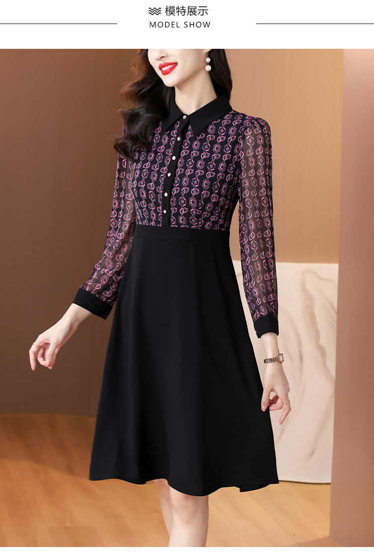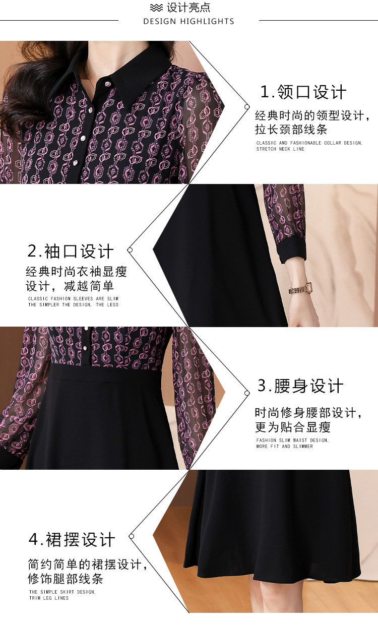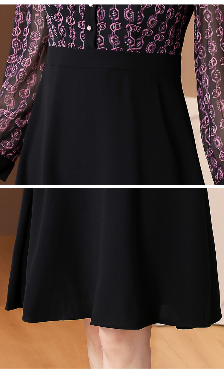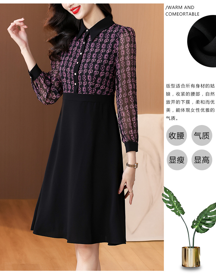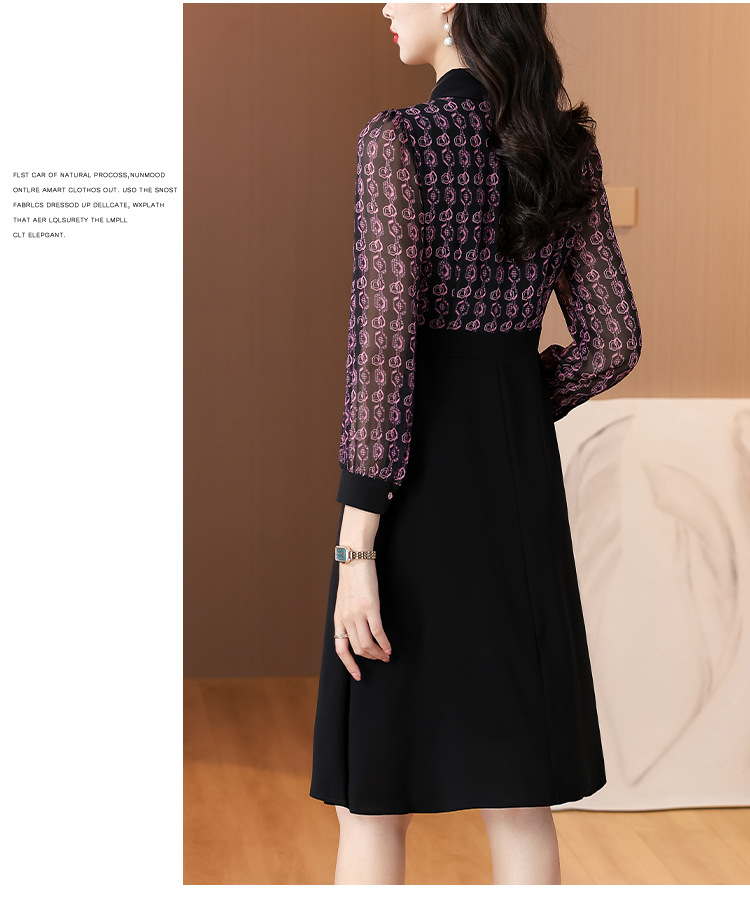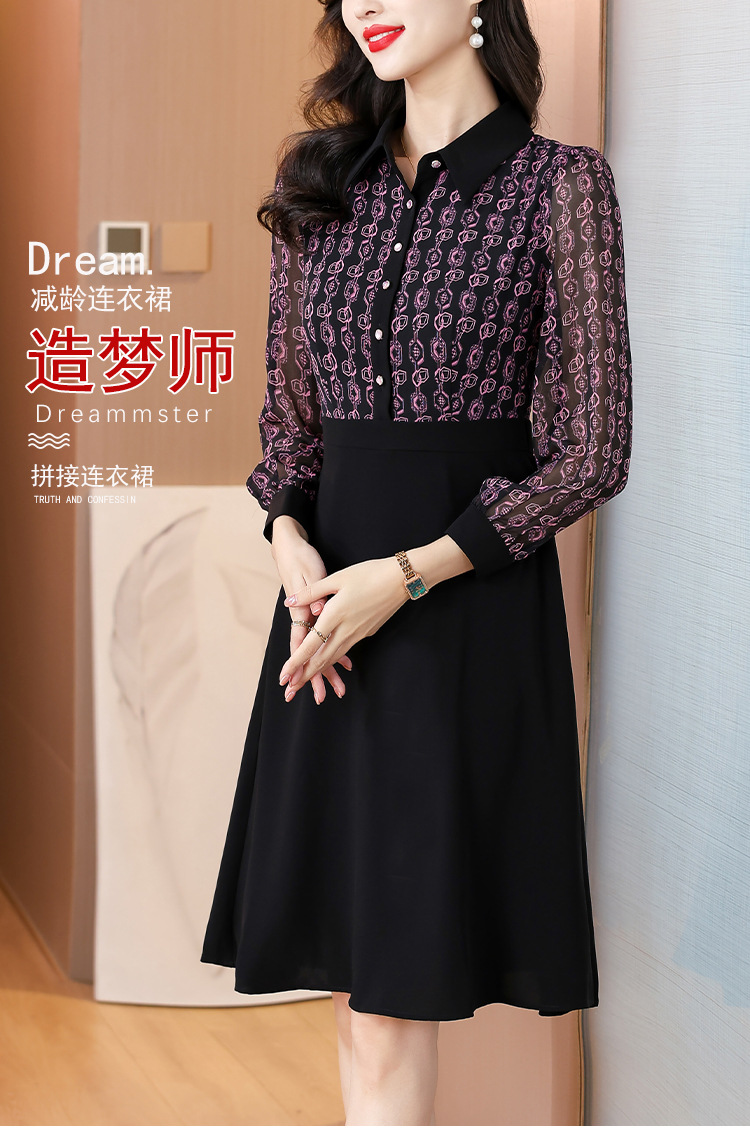 雀说新款女装气质收腰a字裙长袖打底裙子法式印花拼接连衣裙AL6687