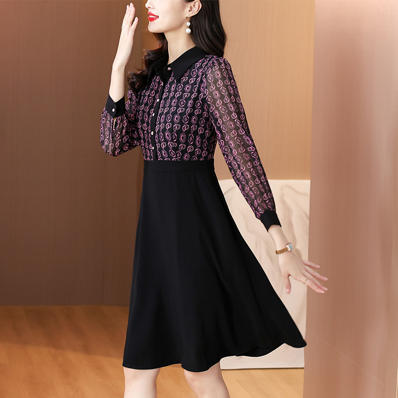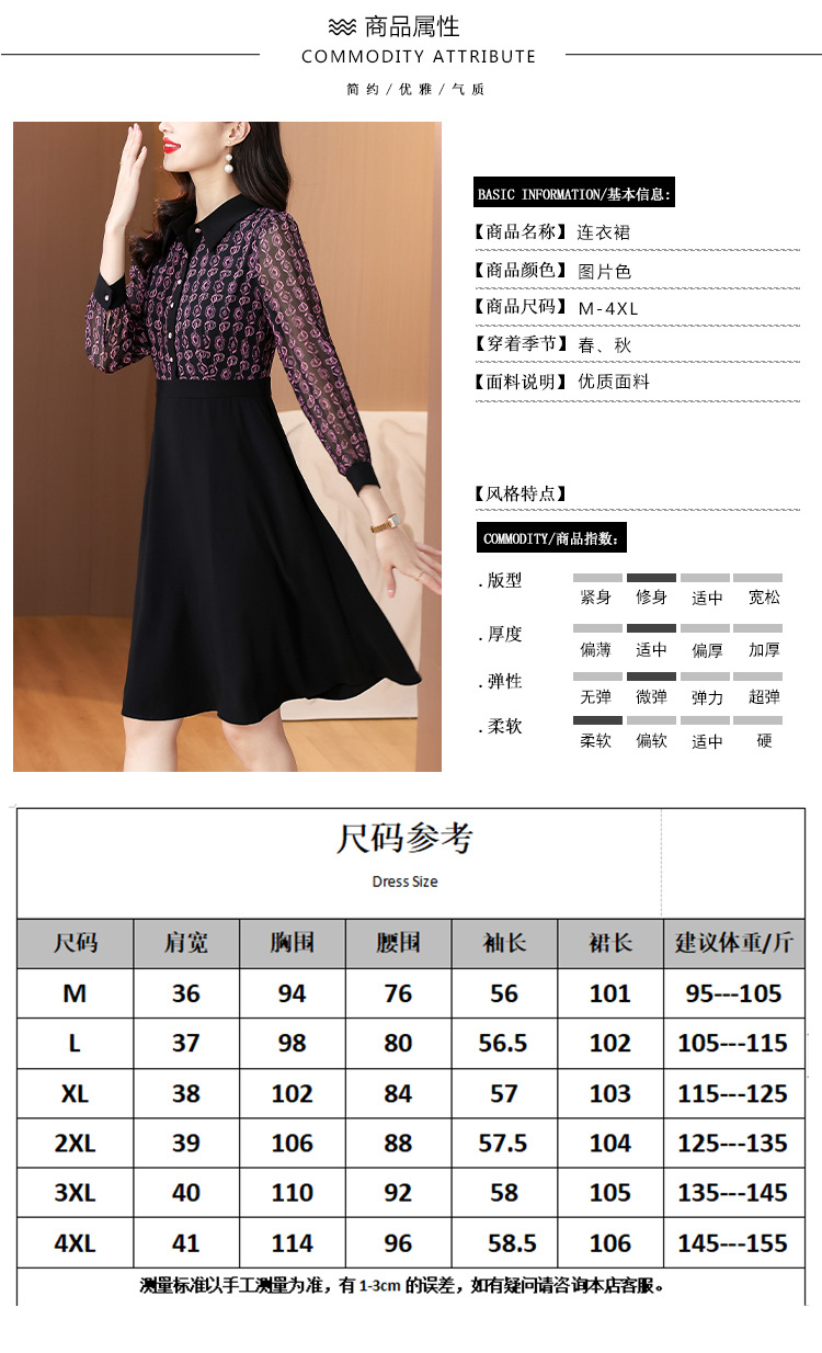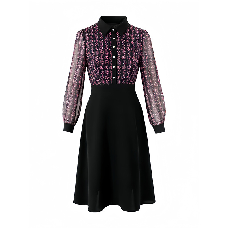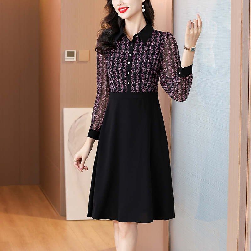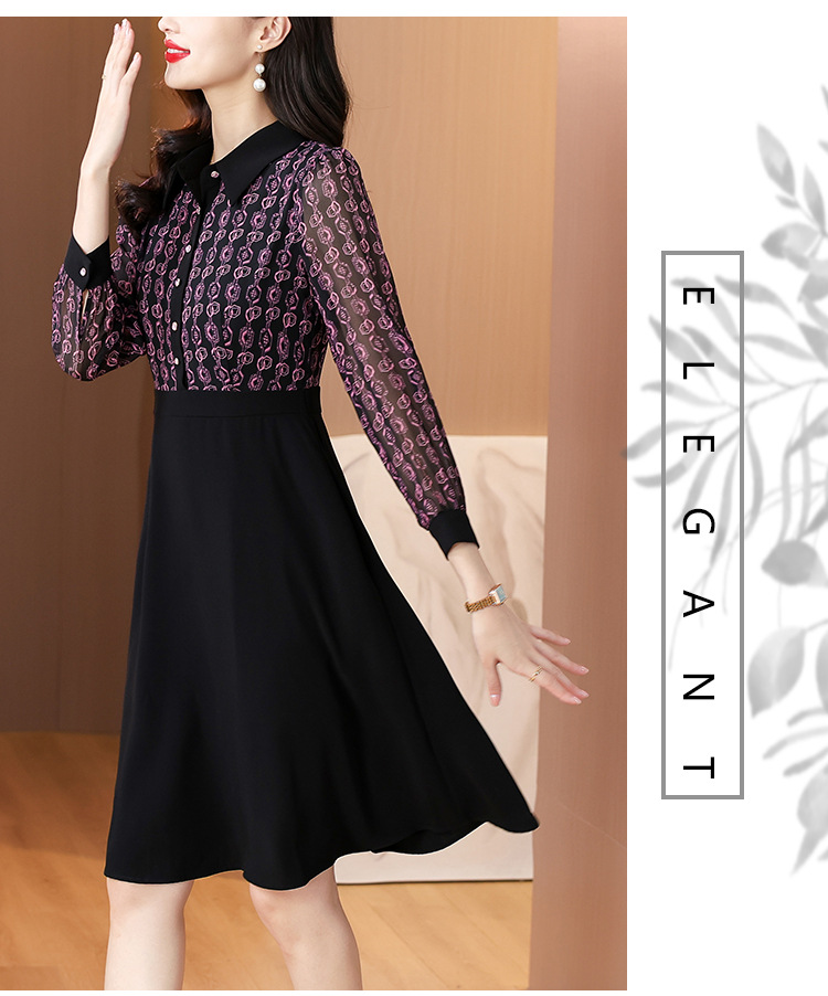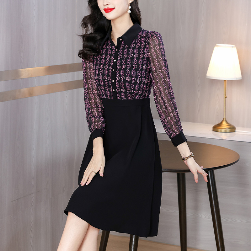 雀说新款女装气质收腰a字裙长袖打底裙子法式印花拼接连衣裙AL6687