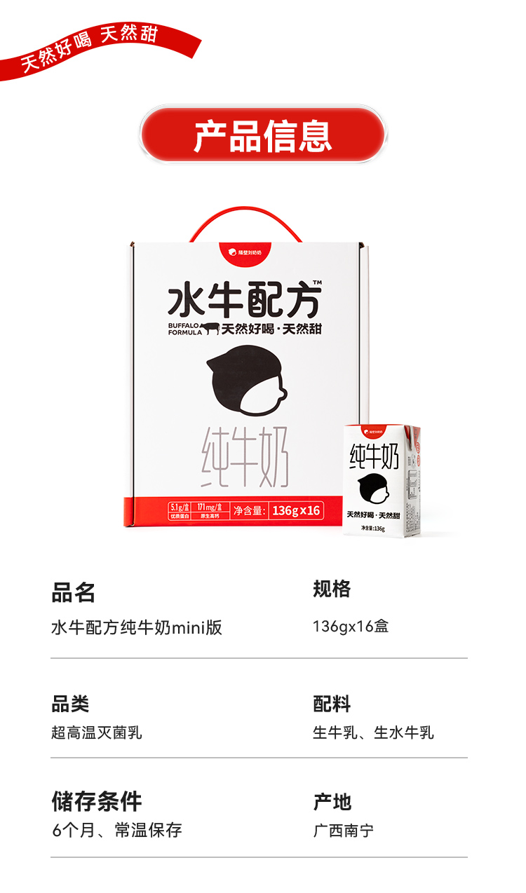 隔壁刘奶奶水牛配方mini奶136g*16盒/箱