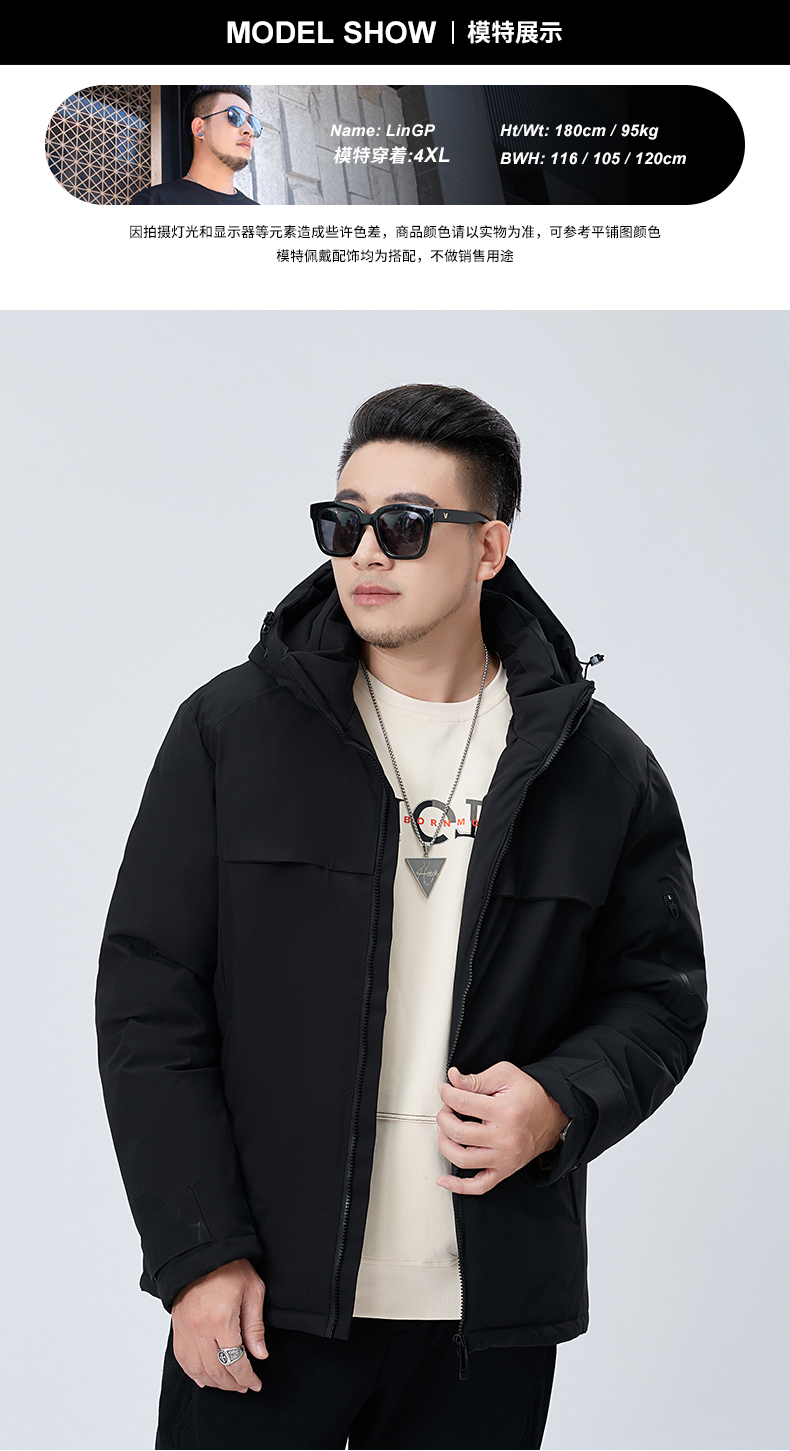 【新款DMH】大依优型大码连帽羽绒服鸭绒保暖加肥加大上衣男士冬季外套胖子