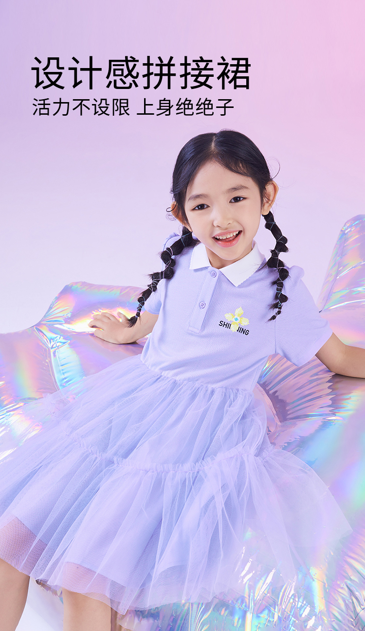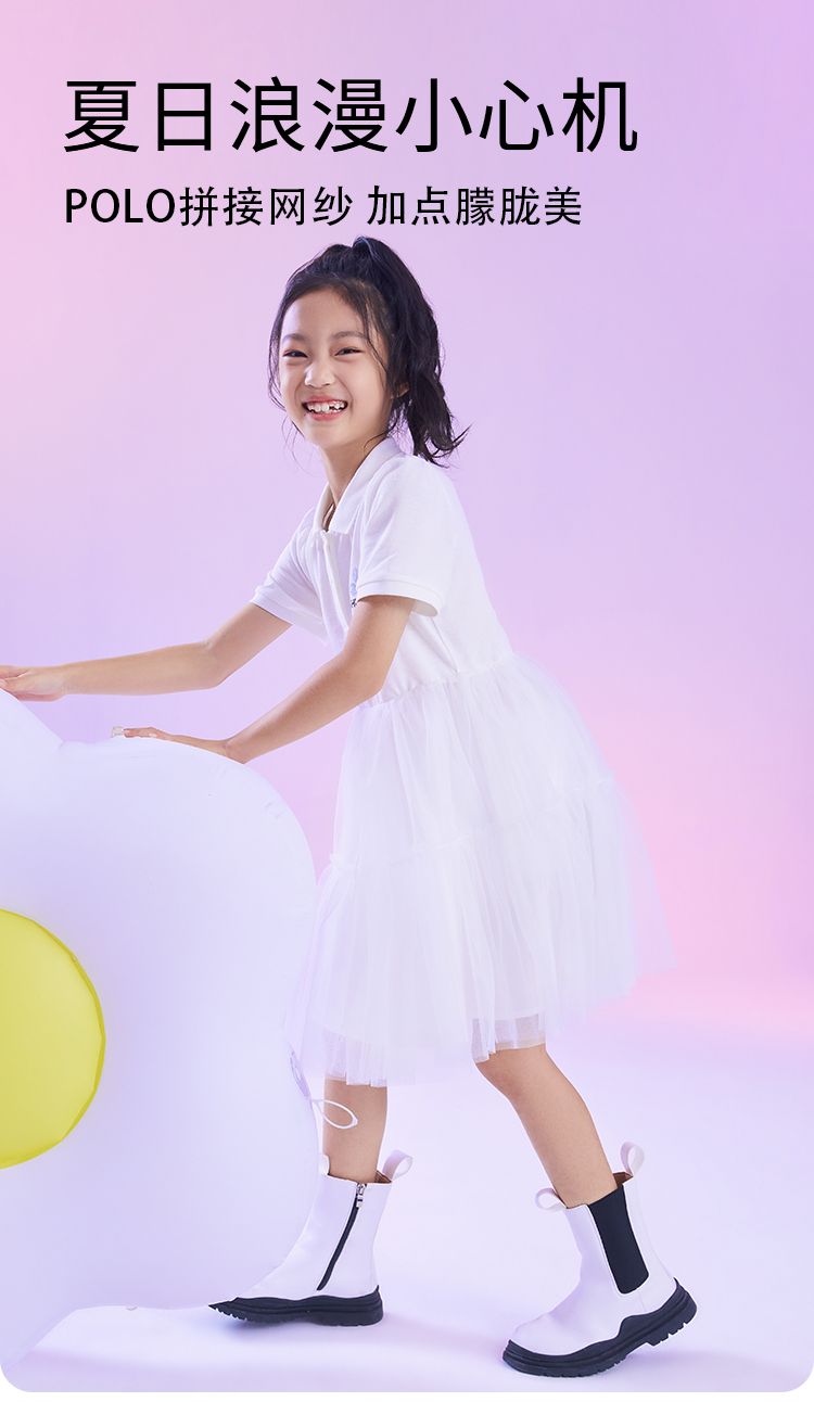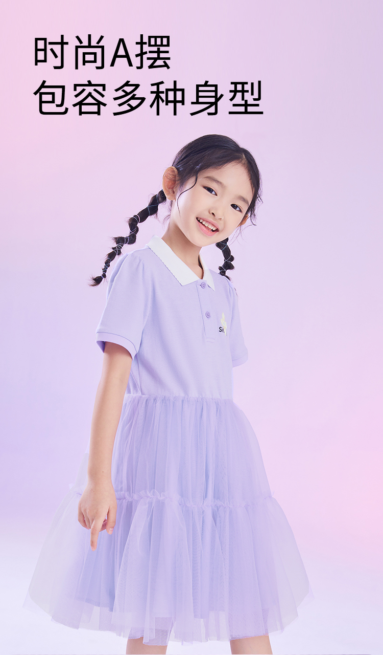 女童连衣裙短袖夏季新款洋气女孩网纱拼接公主裙子安奈儿童装EG323103