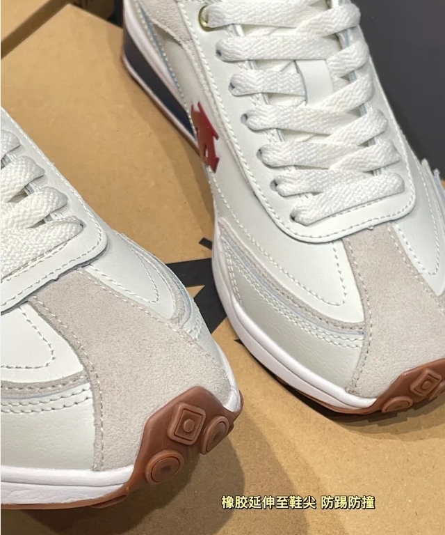 橡胶从鞋尖延伸至脚后跟 非常有设计感 同时也能对脚部起到一定的保护作用!