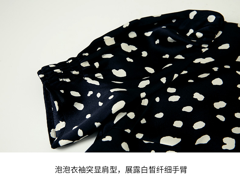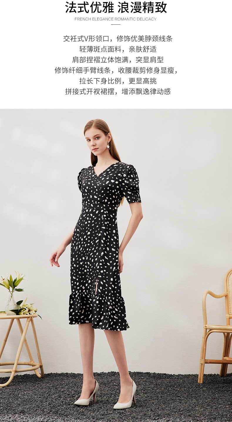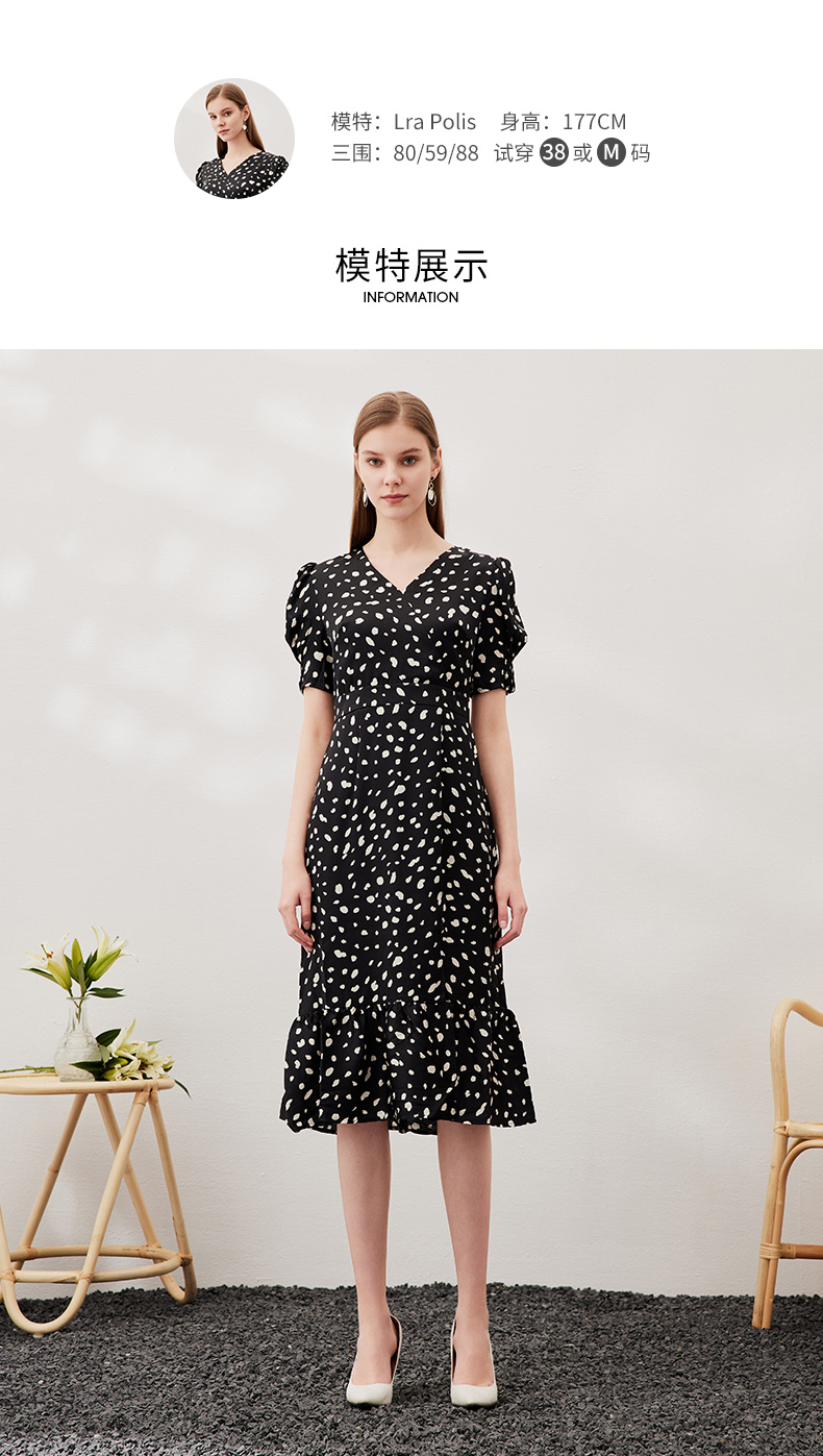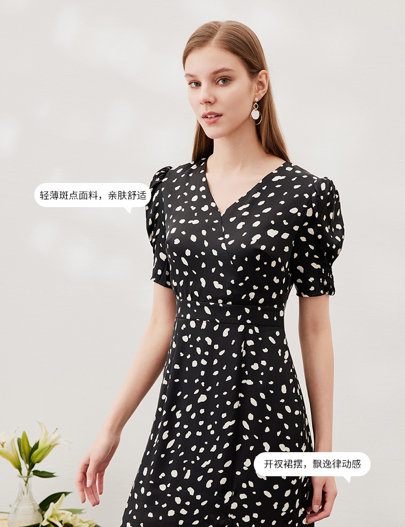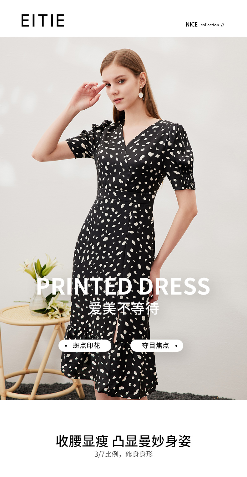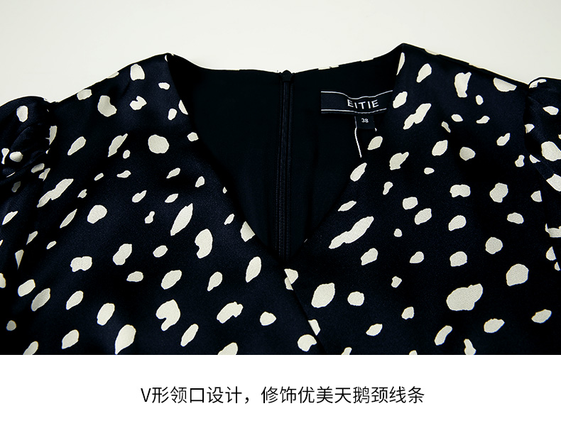 EITIE爱特爱夏季新款时尚V领高腰显瘦印花泡泡袖连衣裙7007749