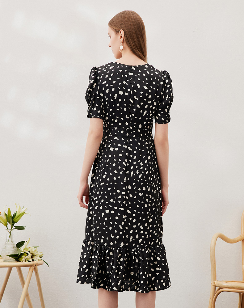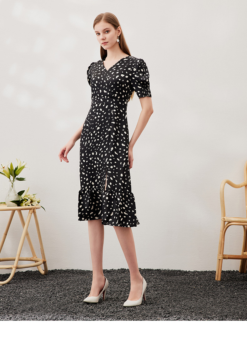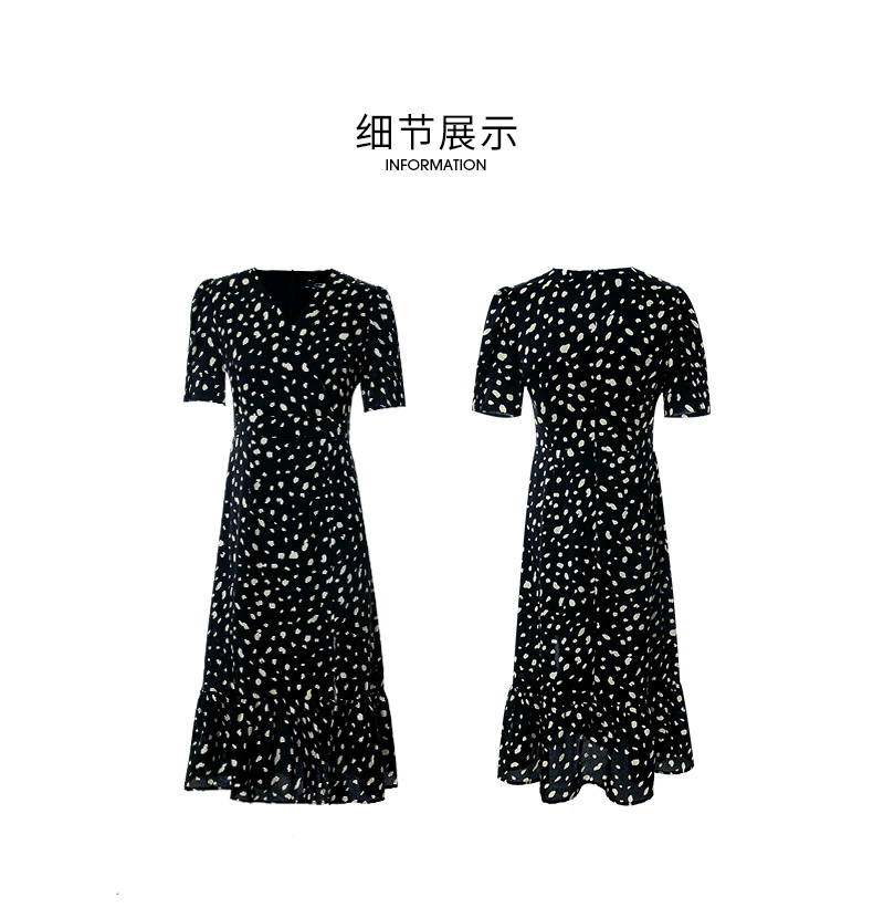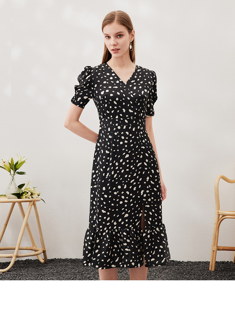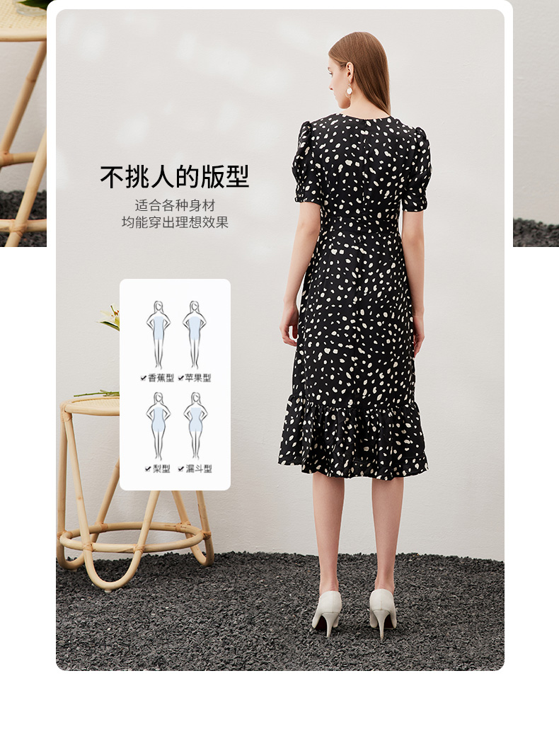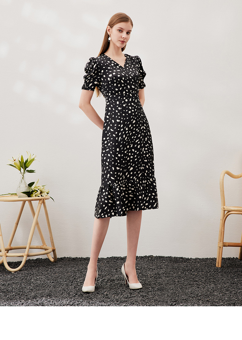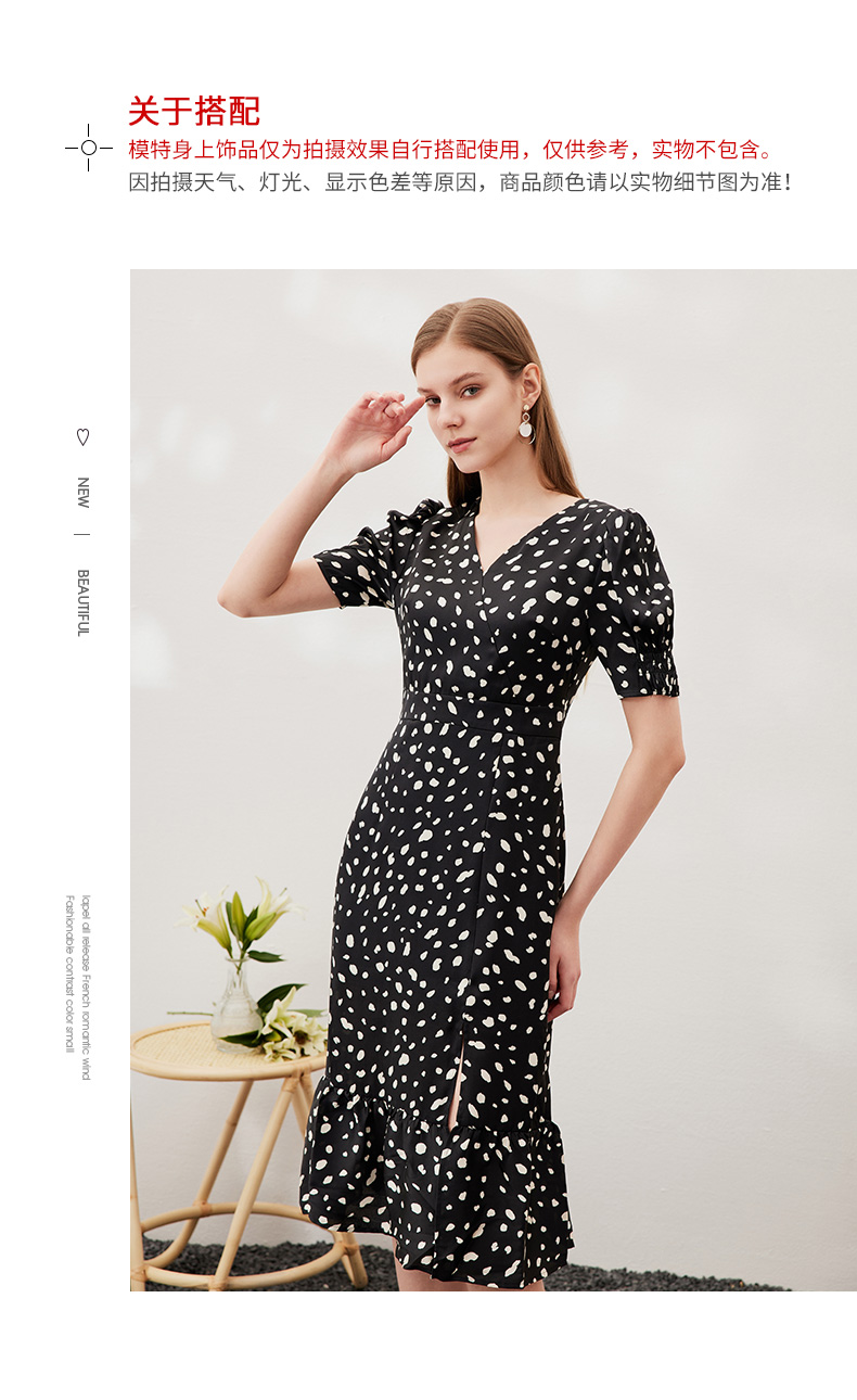 EITIE爱特爱夏季新款时尚V领高腰显瘦印花泡泡袖连衣裙7007749